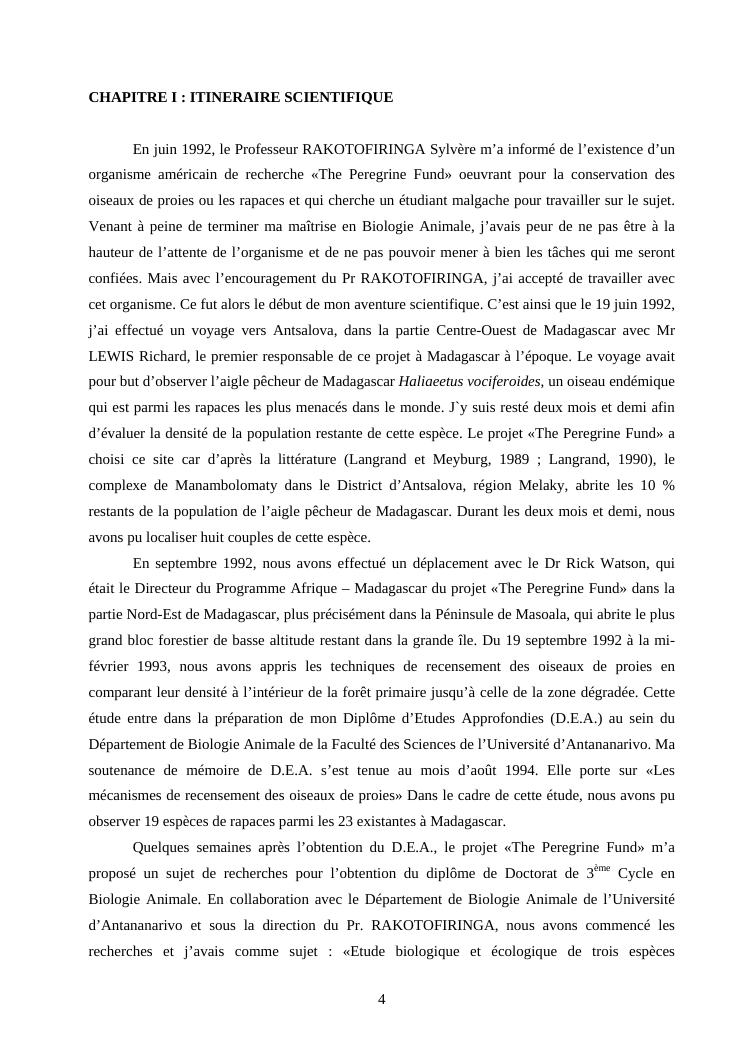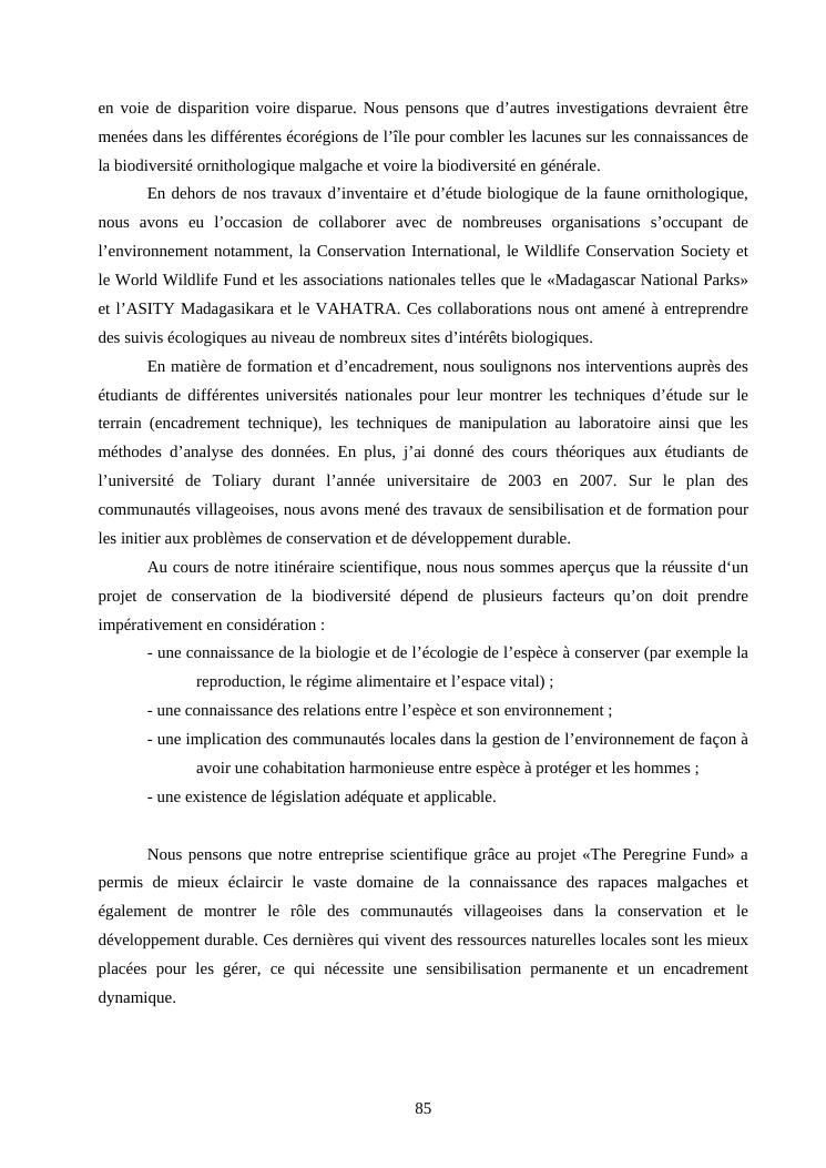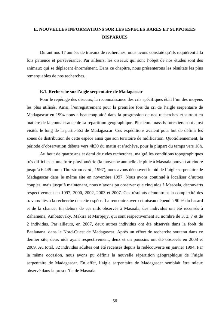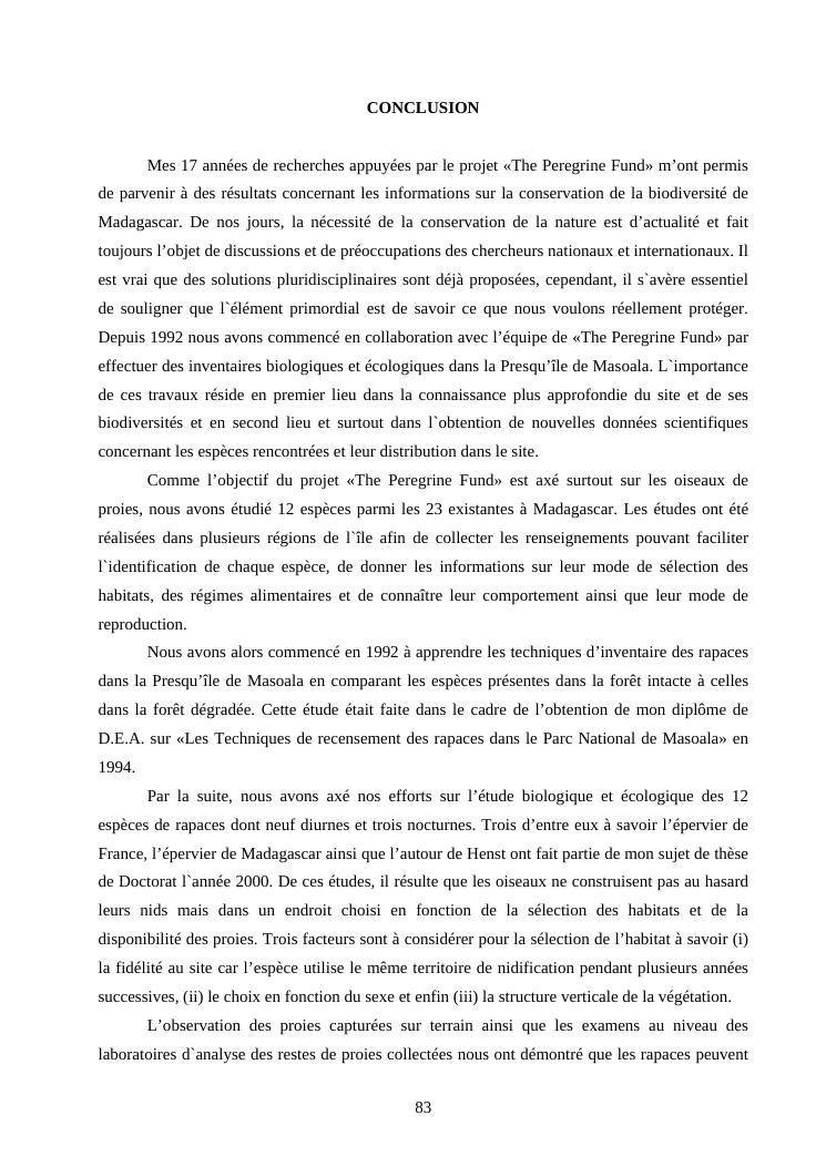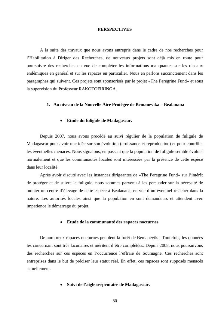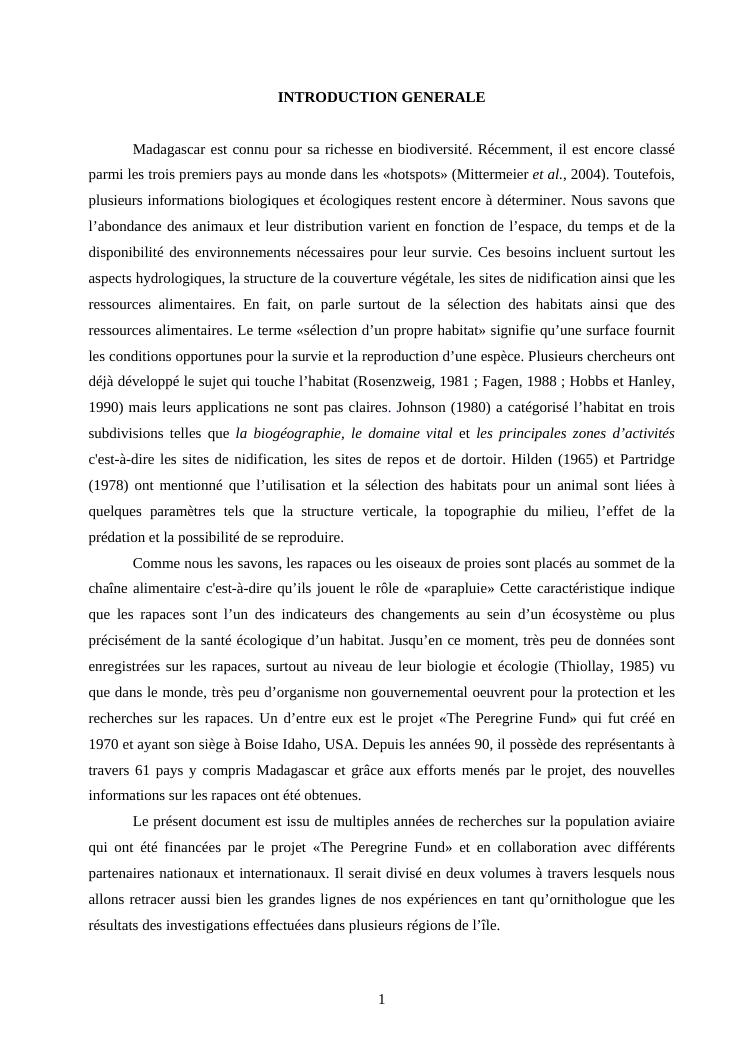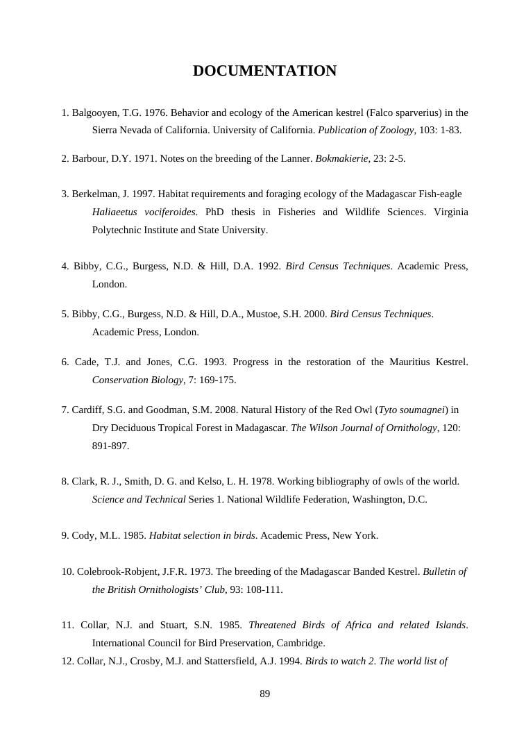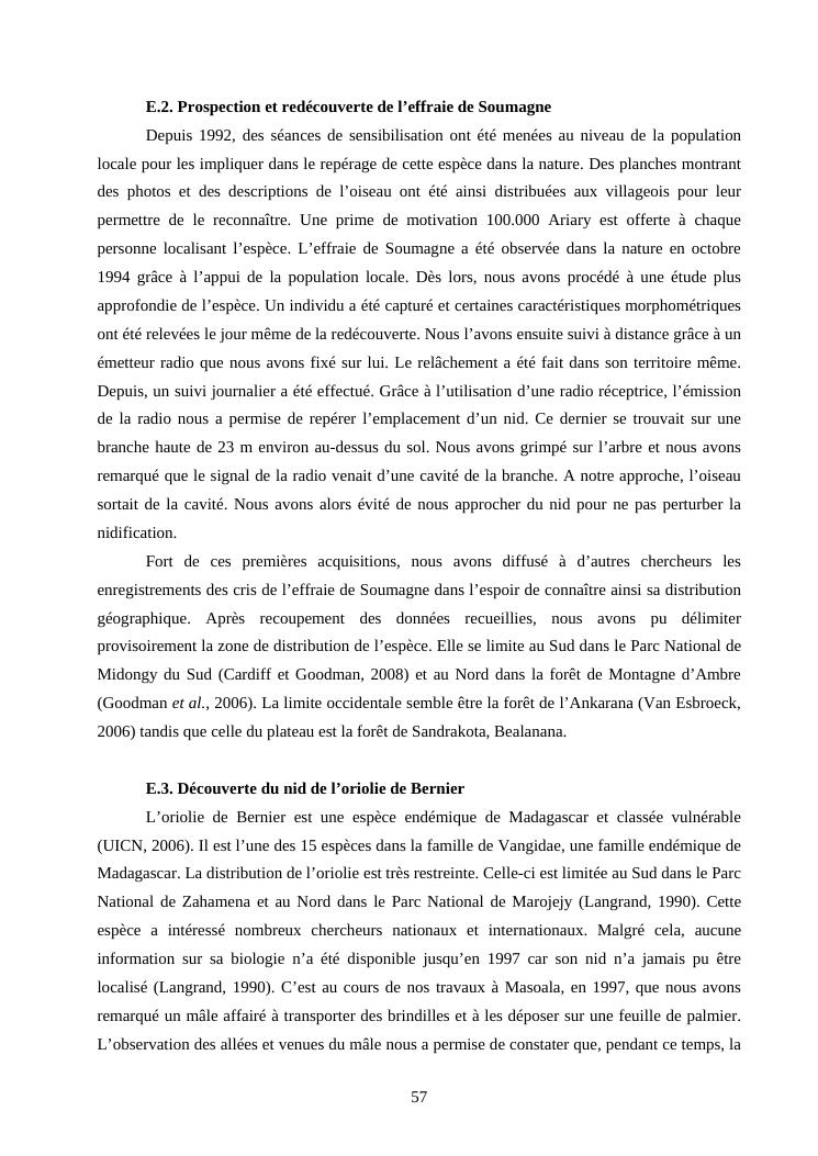 les oiseaux endemiques, outils de la conservation : volume i document de synthese