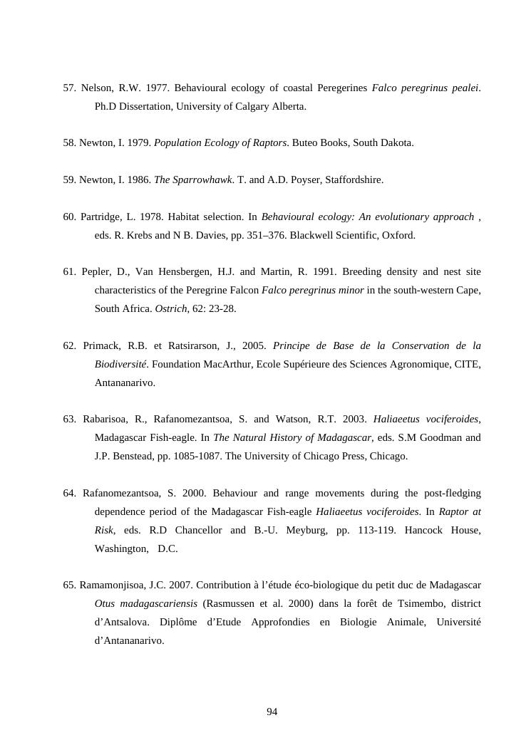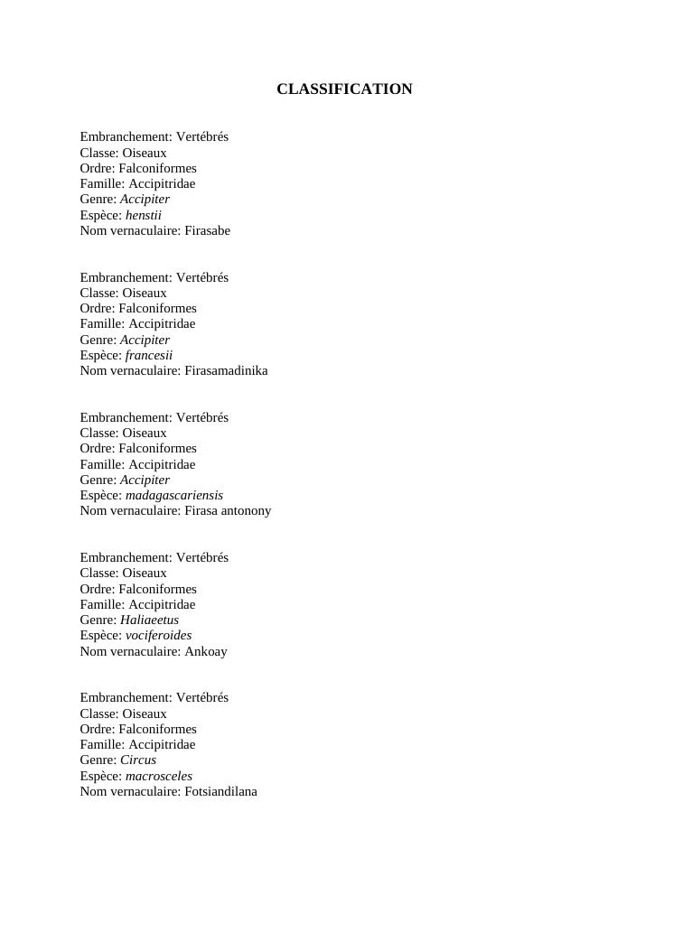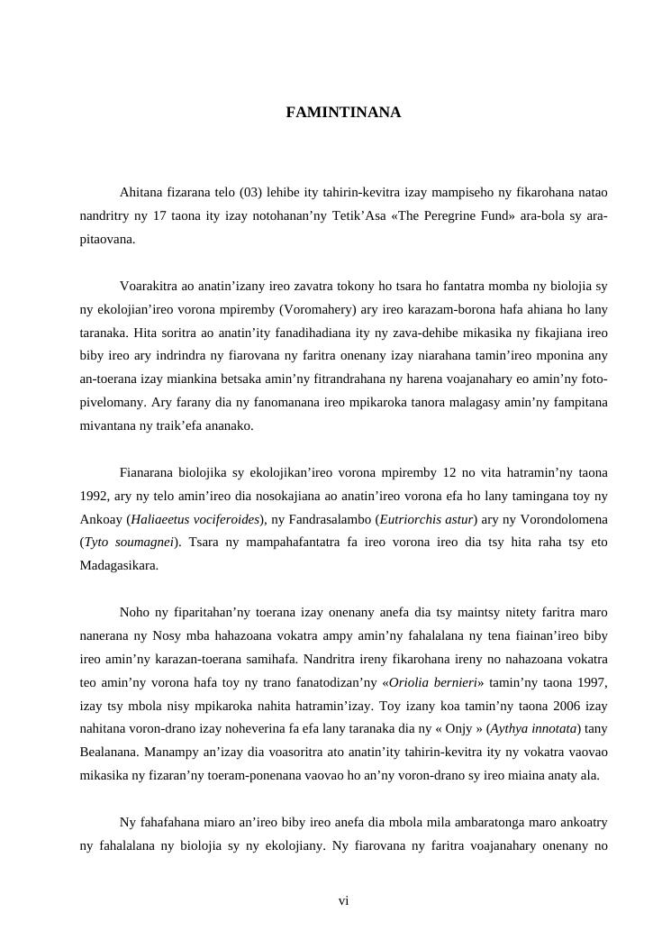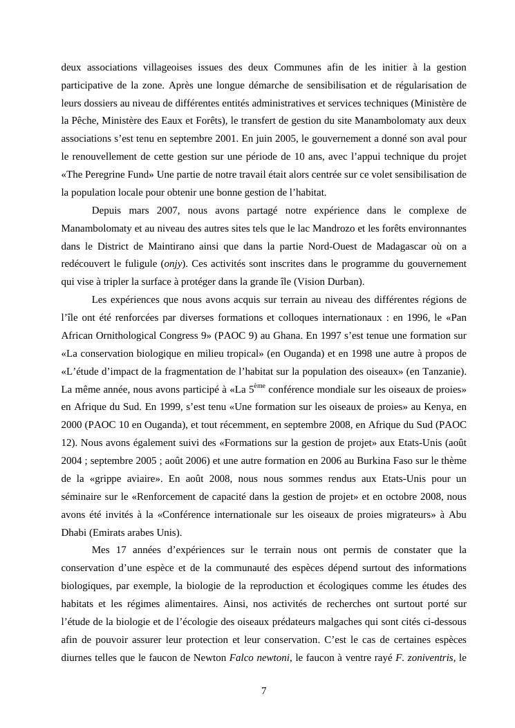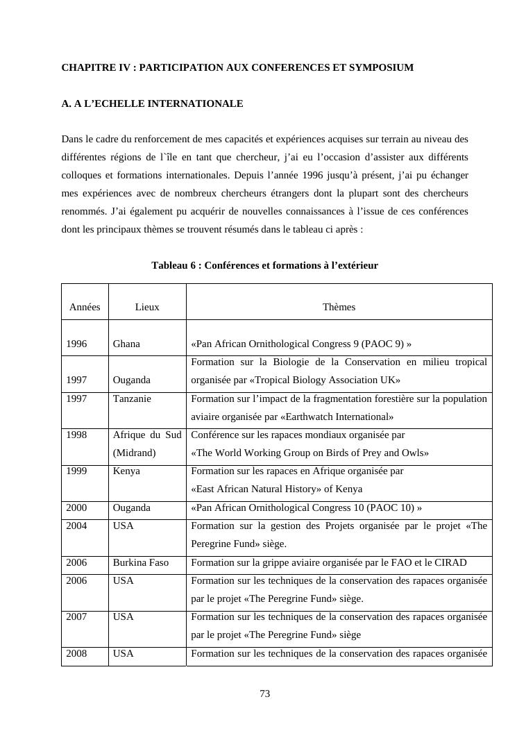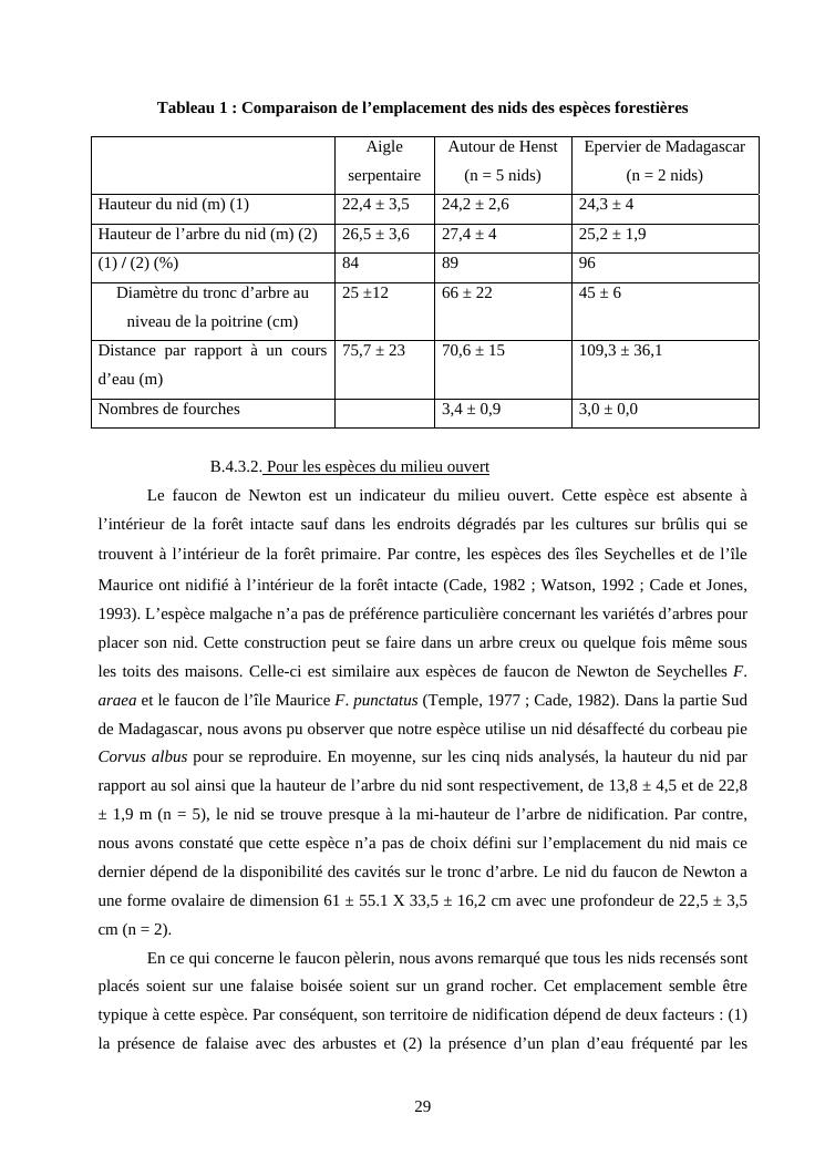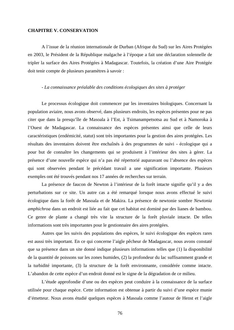 les oiseaux endemiques, outils de la conservation : volume i document de synthese