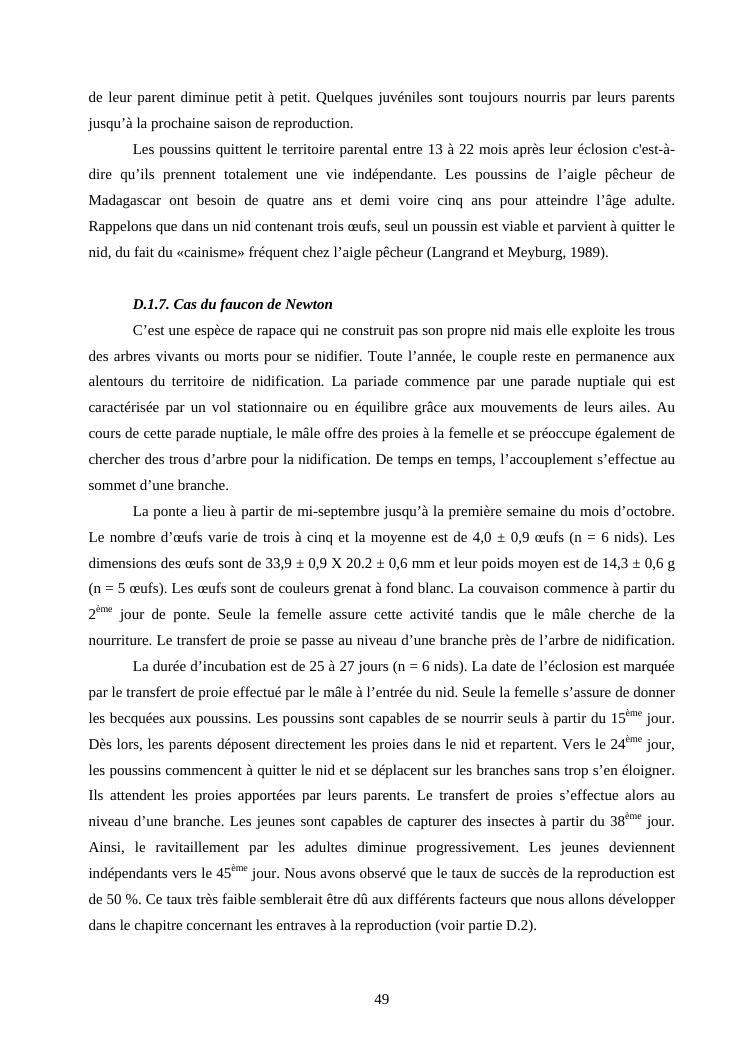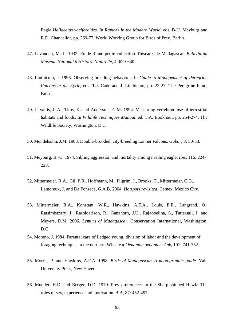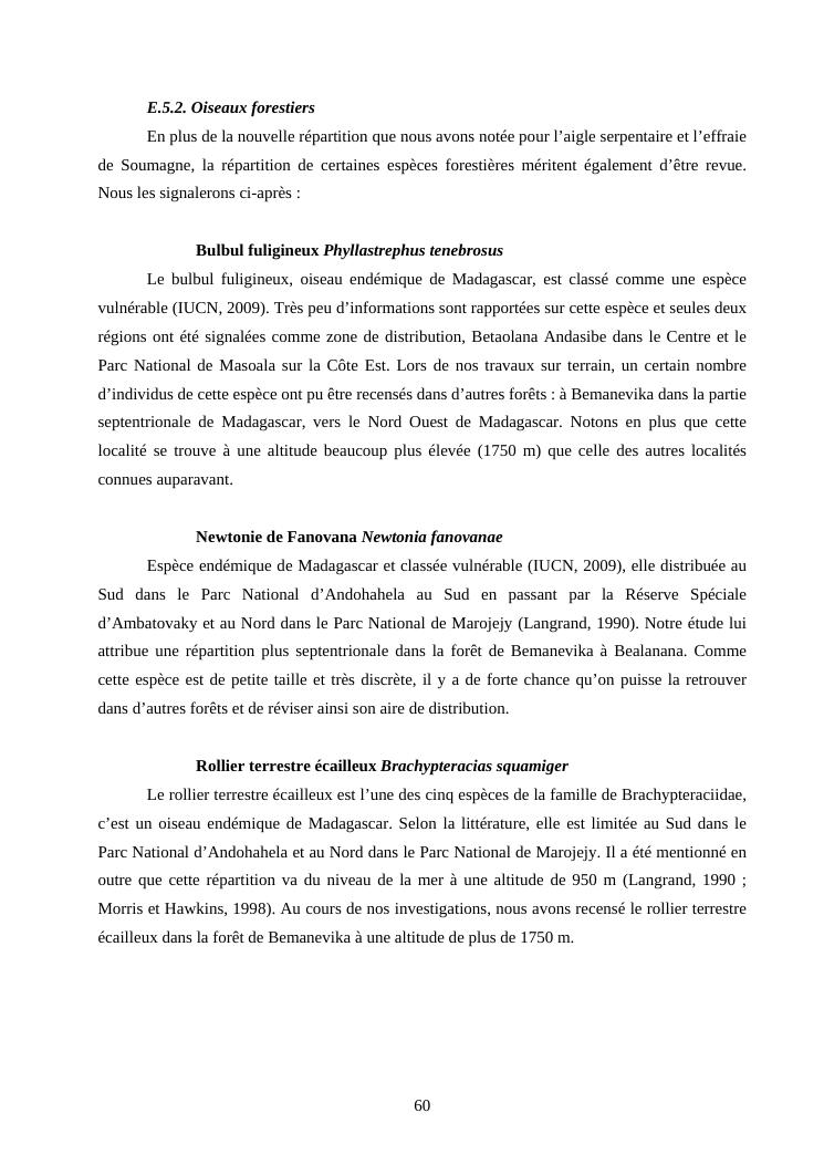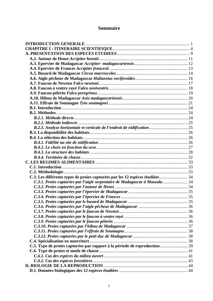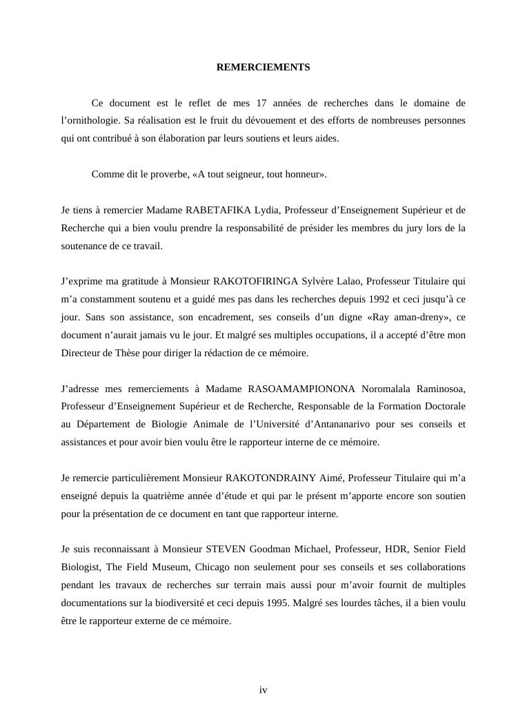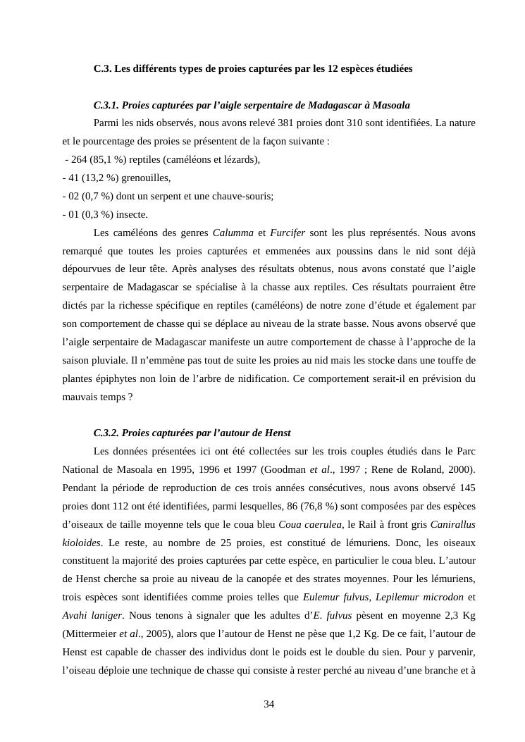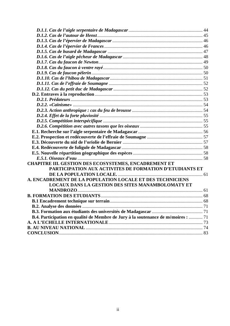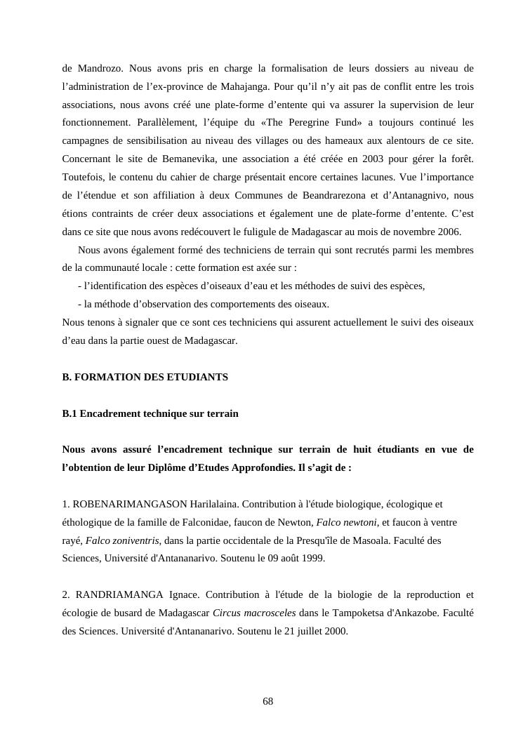 les oiseaux endemiques, outils de la conservation : volume i document de synthese
