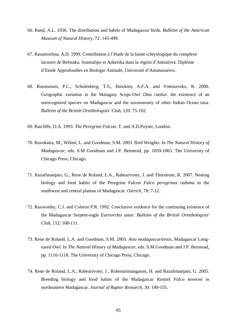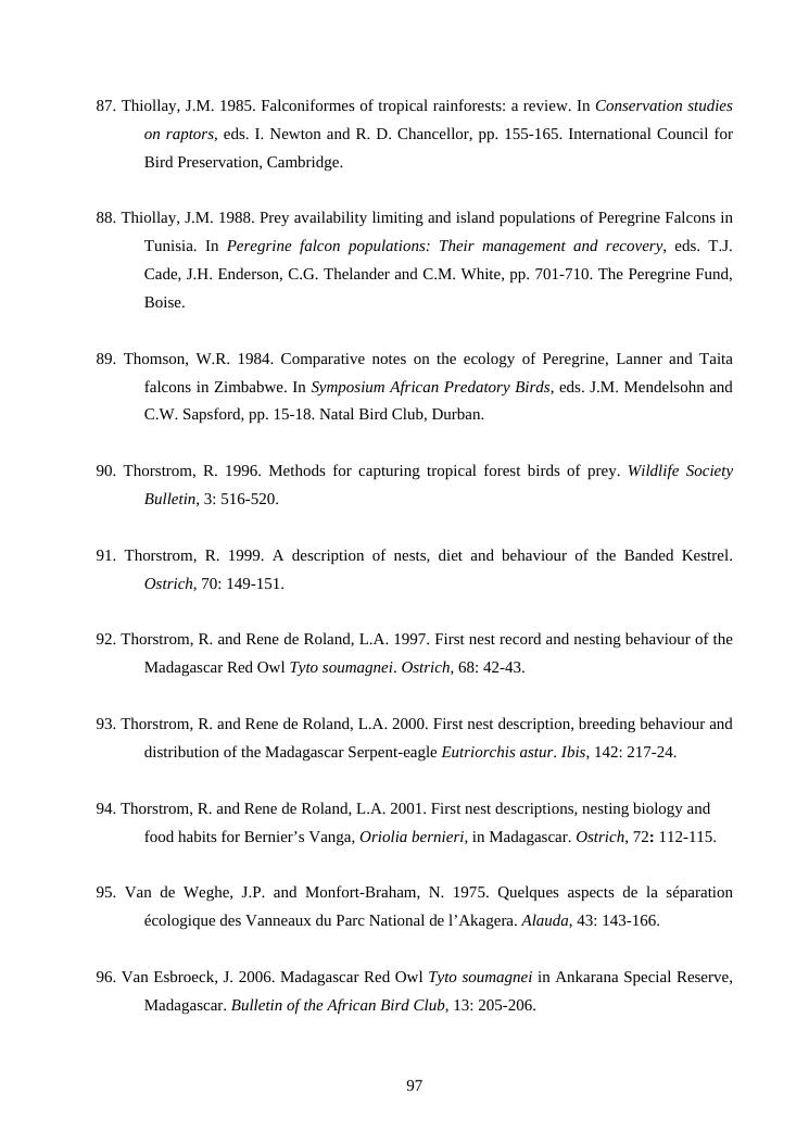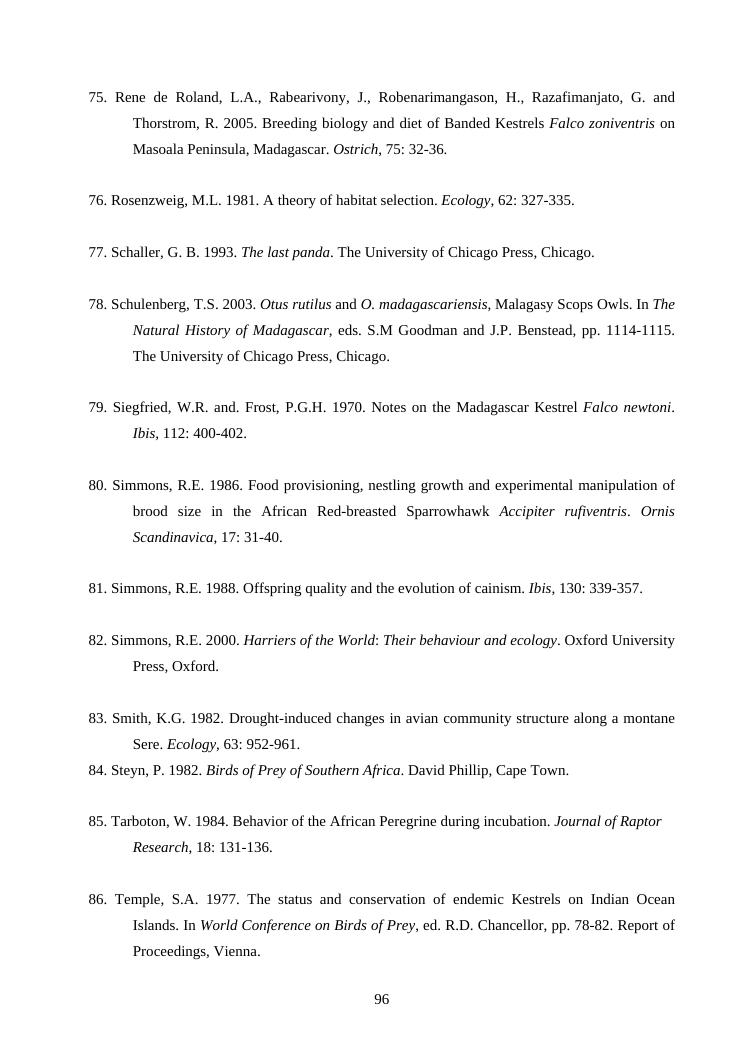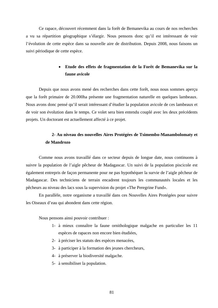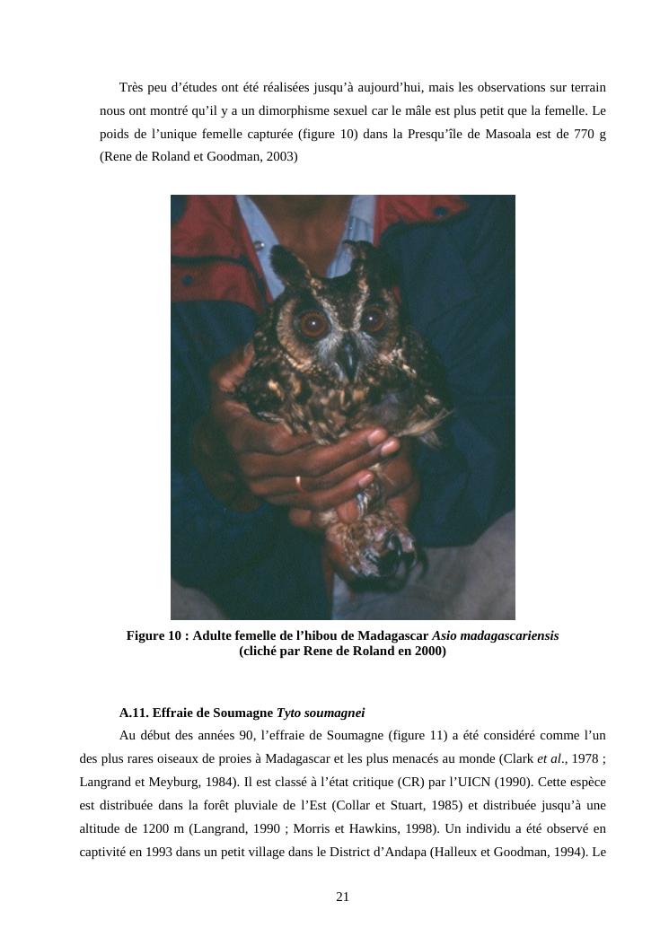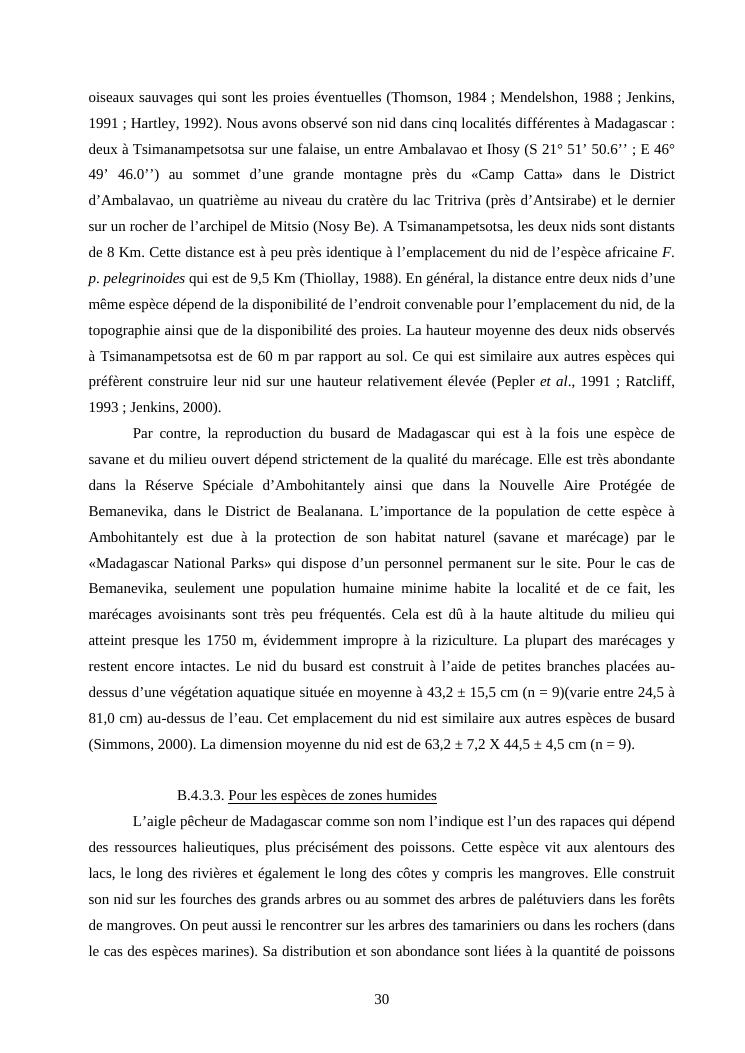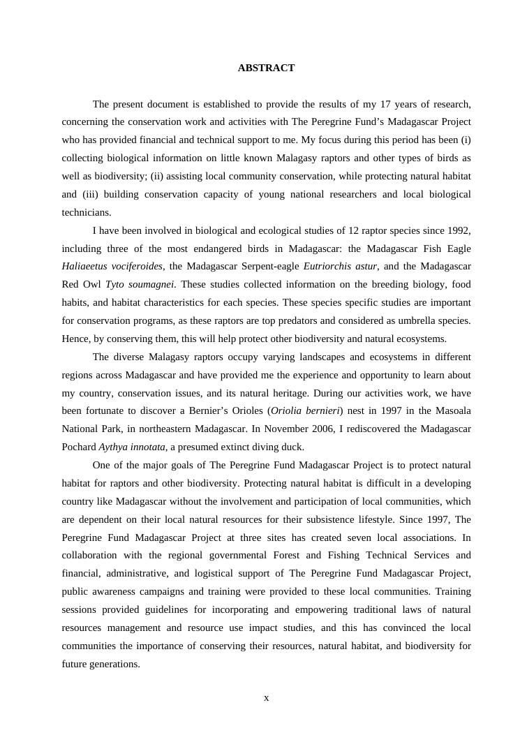 les oiseaux endemiques, outils de la conservation : volume i document de synthese