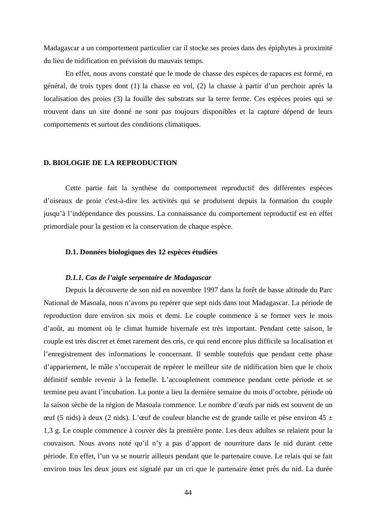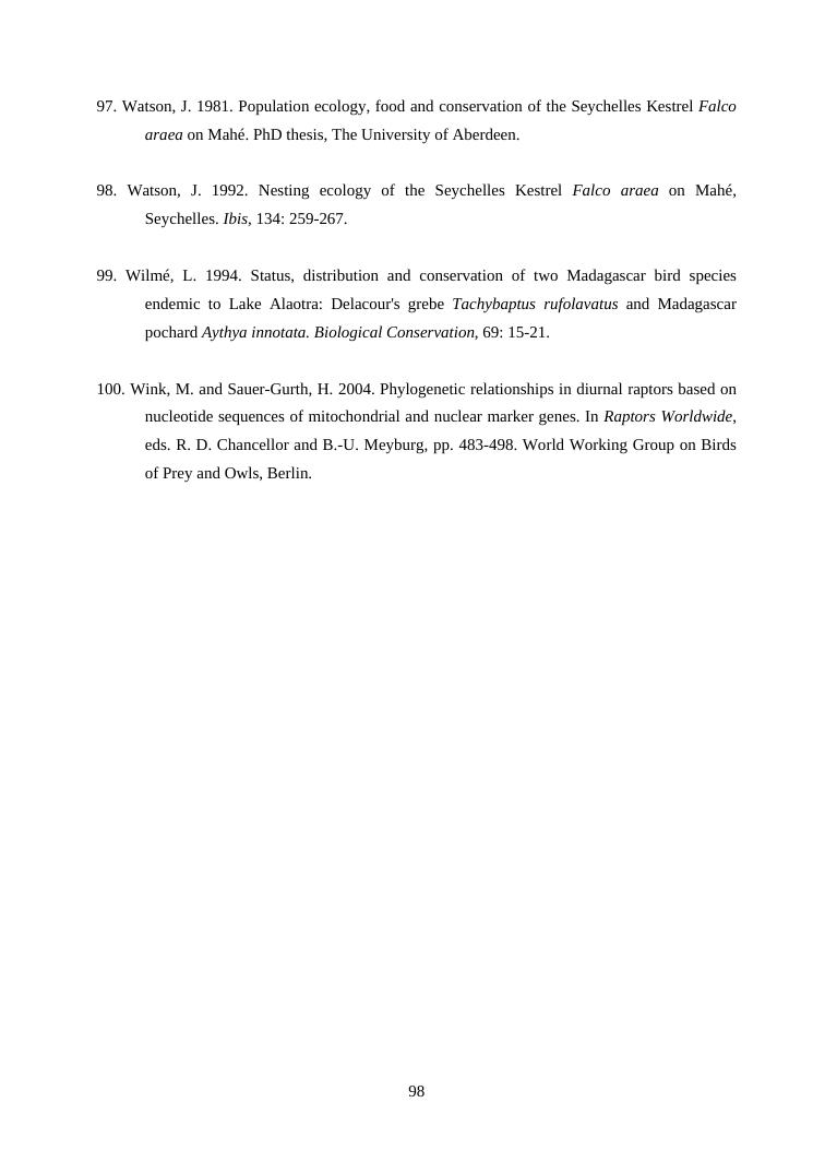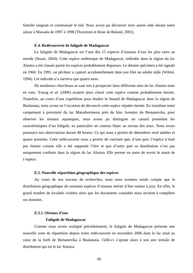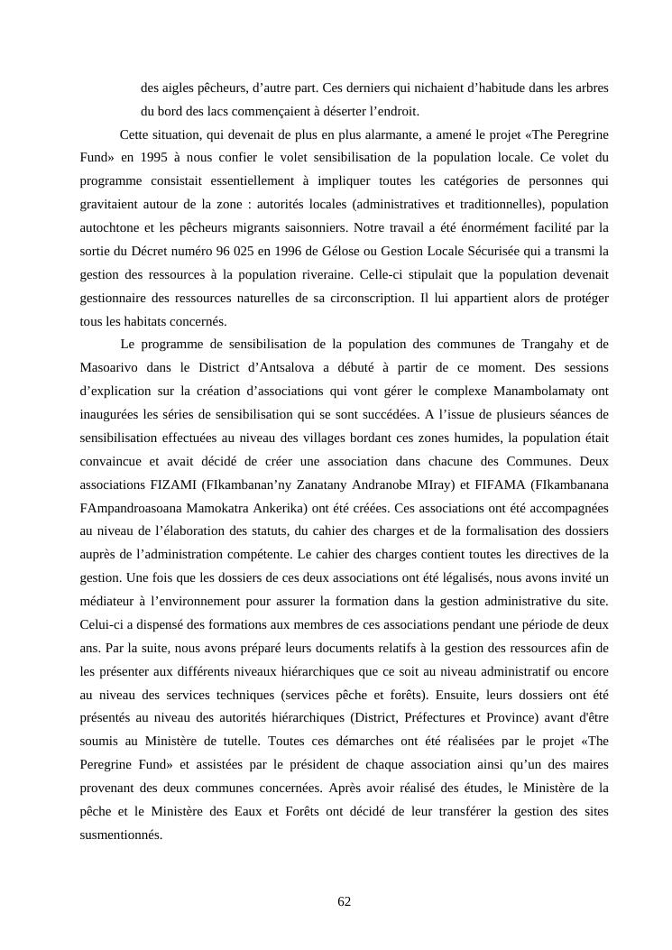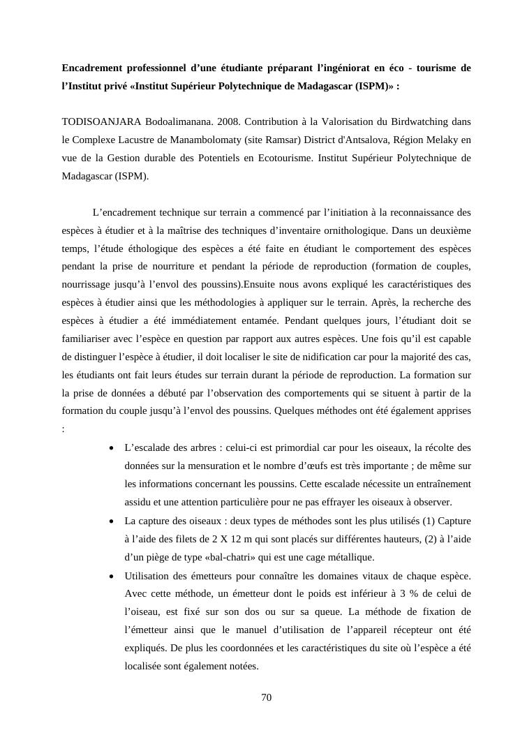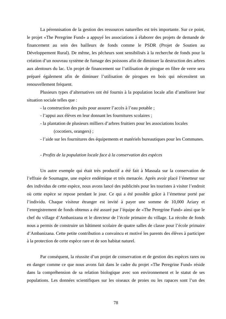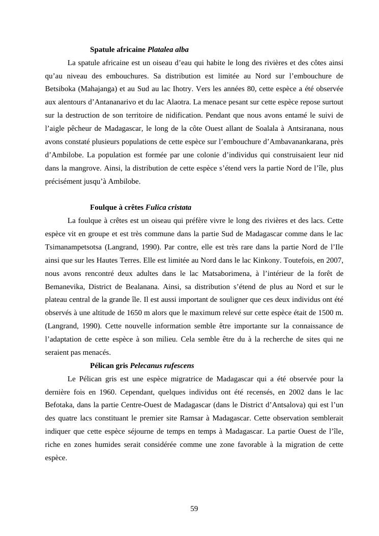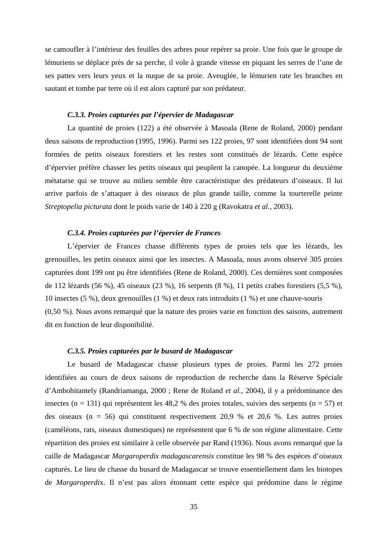 les oiseaux endemiques, outils de la conservation : volume i document de synthese