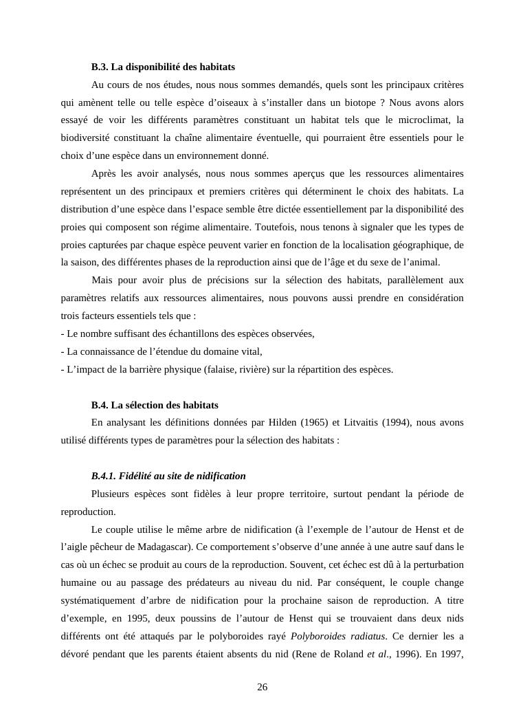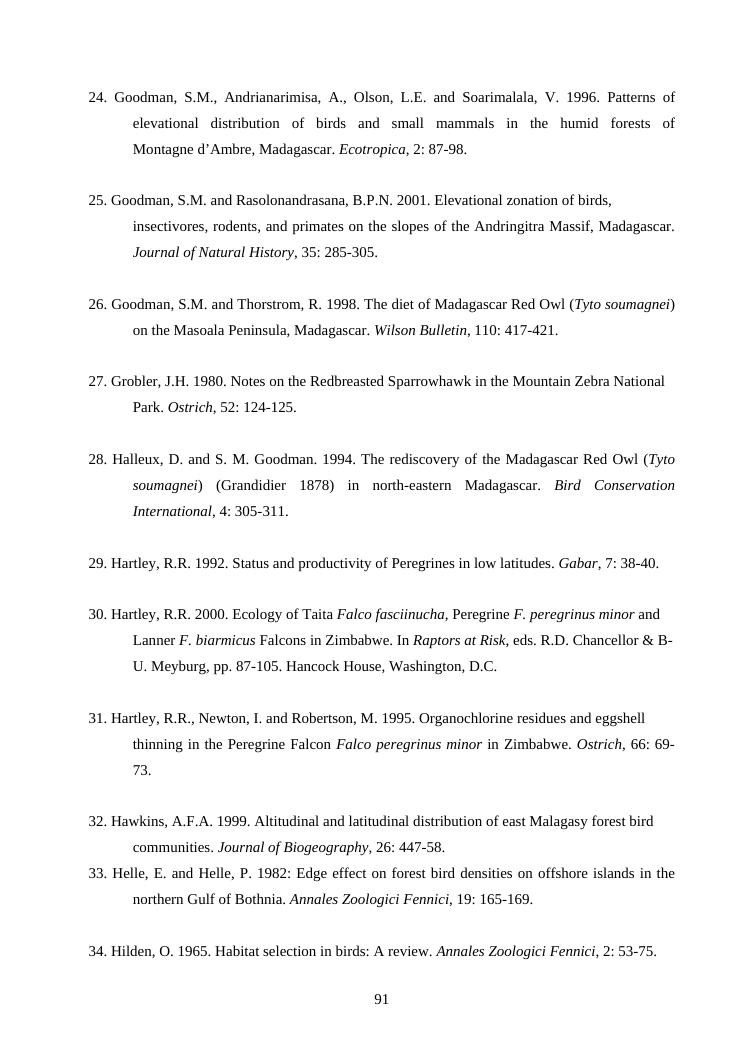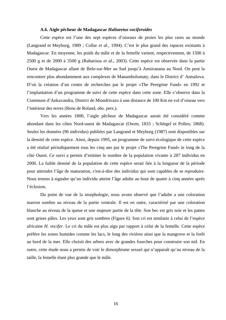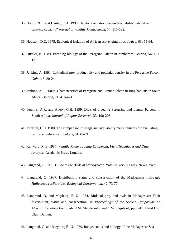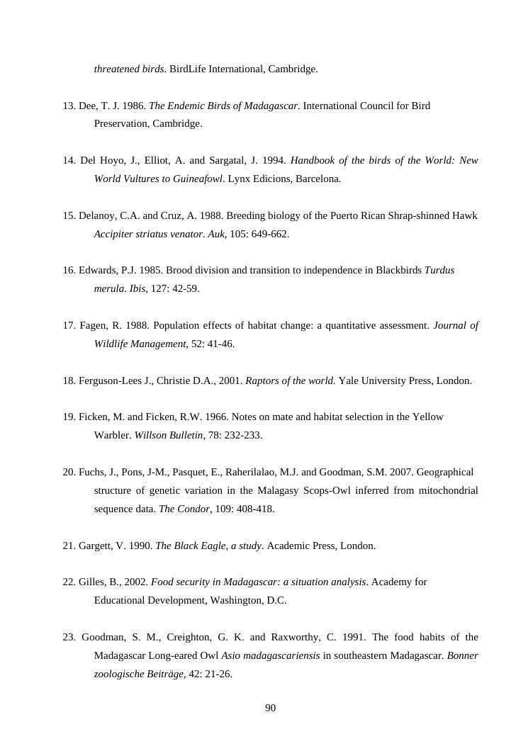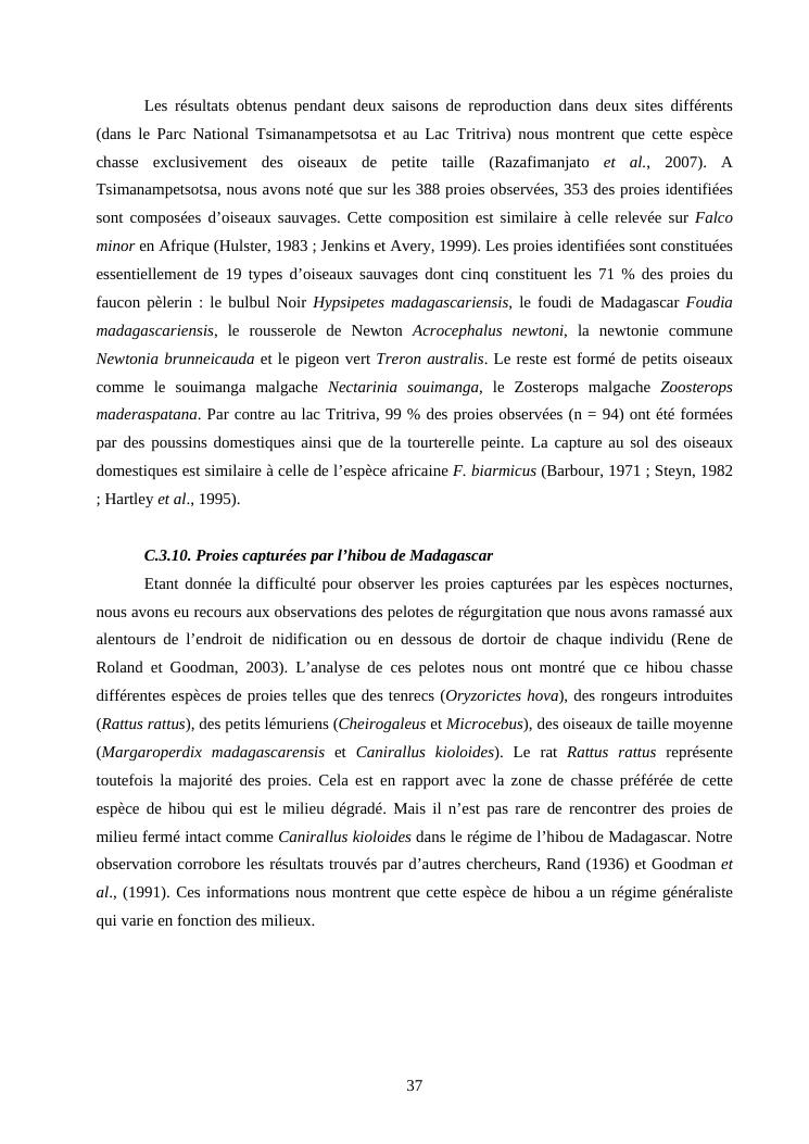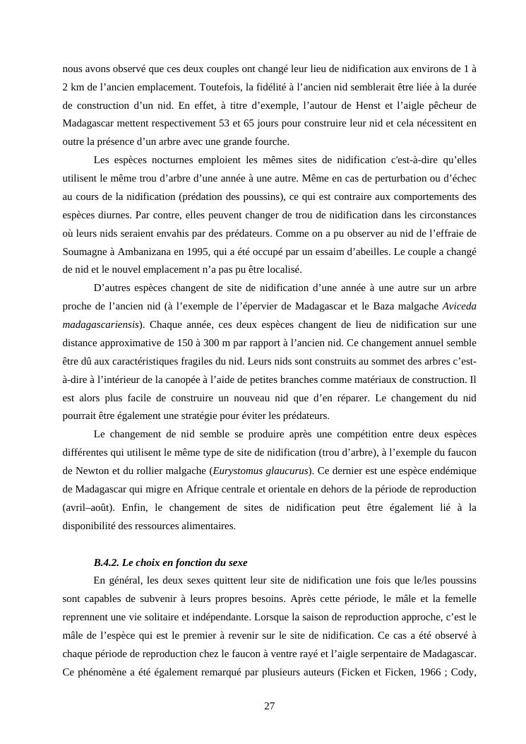 les oiseaux endemiques, outils de la conservation : volume i document de synthese