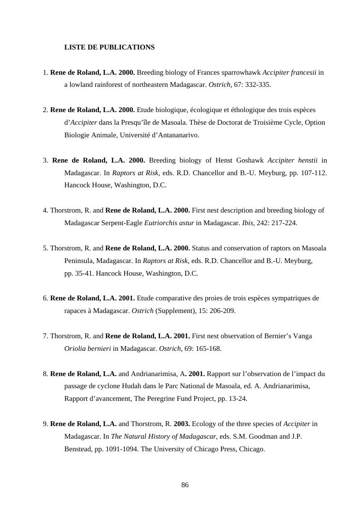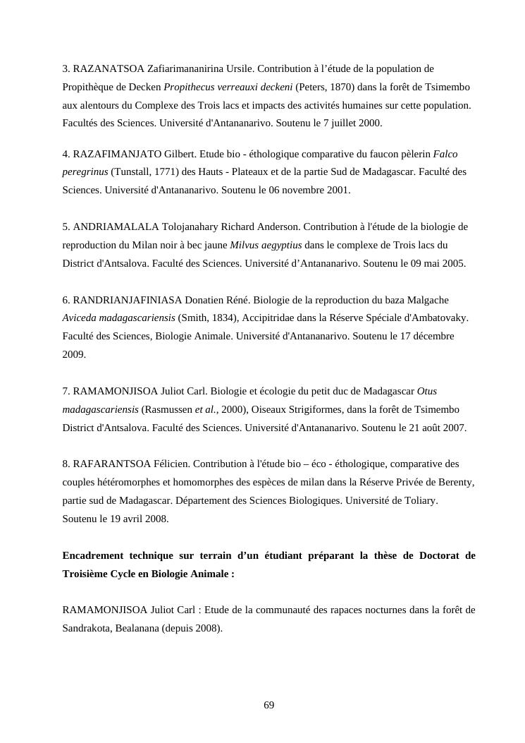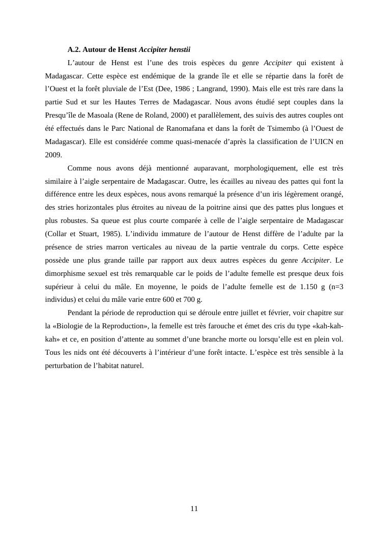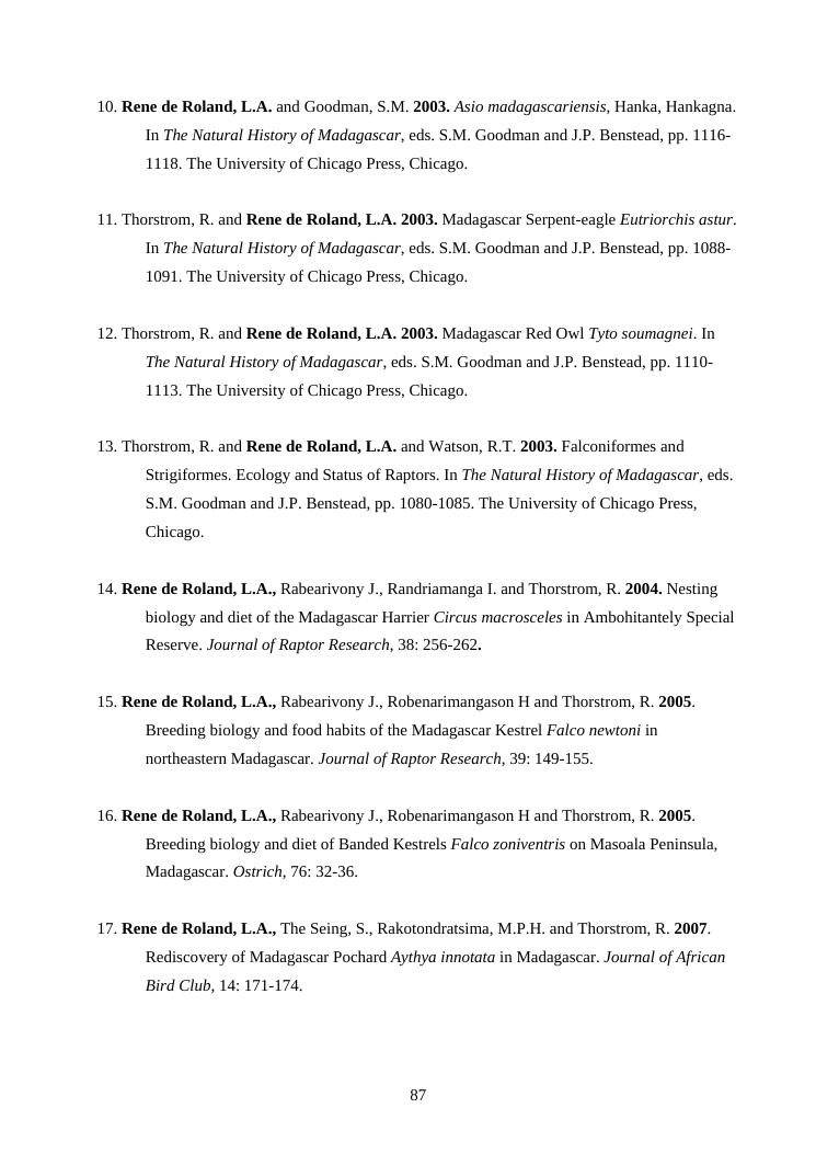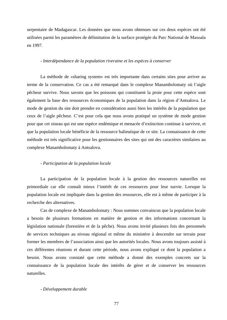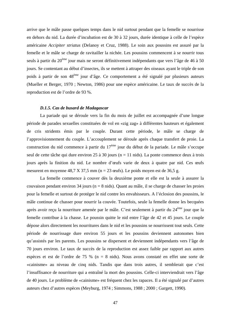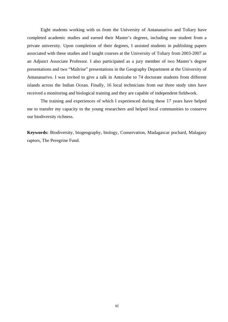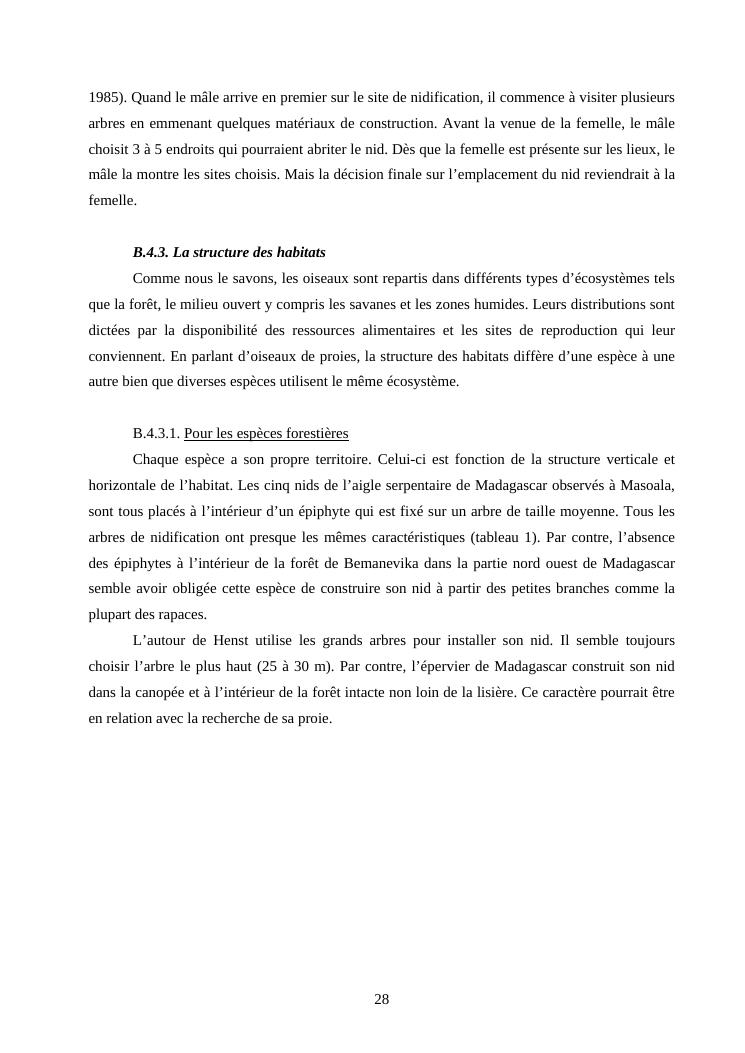 les oiseaux endemiques, outils de la conservation : volume i document de synthese
