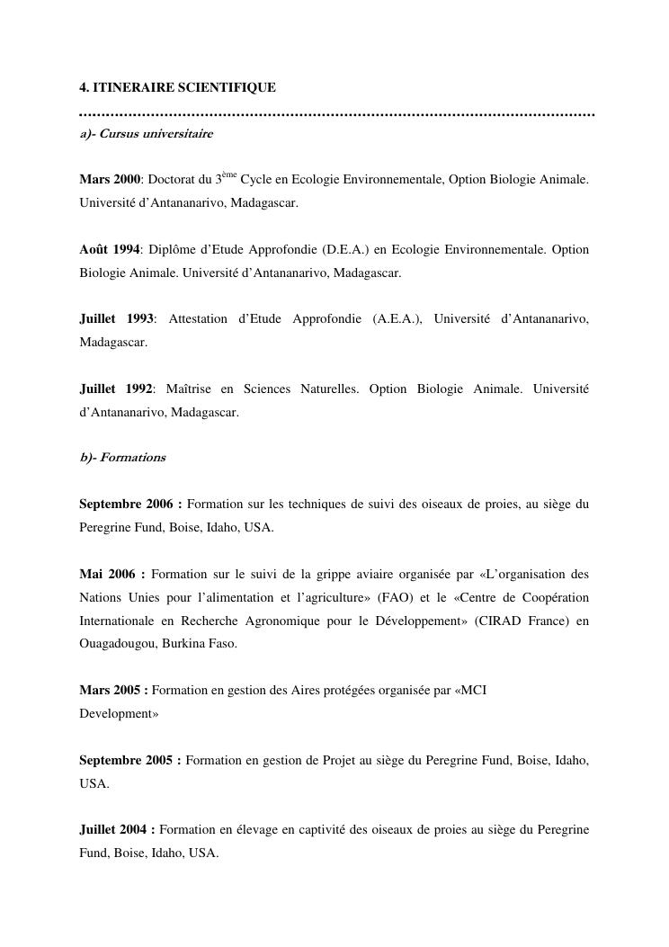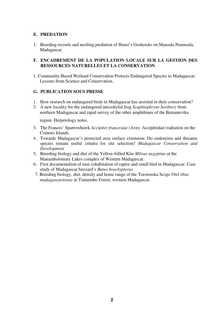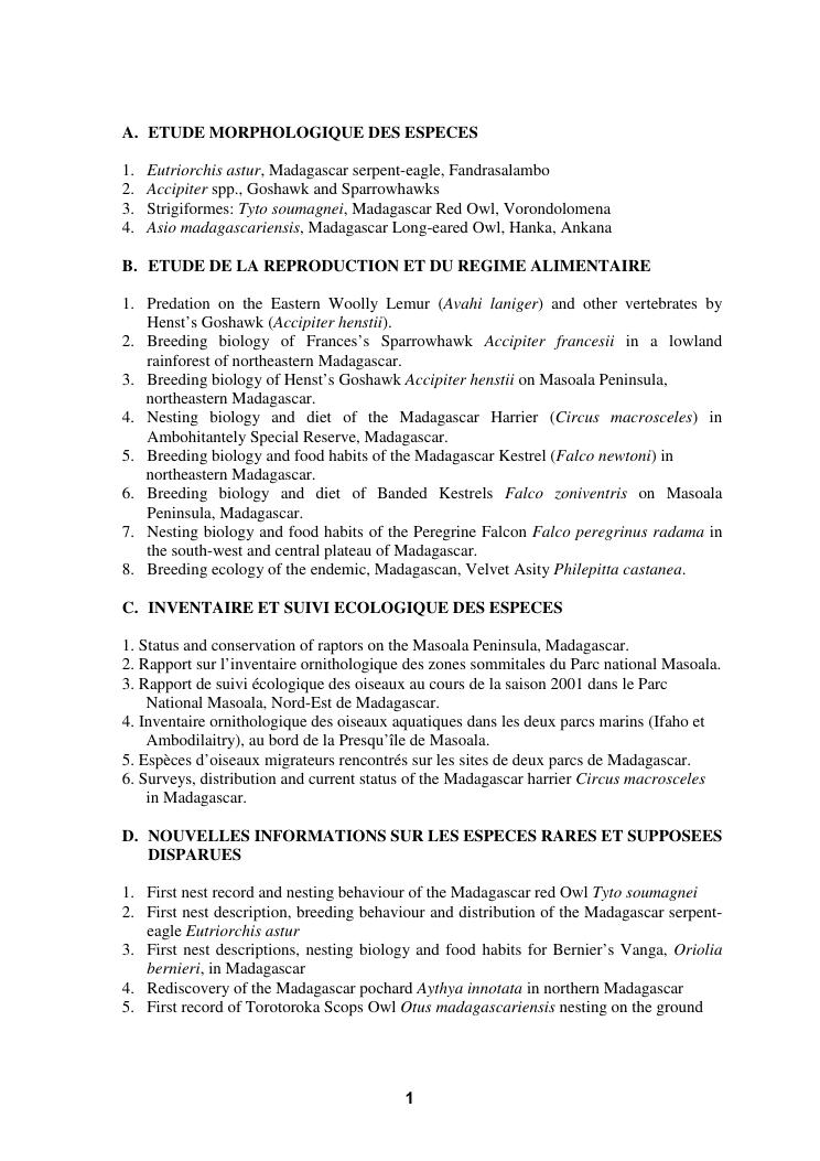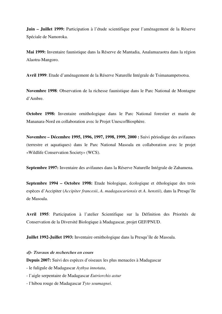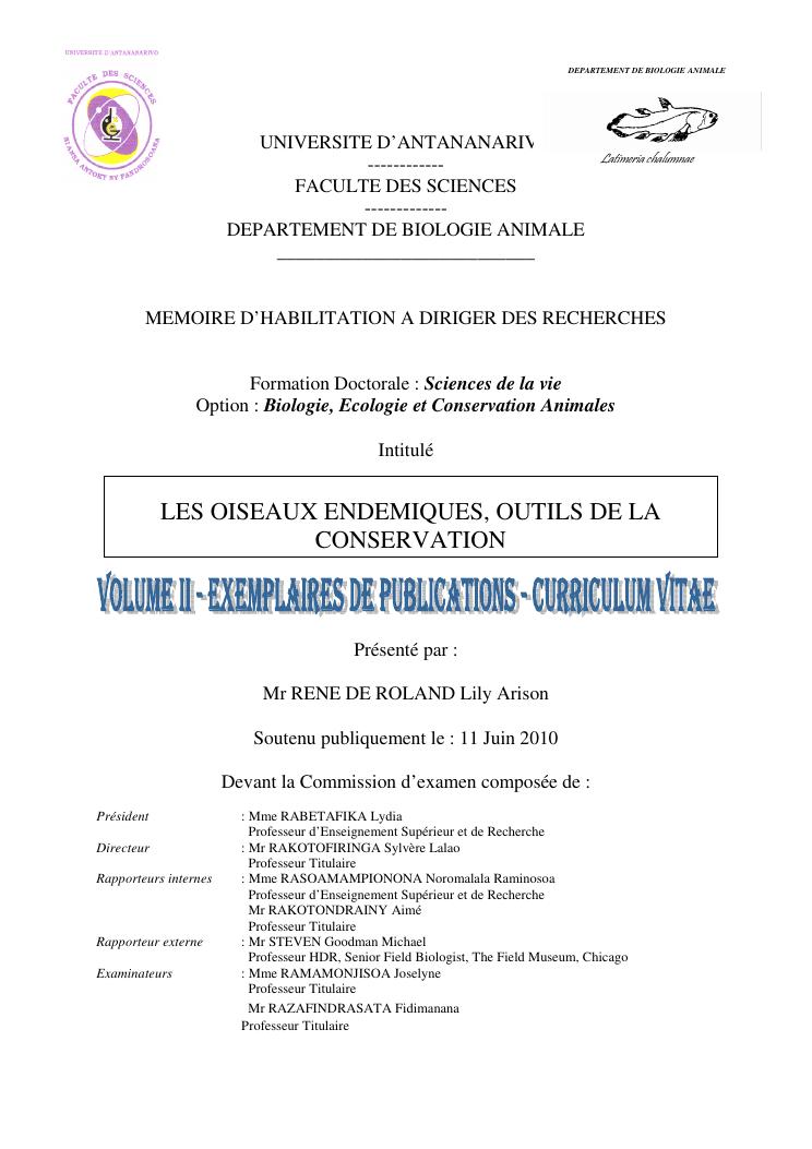 les oiseaux endemiques, outils de la conservation. volume ii : exemplaires de publications - curriculum vitae