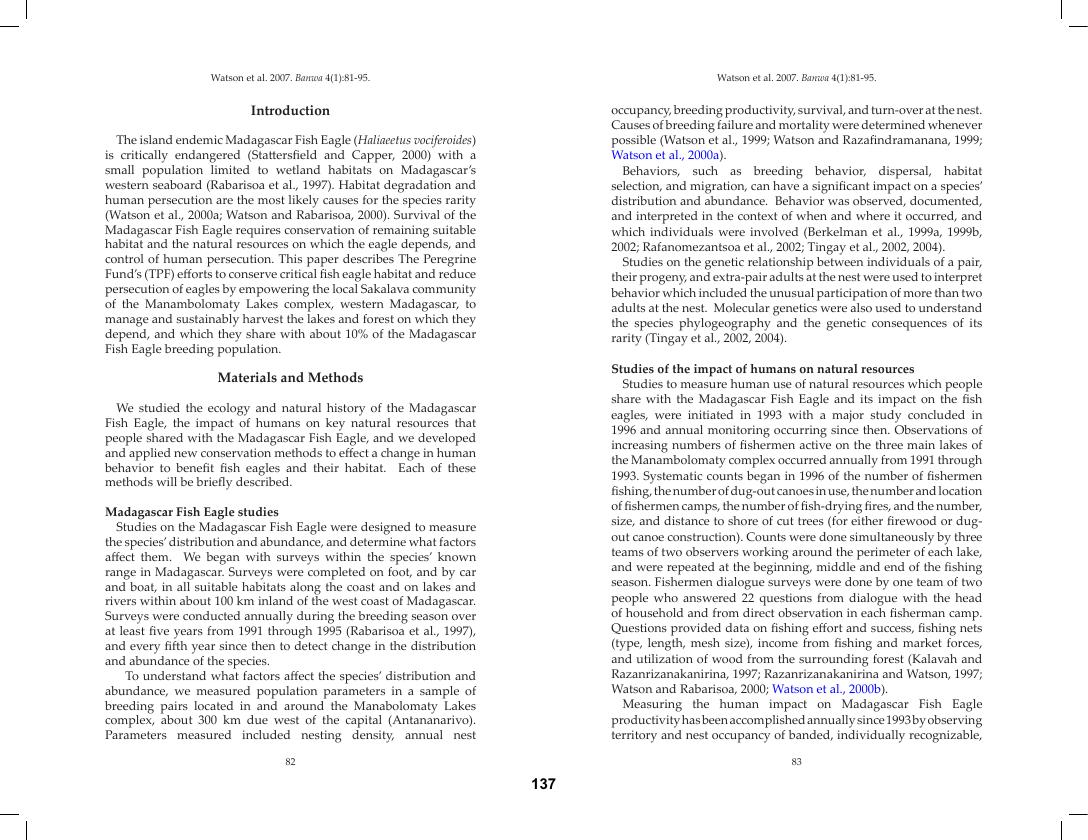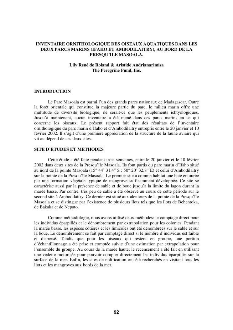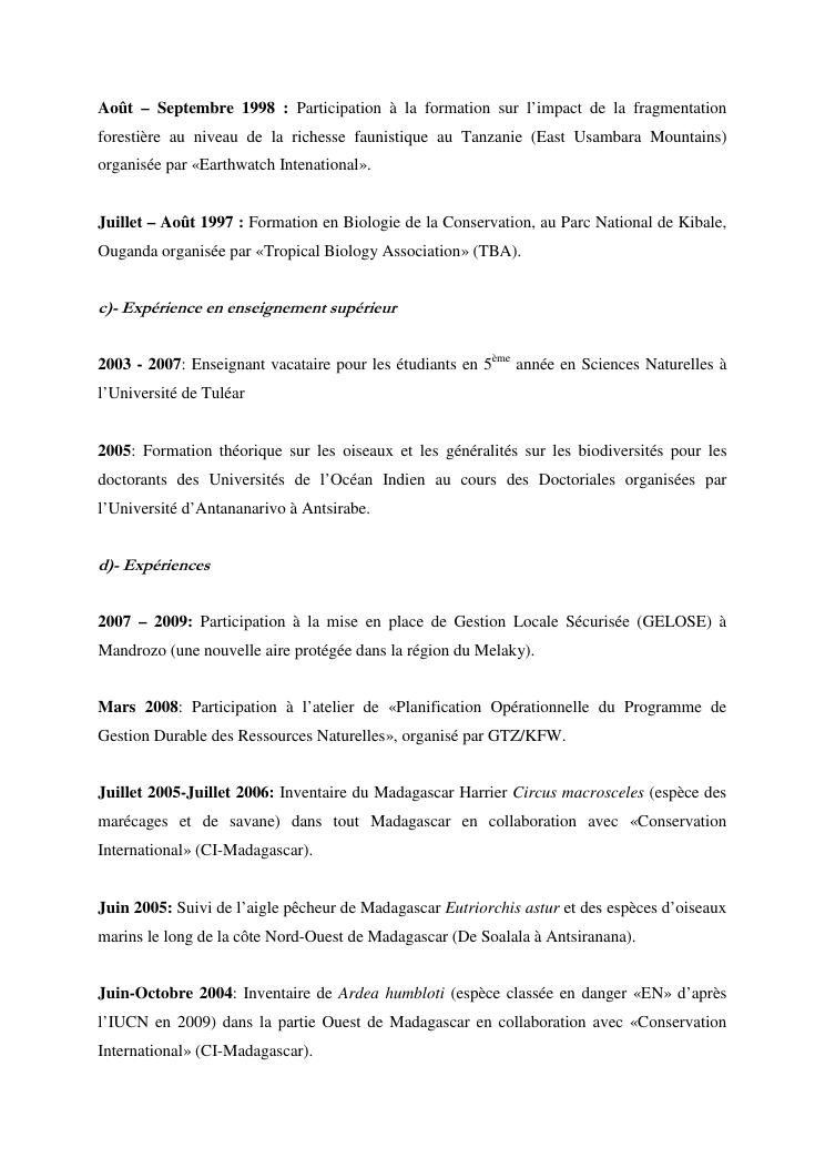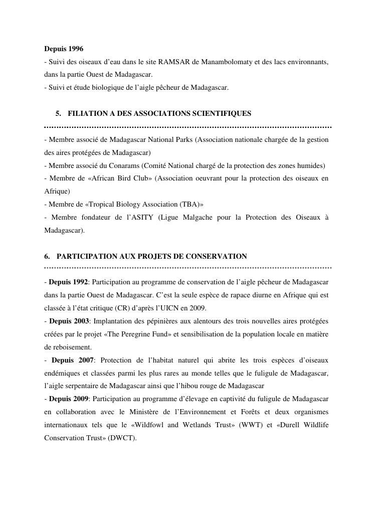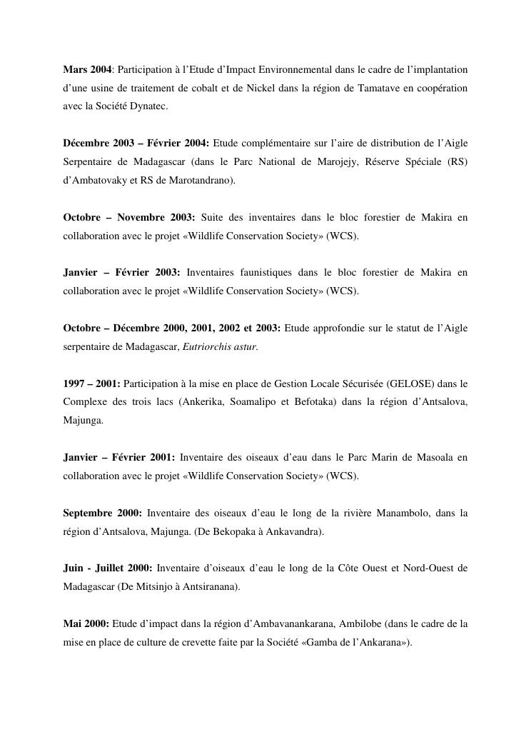 les oiseaux endemiques, outils de la conservation. volume ii : exemplaires de publications - curriculum vitae