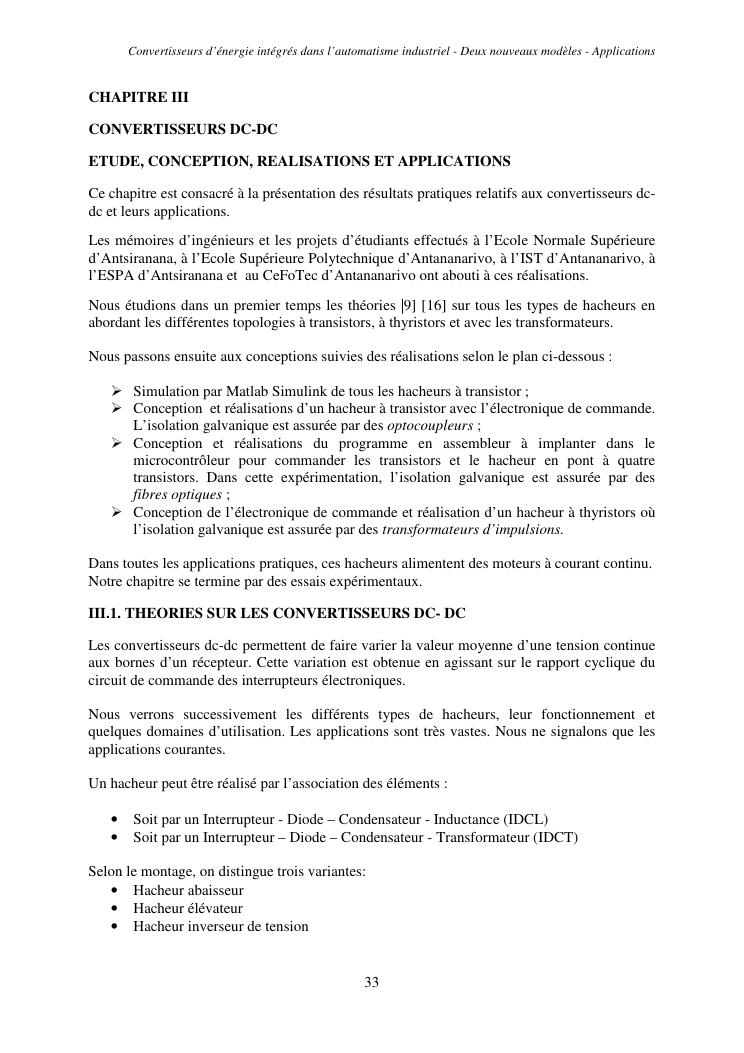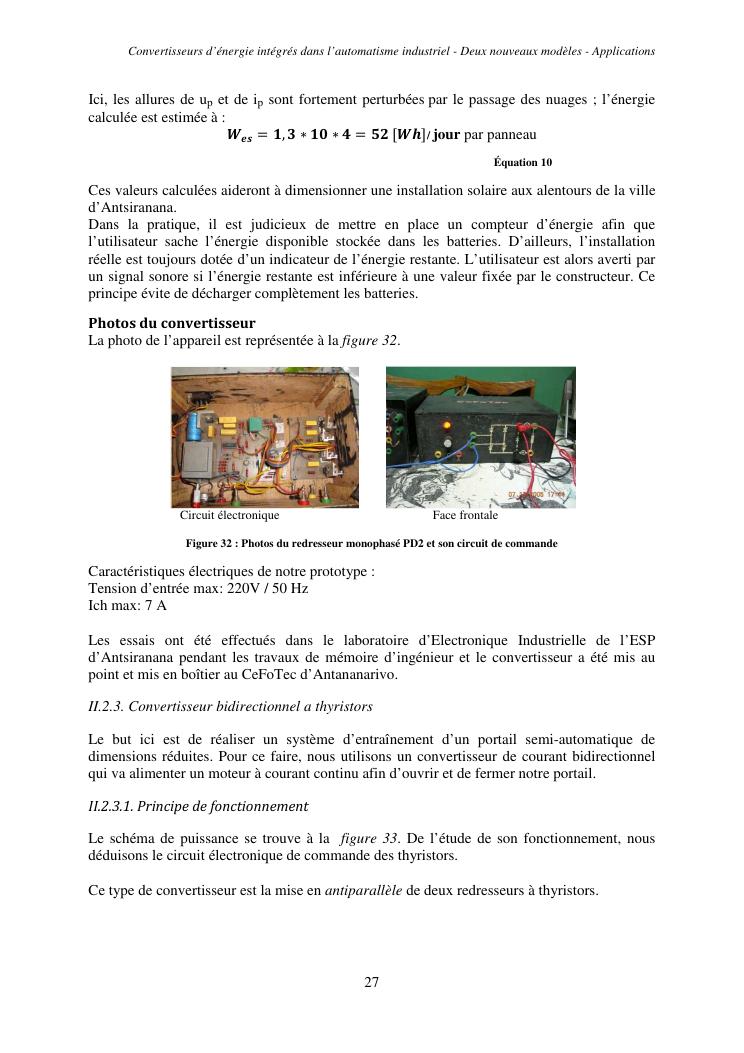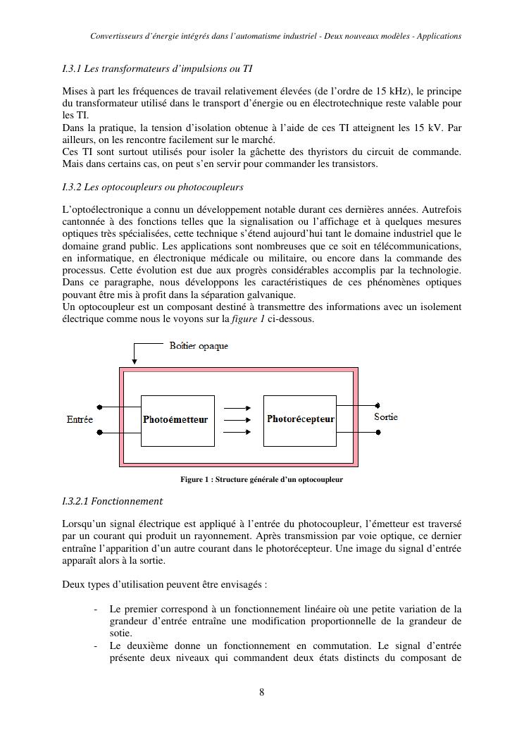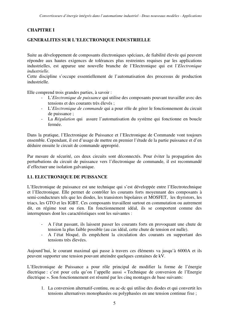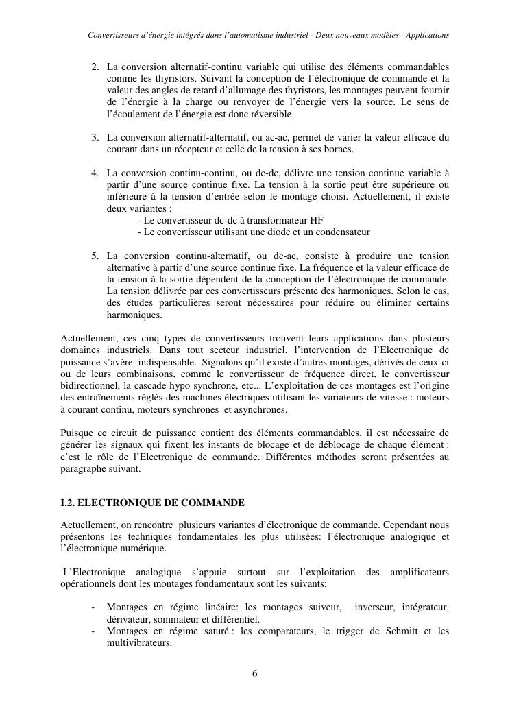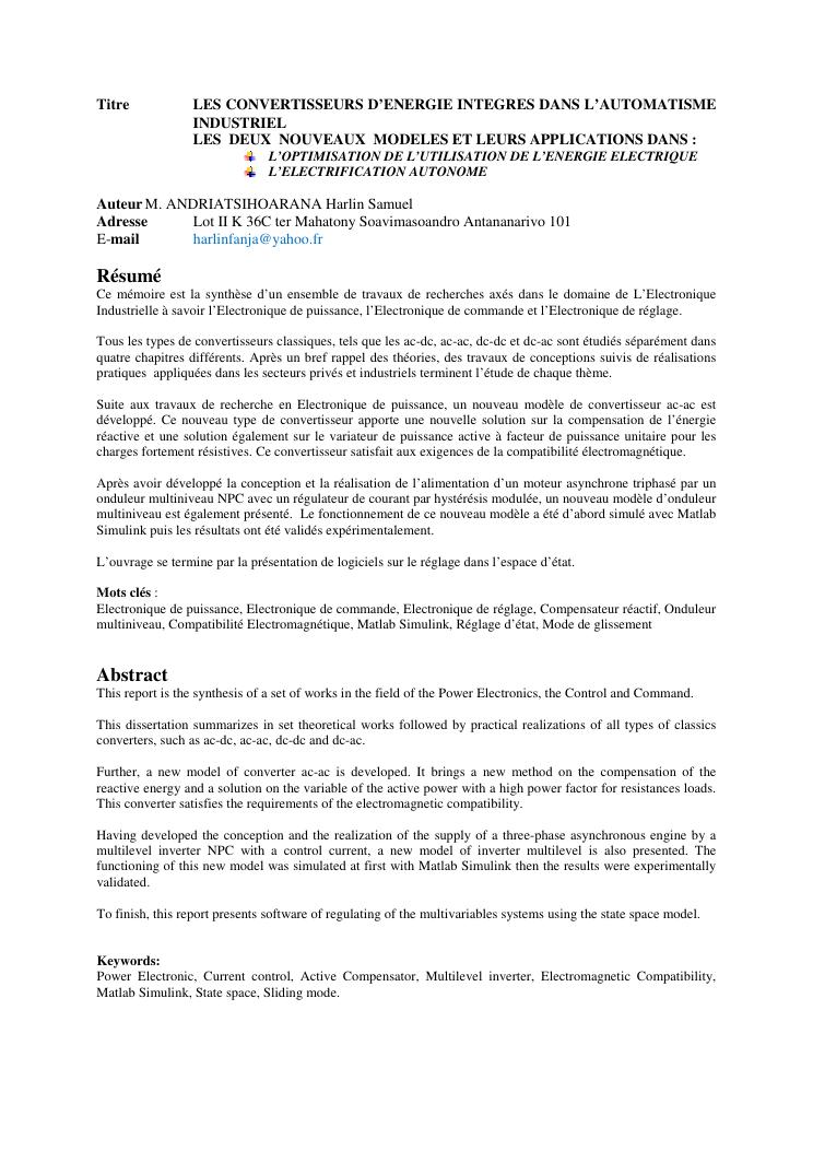 les convertisseurs d'energie integres dans l'automatisme industrielles deux nouveaux modeles et leurs applications dans : l'optimisation de l'utilisation de l'energie electrique l'electrification autonome