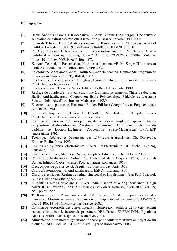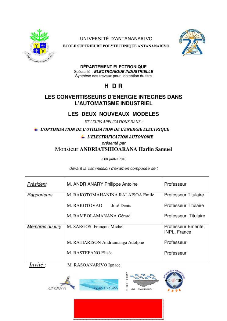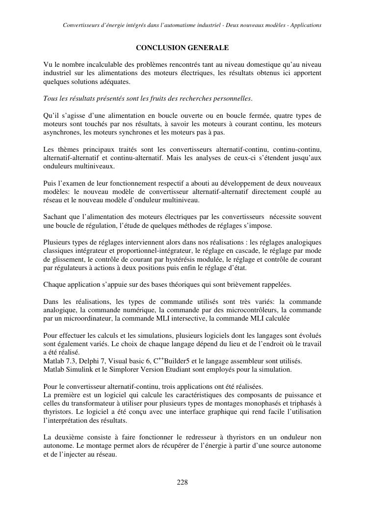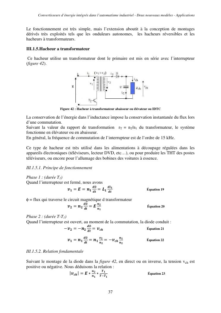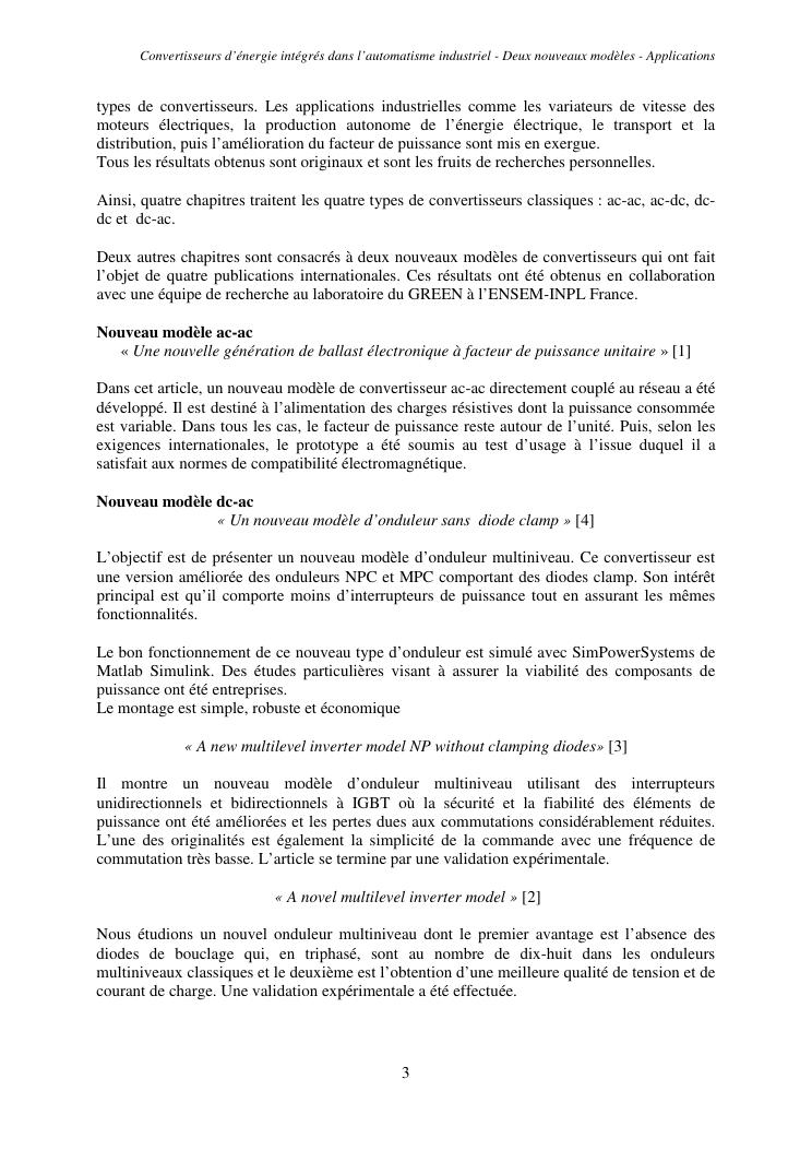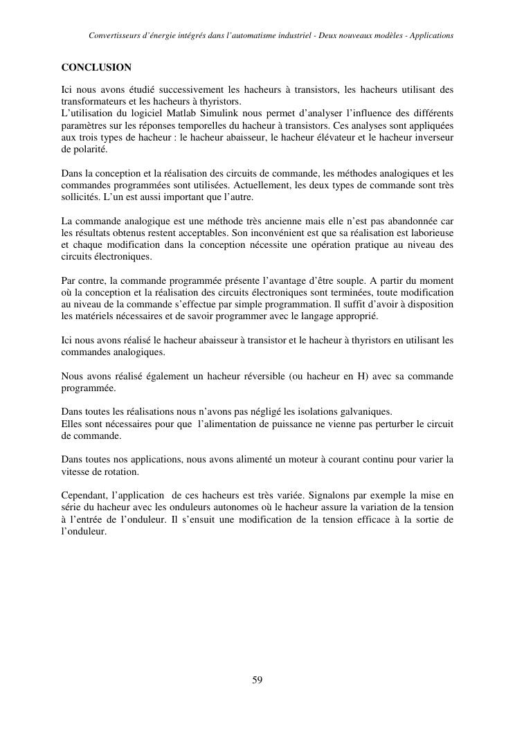 les convertisseurs d'energie integres dans l'automatisme industrielles deux nouveaux modeles et leurs applications dans : l'optimisation de l'utilisation de l'energie electrique l'electrification autonome