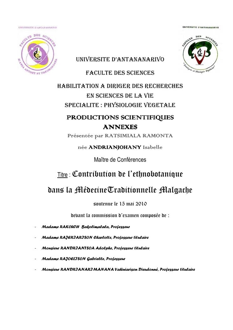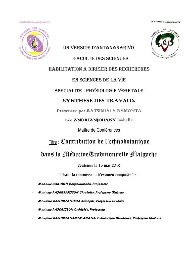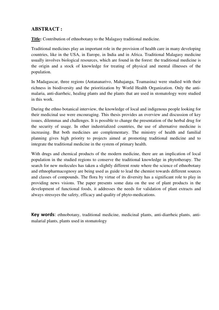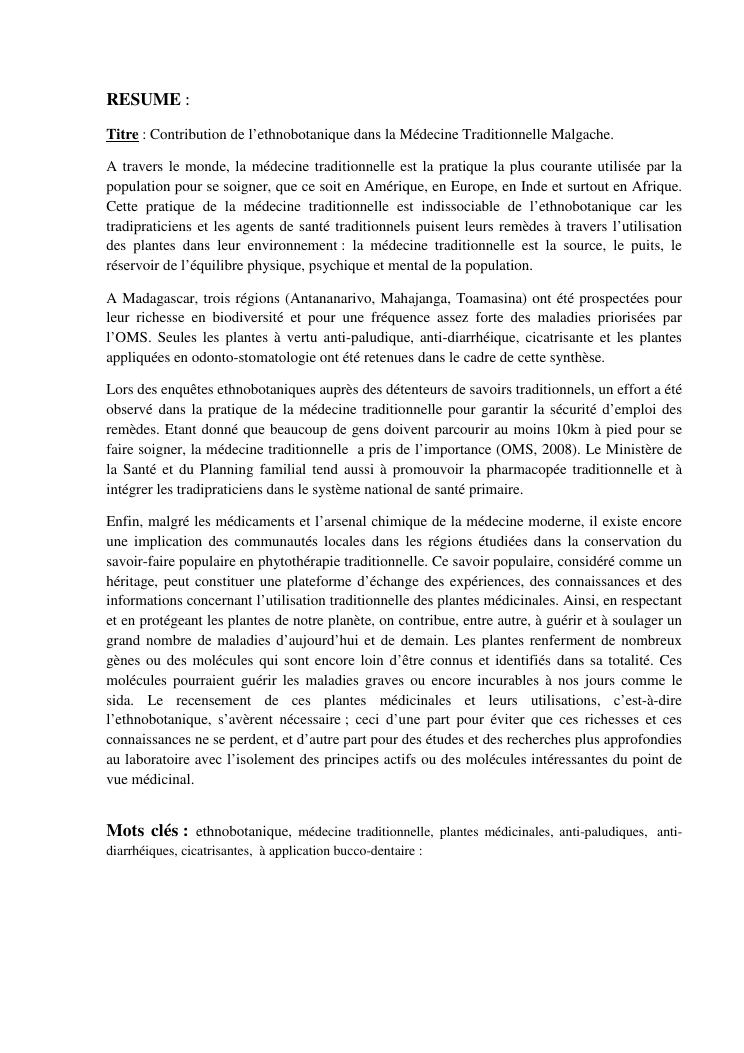 contribution de l'ethnobotanique dans la medecinetraditionnelle malgache