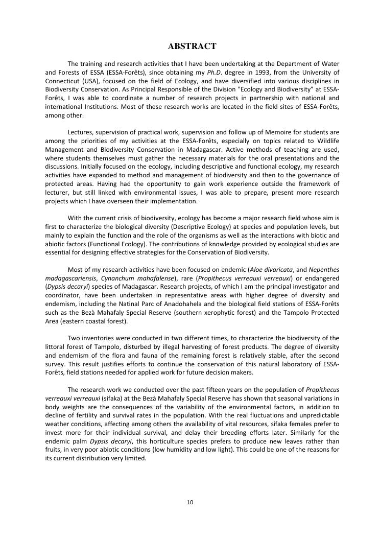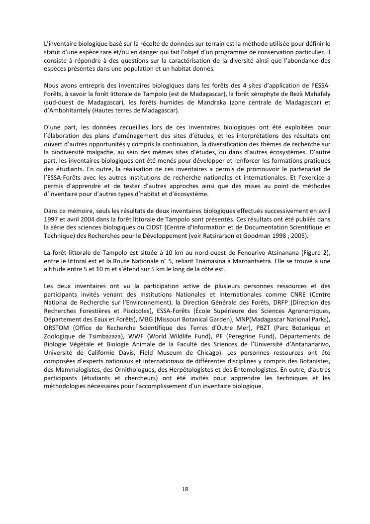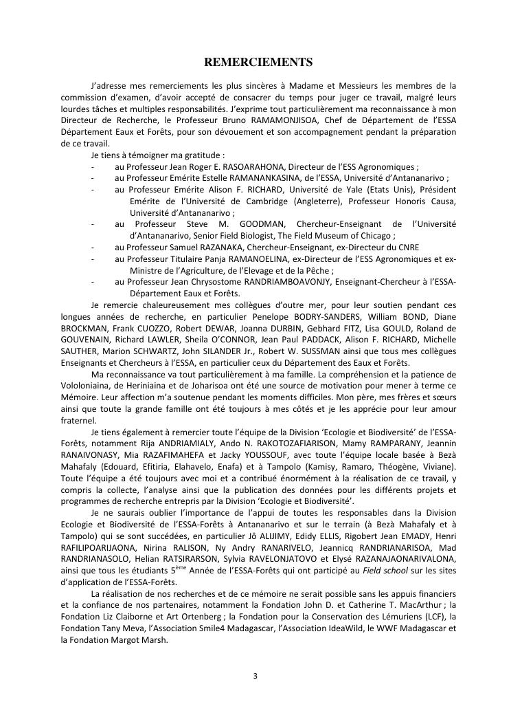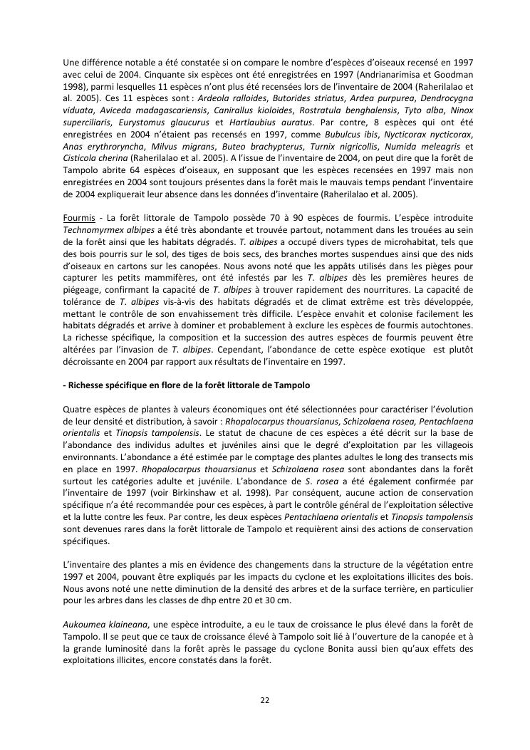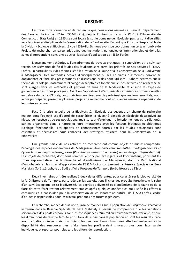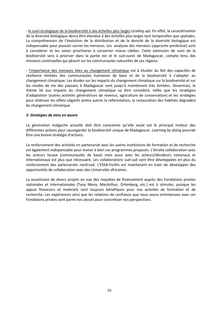 ecologie descriptive et fonctionnelle : outils essentiels pour la conservation de la biodiversite caracterisation des especes, suivi de la population et etude des interdependances au sein de la communaute naturelle a madagascar. document 2 : synthèse des travaux de recherche