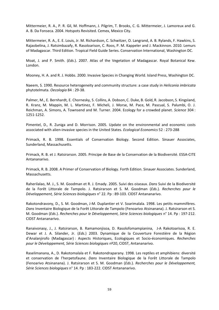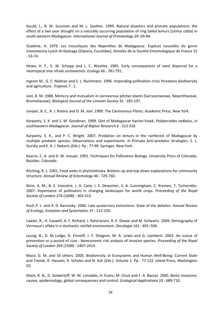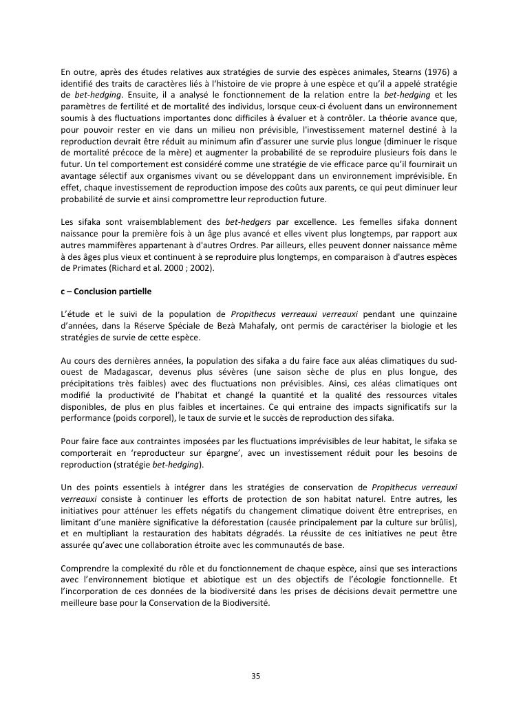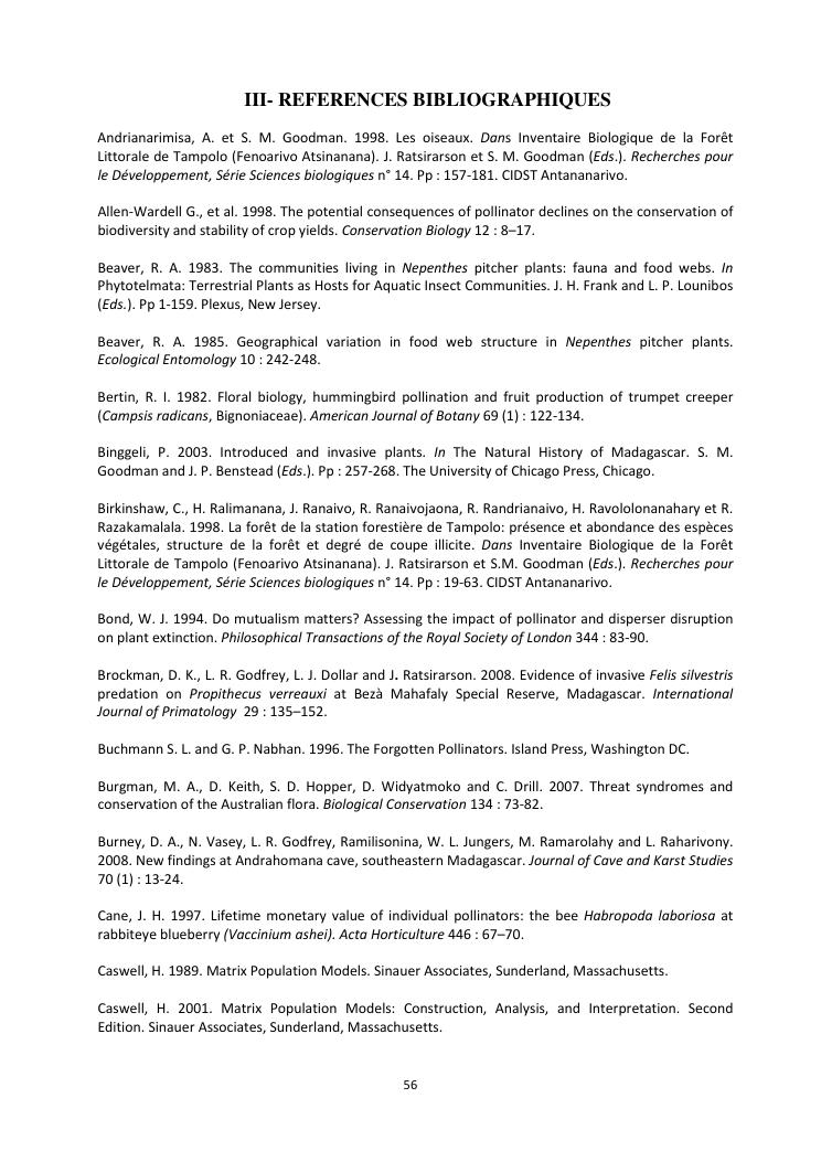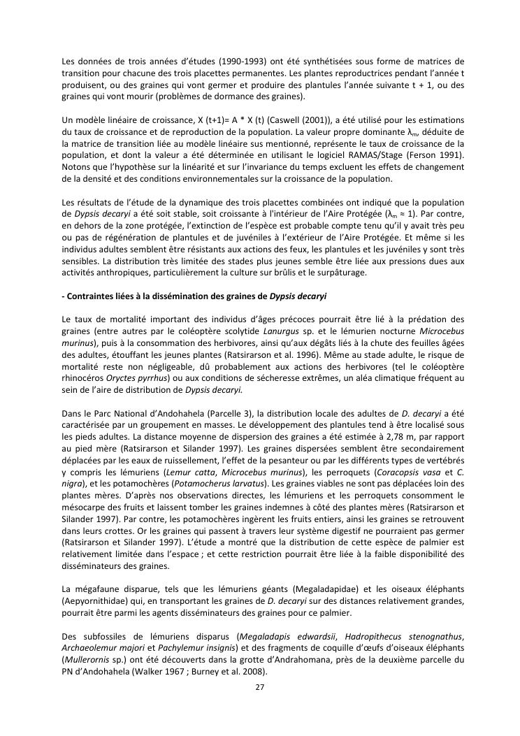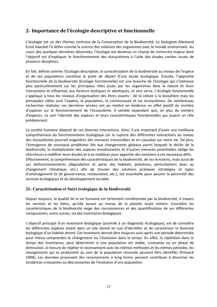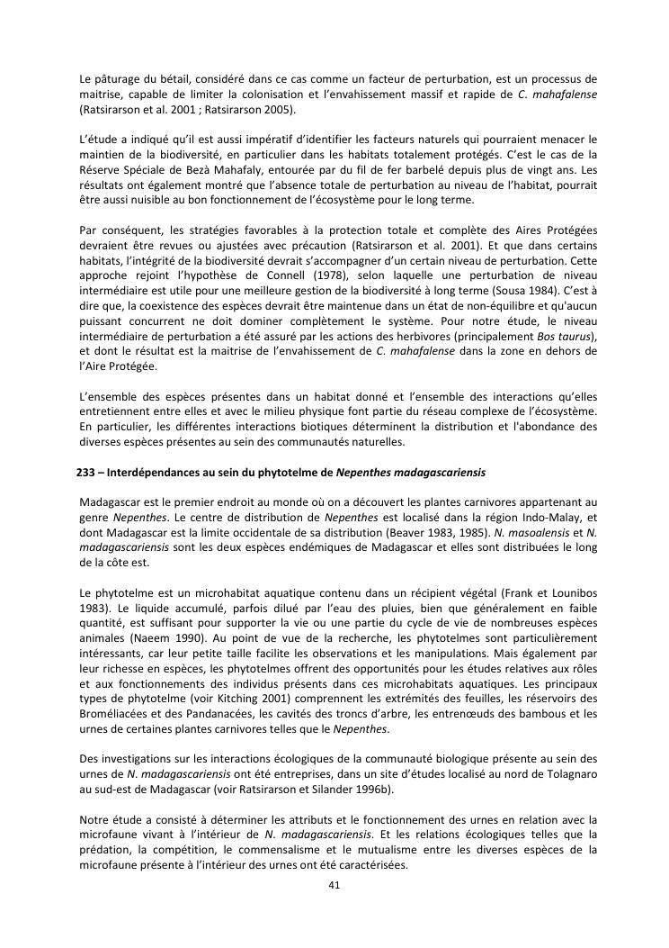 ecologie descriptive et fonctionnelle : outils essentiels pour la conservation de la biodiversite caracterisation des especes, suivi de la population et etude des interdependances au sein de la communaute naturelle a madagascar. document 2 : synthèse des travaux de recherche