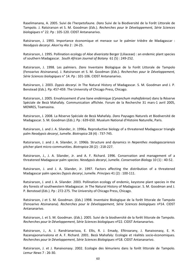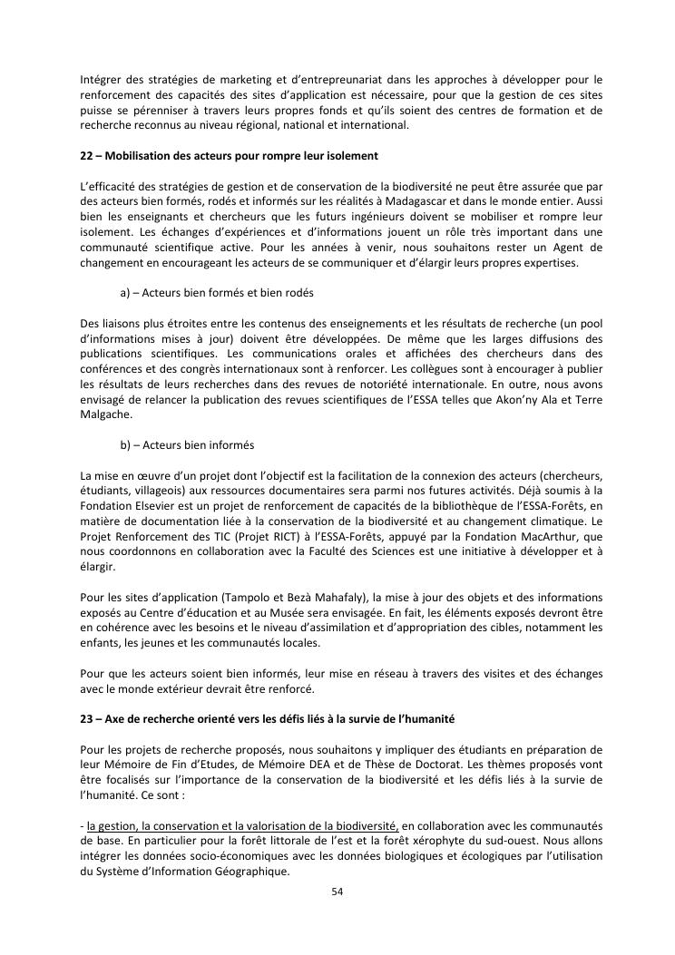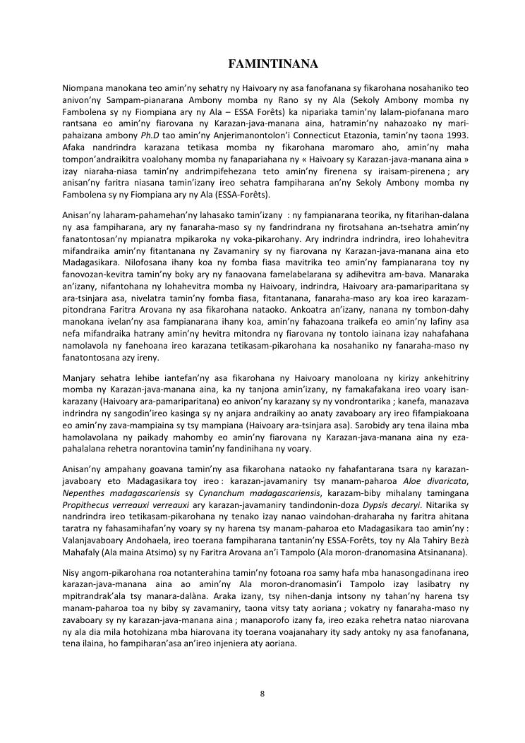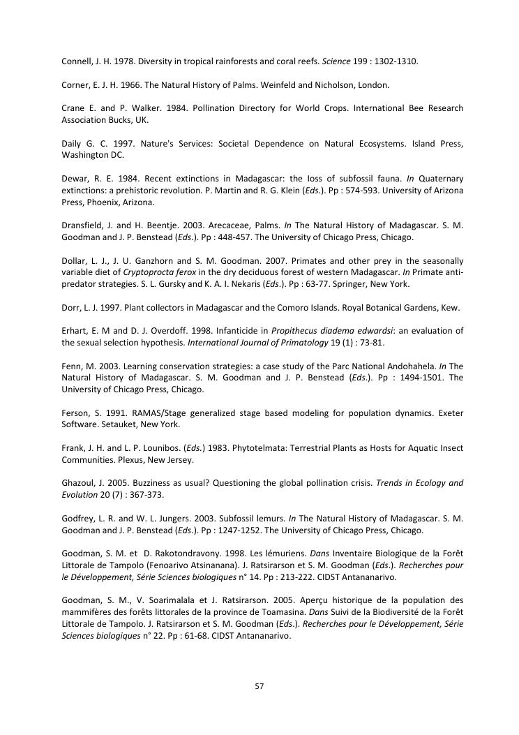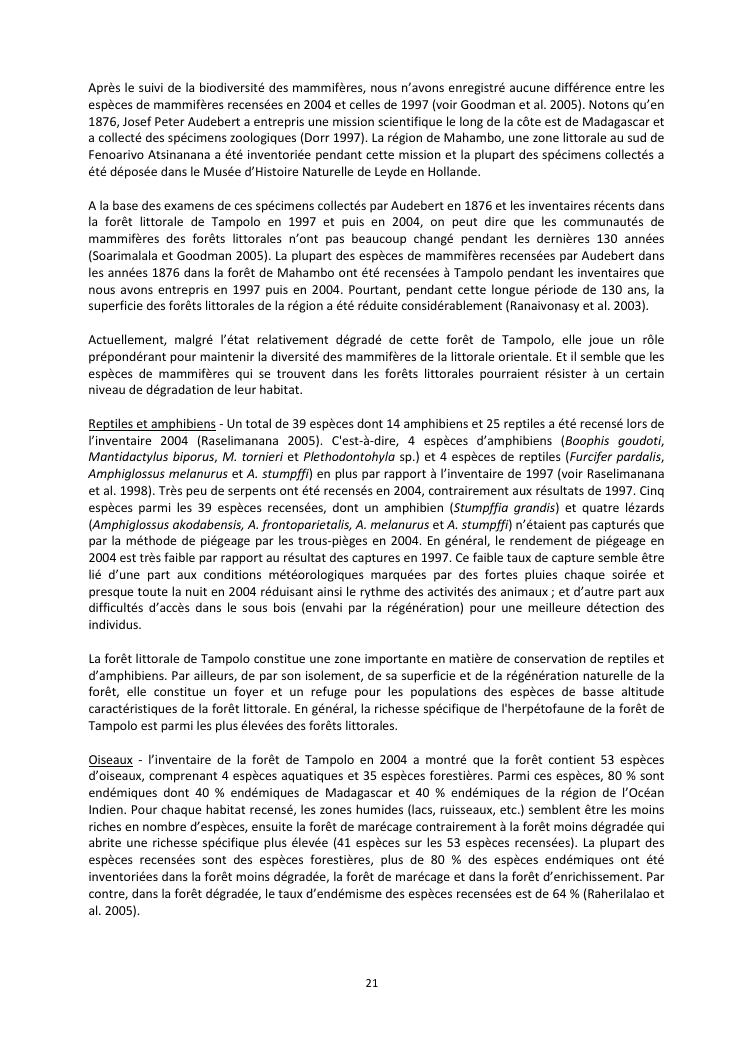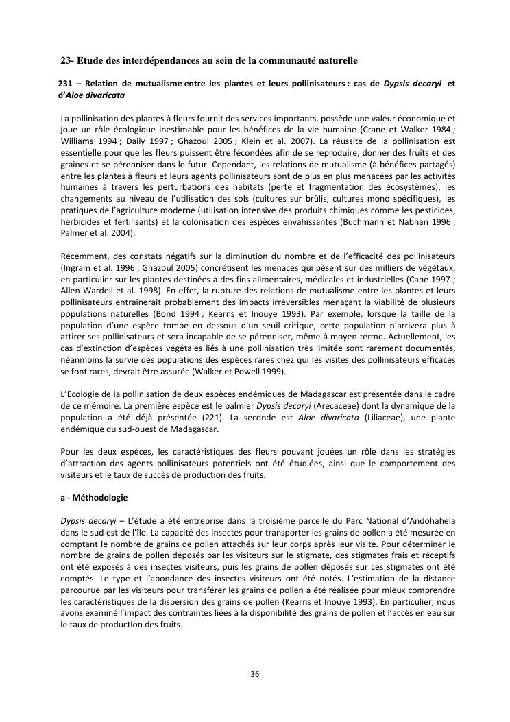 ecologie descriptive et fonctionnelle : outils essentiels pour la conservation de la biodiversite caracterisation des especes, suivi de la population et etude des interdependances au sein de la communaute naturelle a madagascar. document 2 : synthèse des travaux de recherche