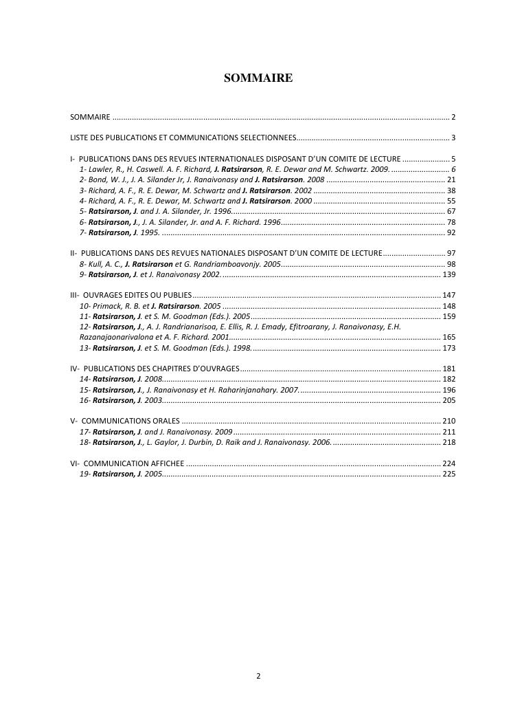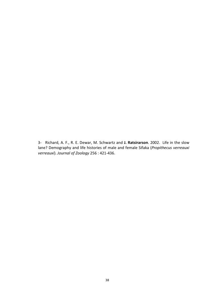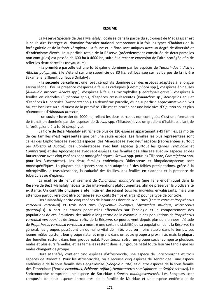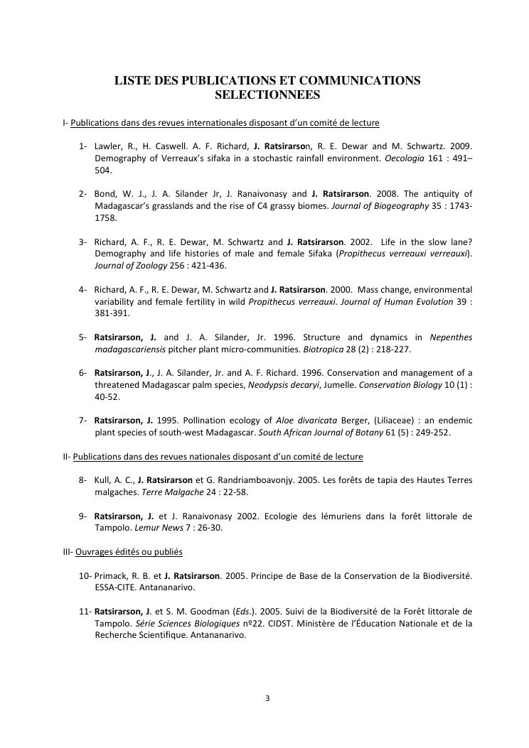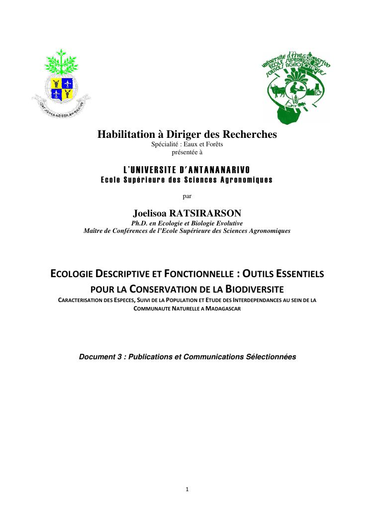 ecologie descriptive et fonctionnelle : outils essentiels pour la conservation de la biodiversite caracterisation des especes, suivi de la population et etude des interdependances au sein de la communaute naturelle a madagascar. document 3 : publications et communications sélectionnées