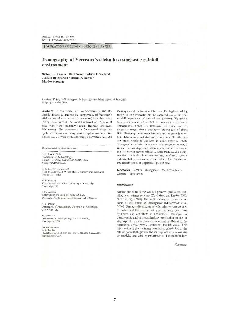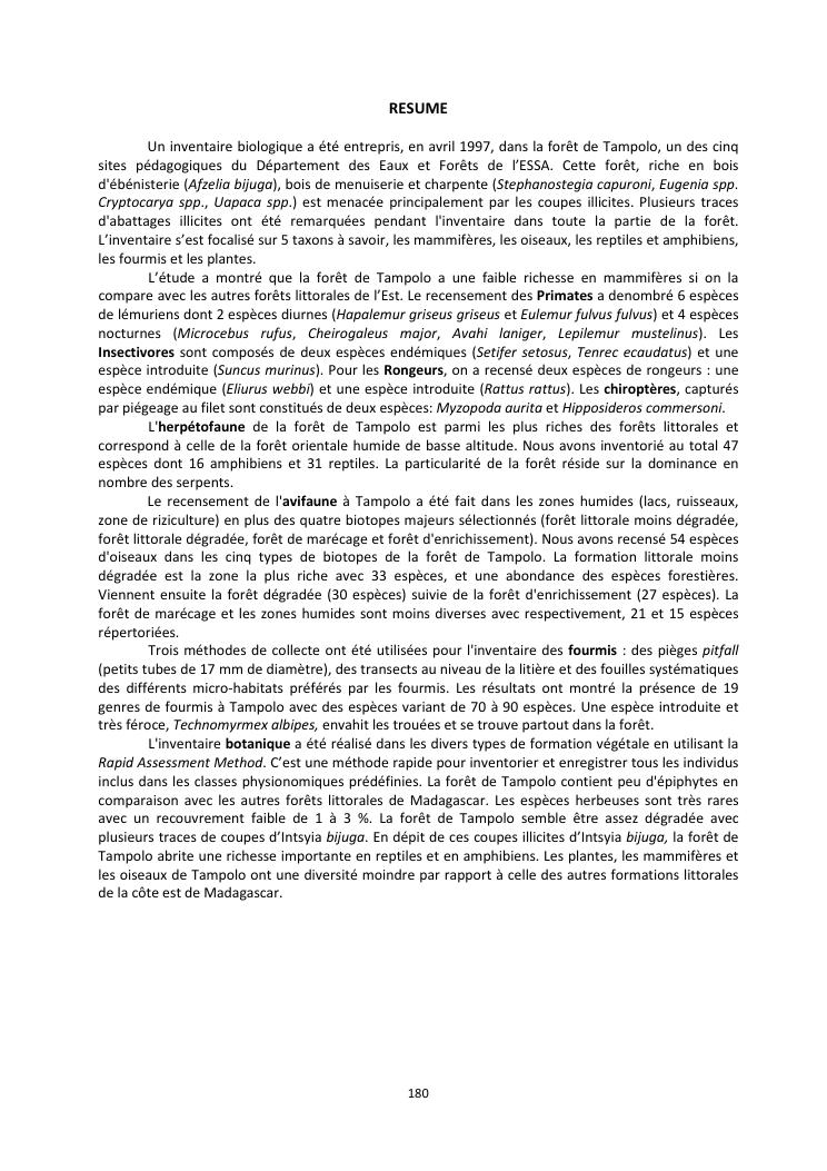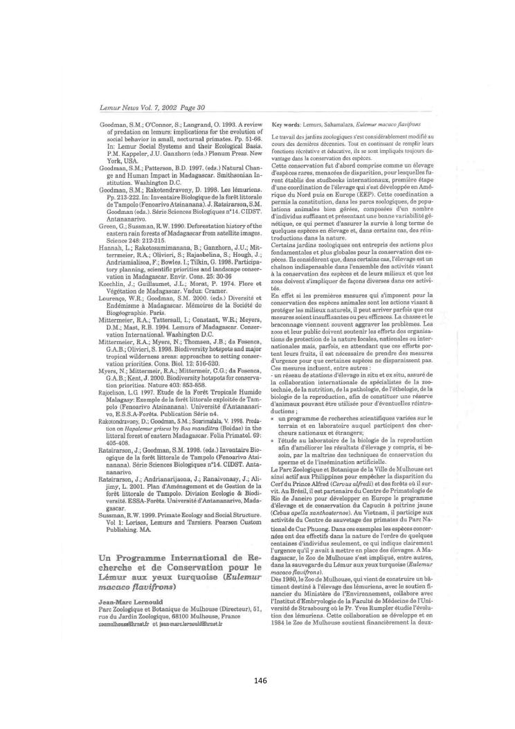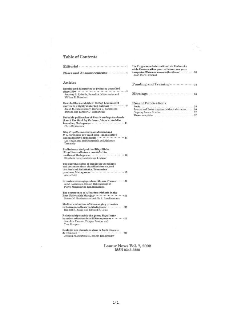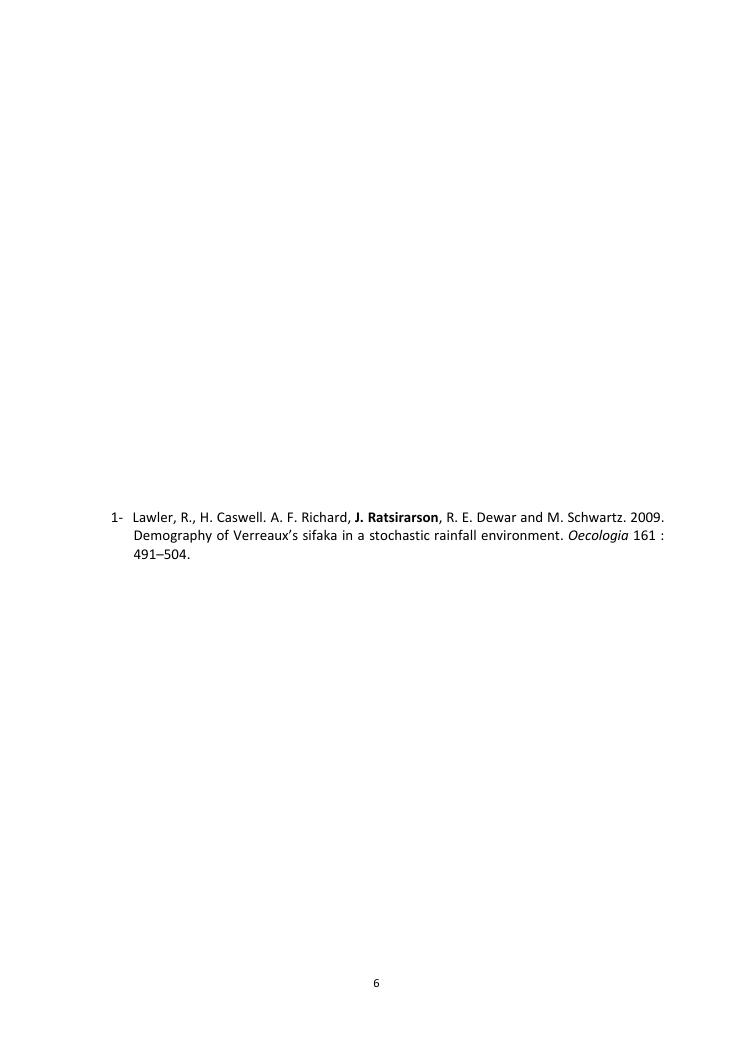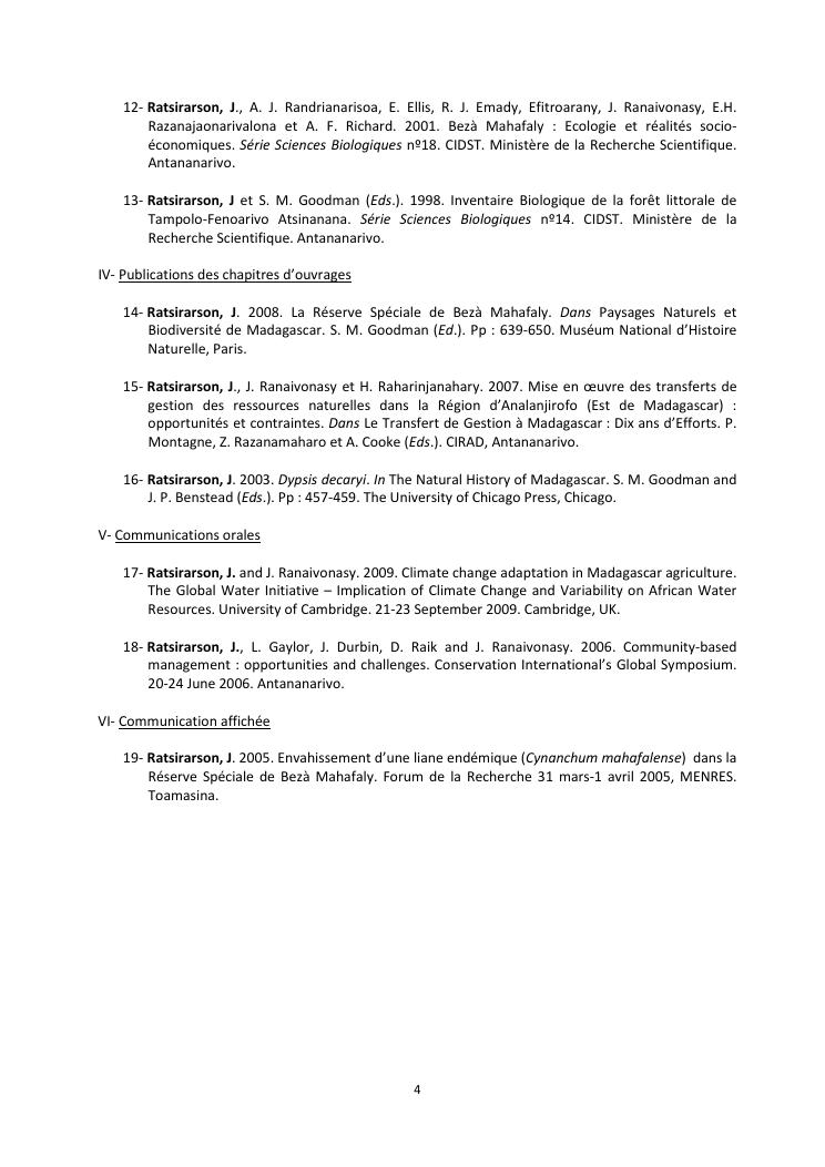 ecologie descriptive et fonctionnelle : outils essentiels pour la conservation de la biodiversite caracterisation des especes, suivi de la population et etude des interdependances au sein de la communaute naturelle a madagascar. document 3 : publications et communications sélectionnées
