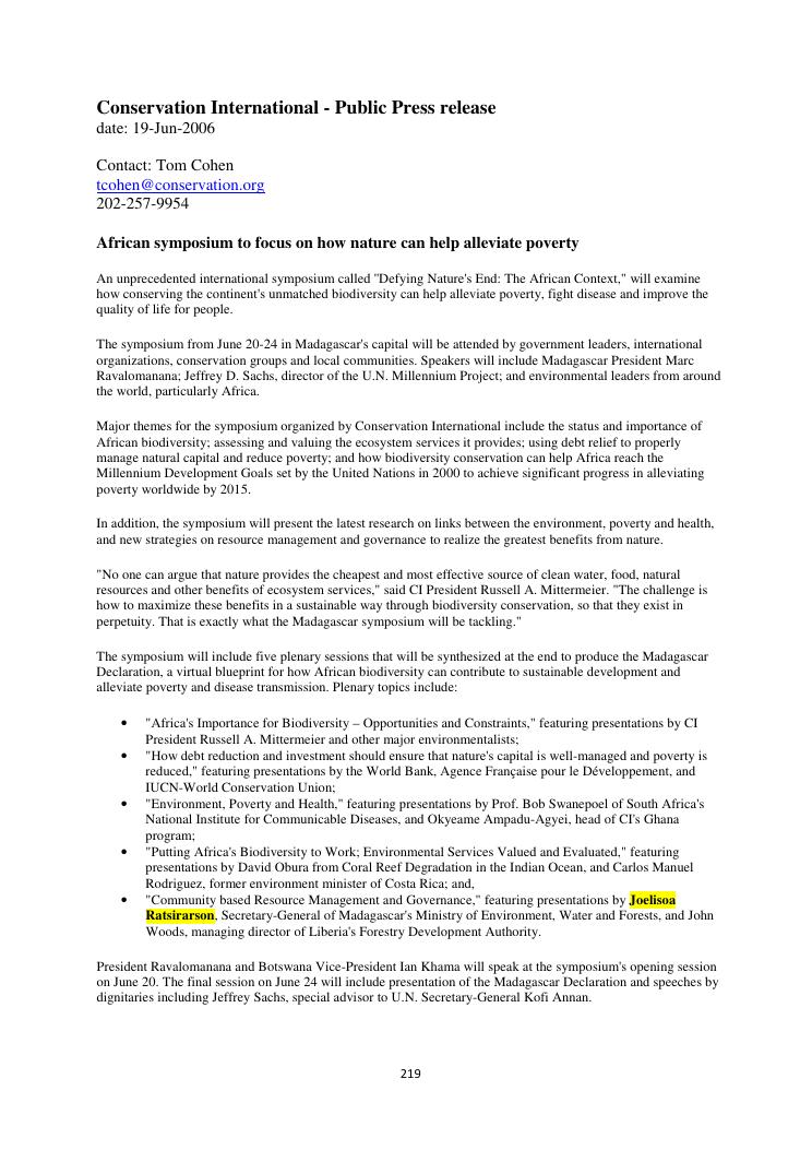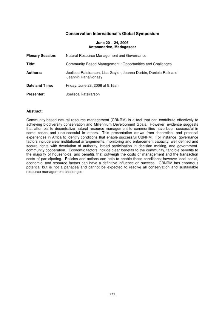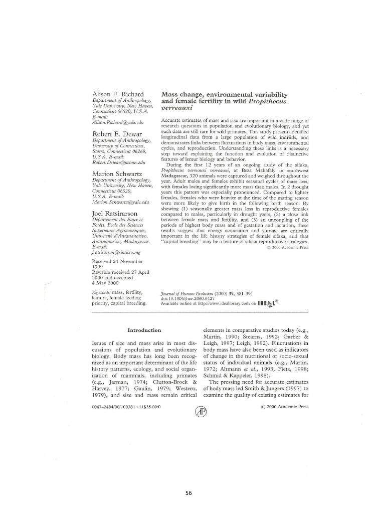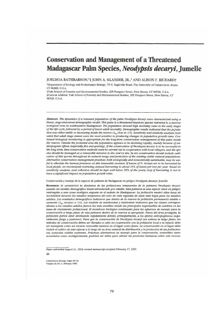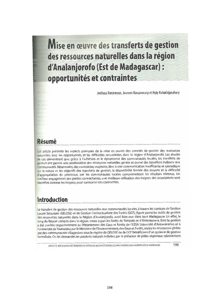ecologie descriptive et fonctionnelle : outils essentiels pour la conservation de la biodiversite caracterisation des especes, suivi de la population et etude des interdependances au sein de la communaute naturelle a madagascar. document 3 : publications et communications sélectionnées