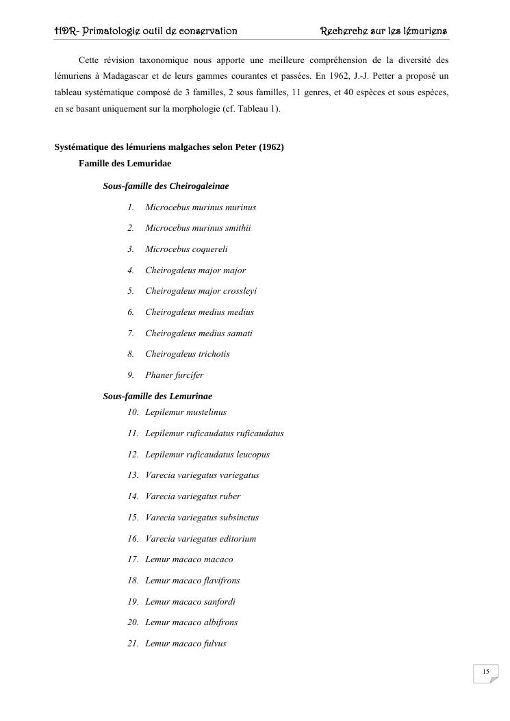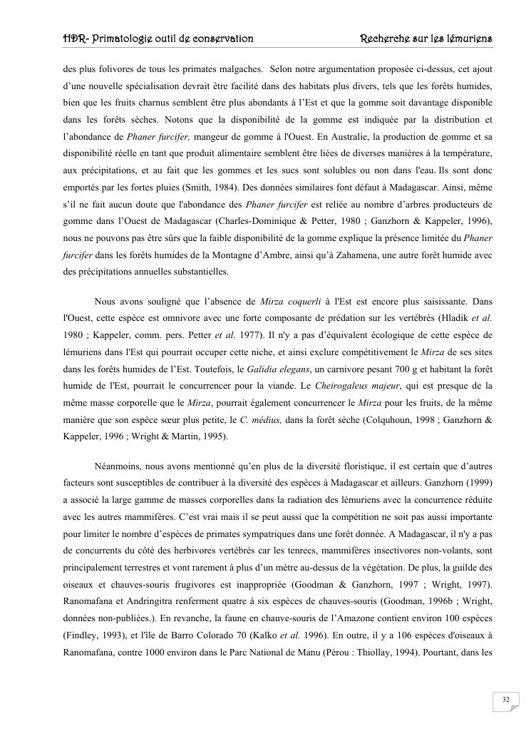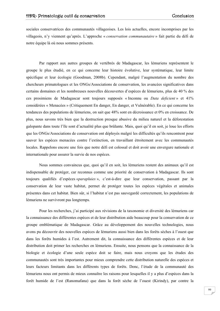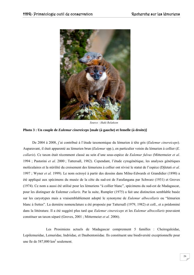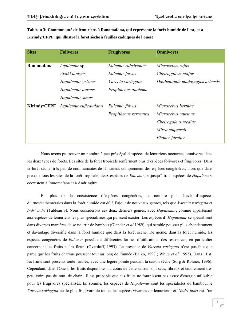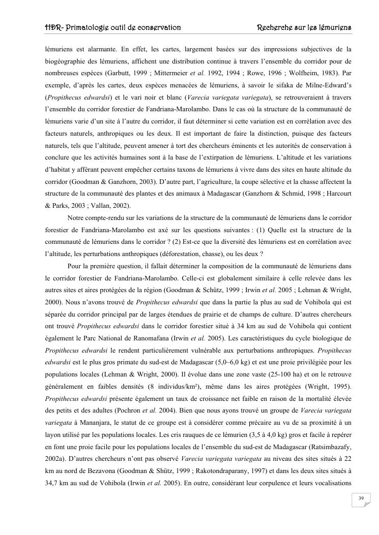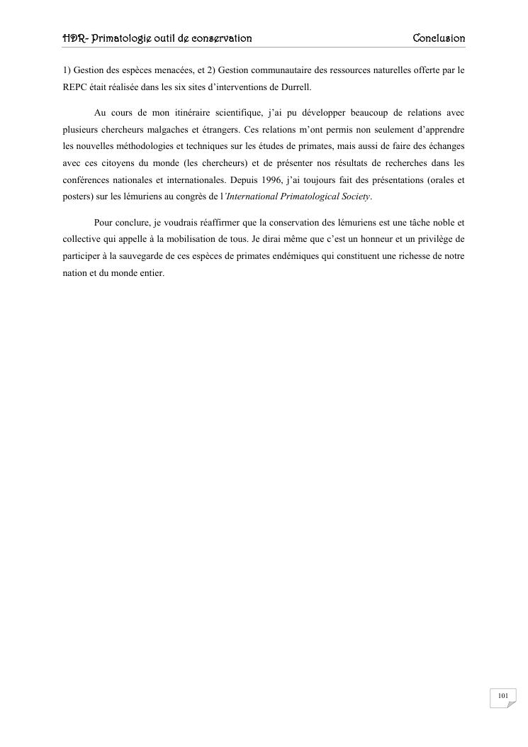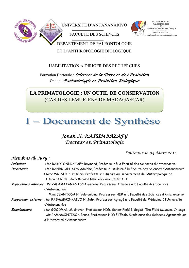 la primatologie : un outil de conservation (cas des lemuriens de madagascar). i document de synthèse
