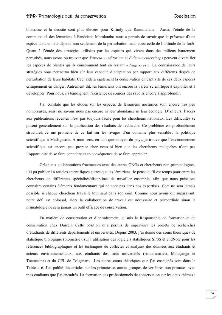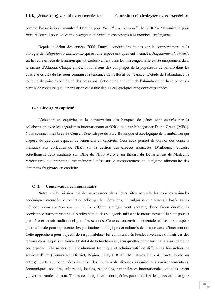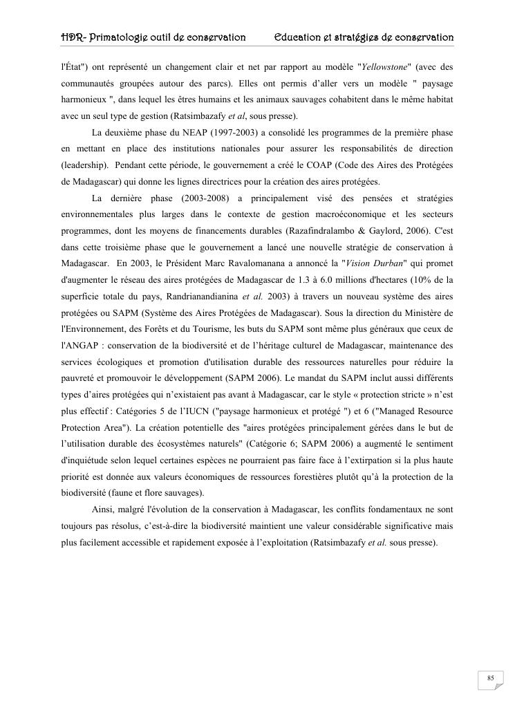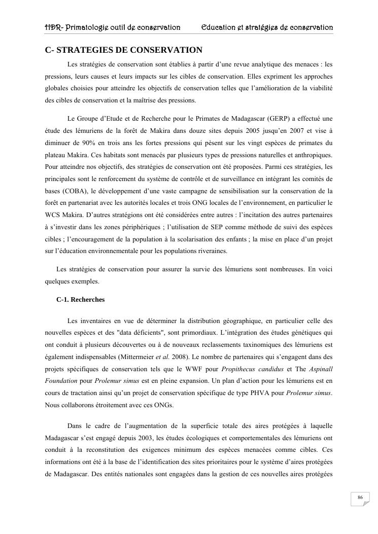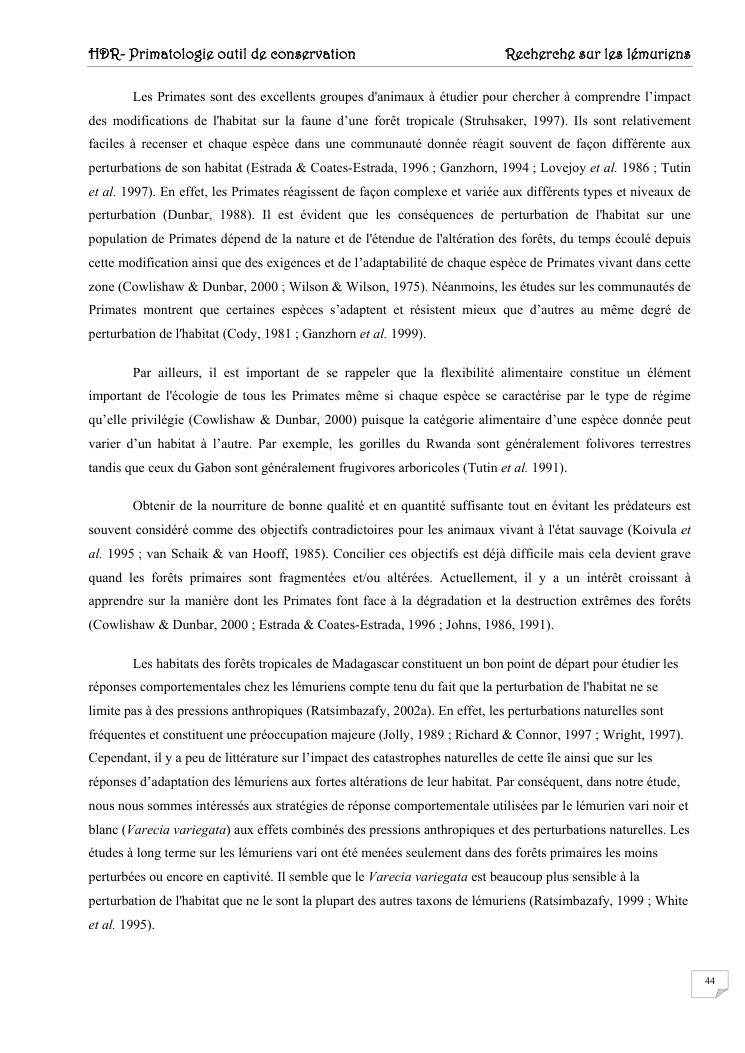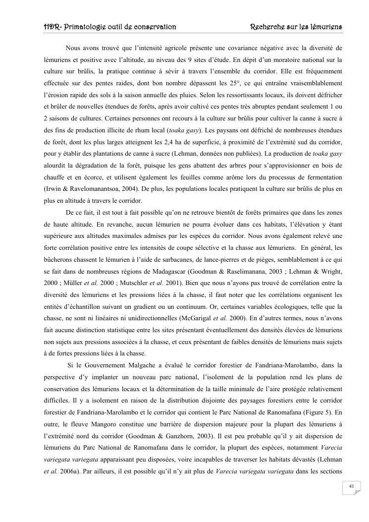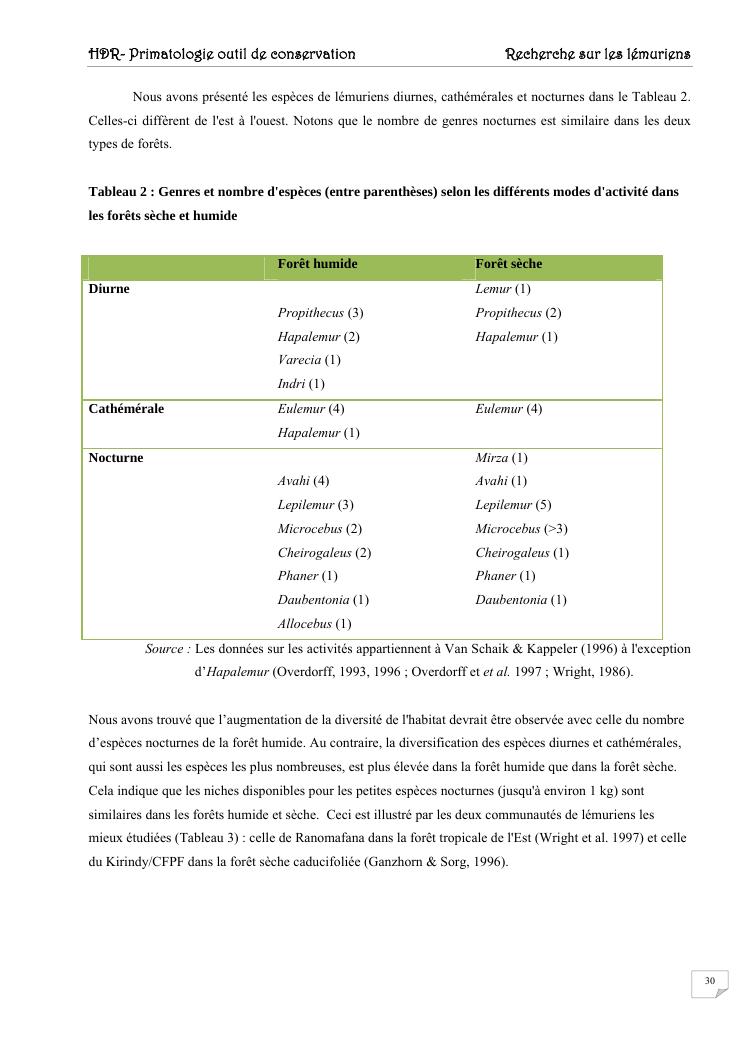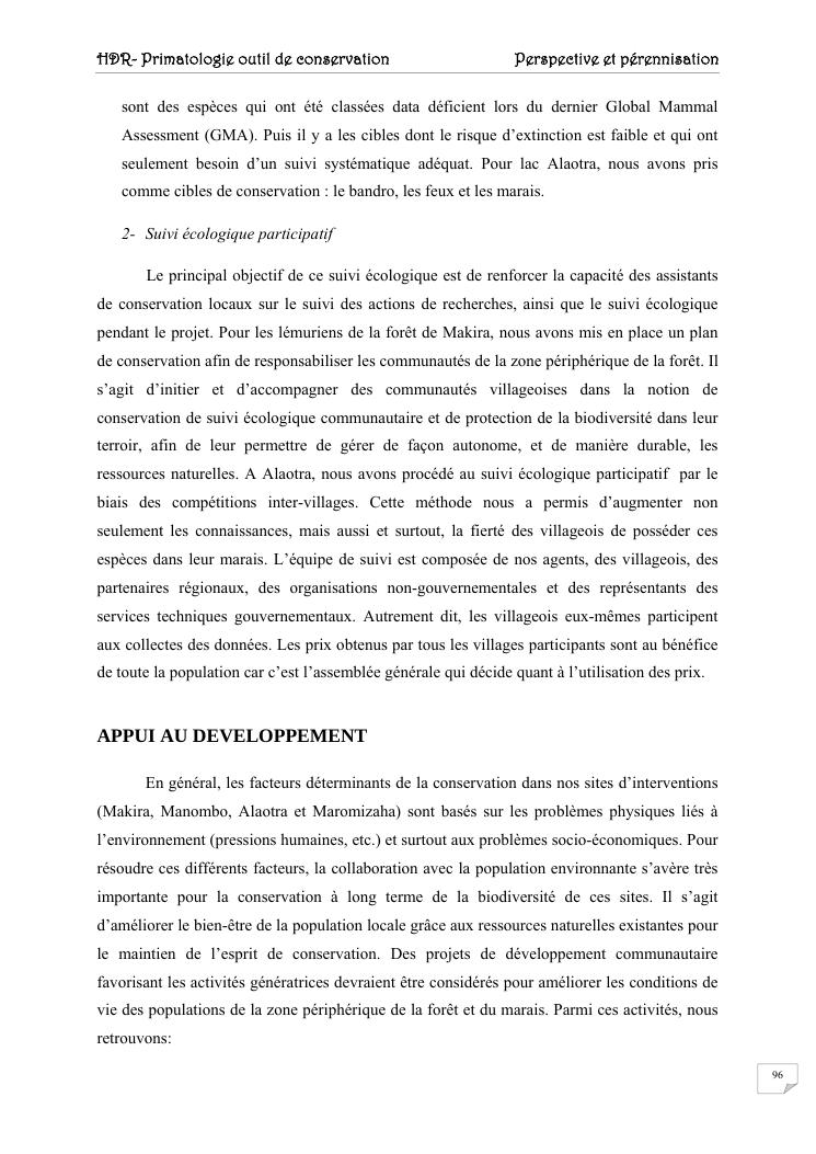 la primatologie : un outil de conservation (cas des lemuriens de madagascar). i document de synthèse