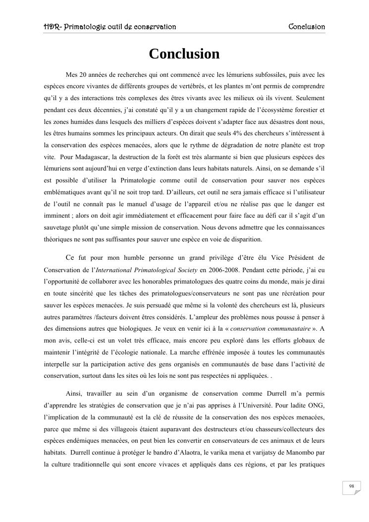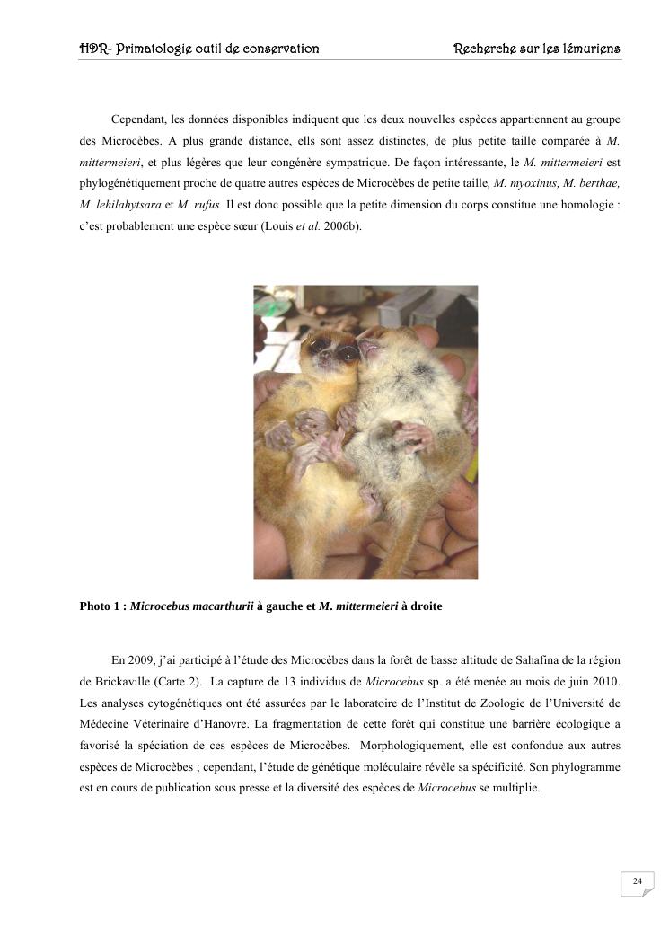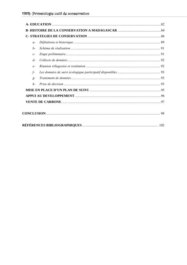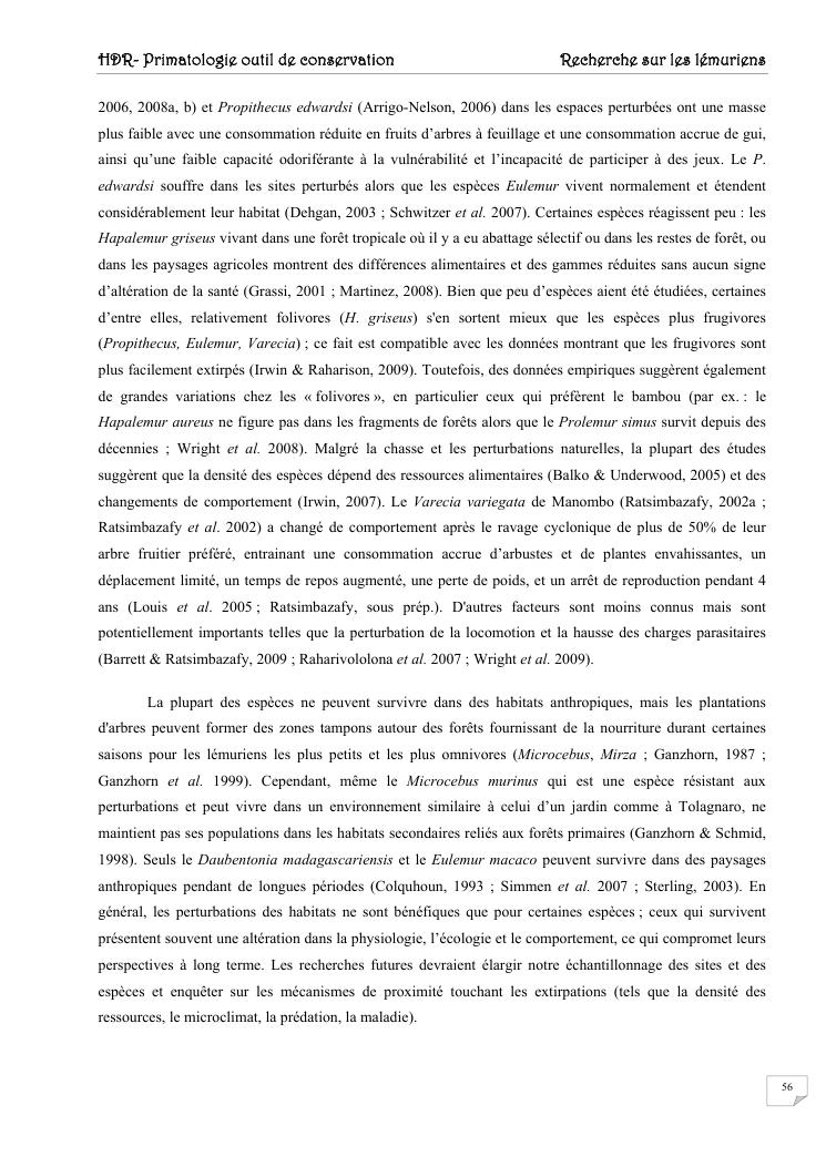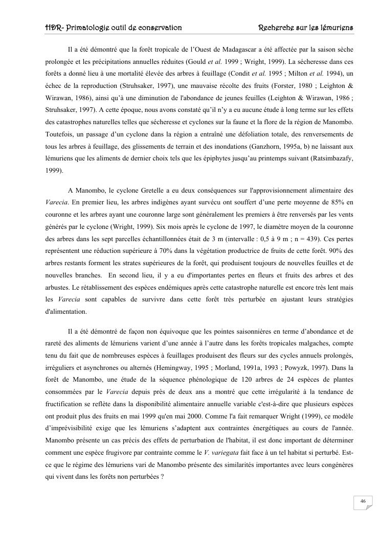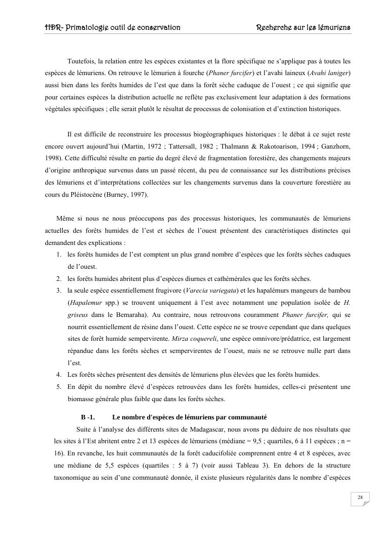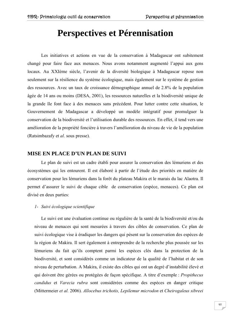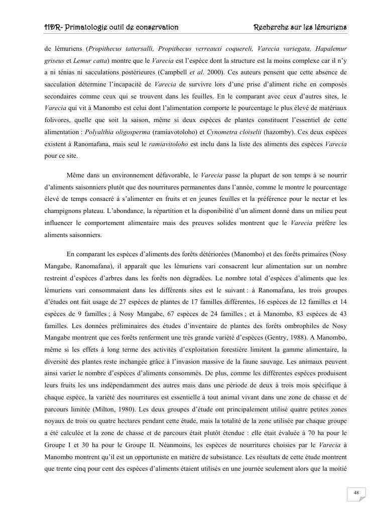 la primatologie : un outil de conservation (cas des lemuriens de madagascar). i document de synthèse