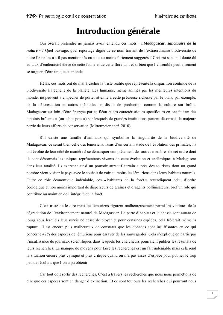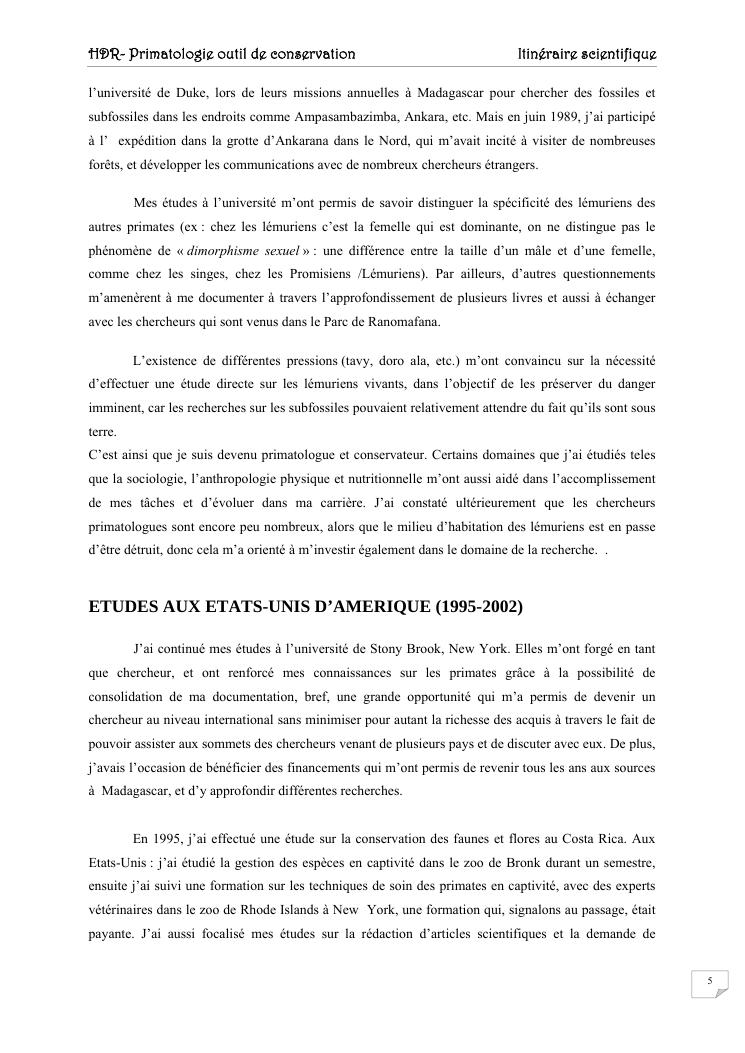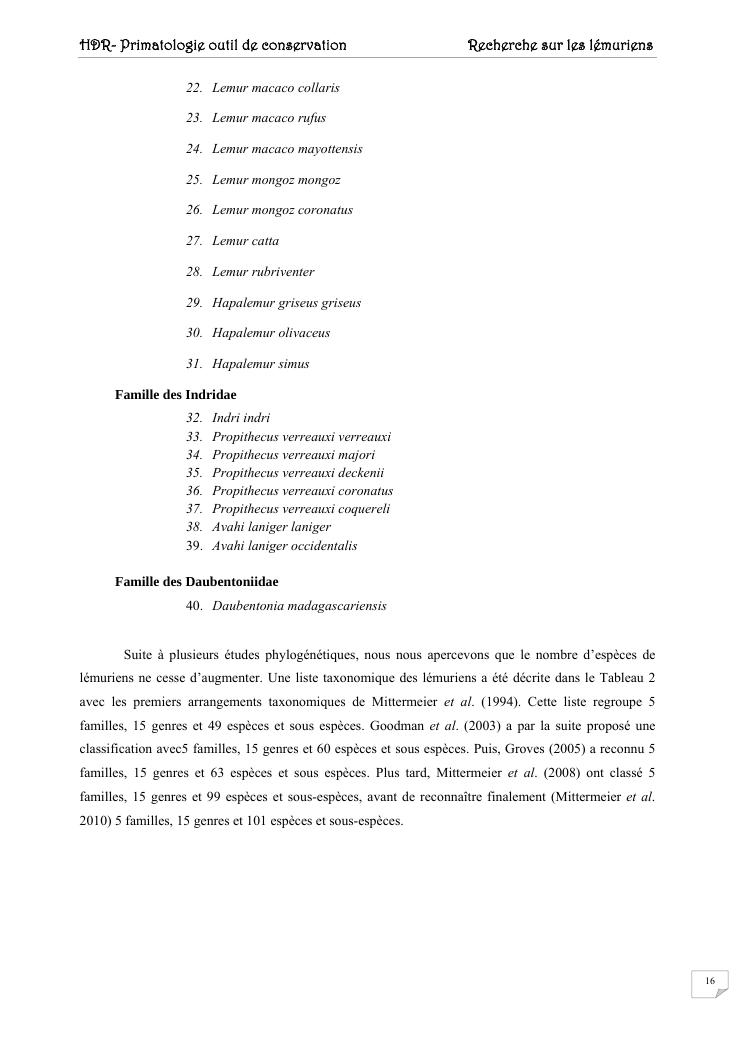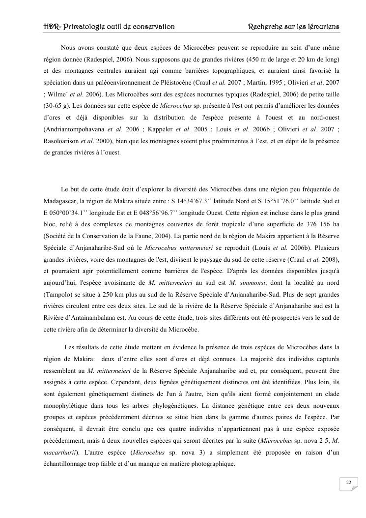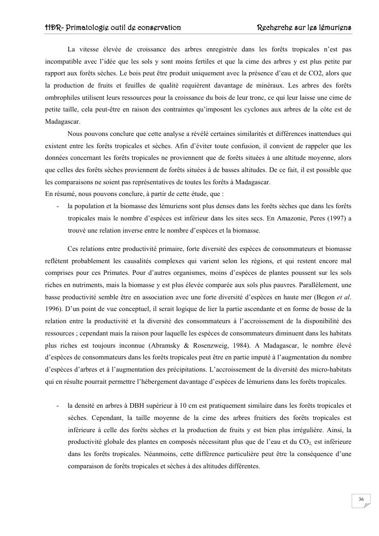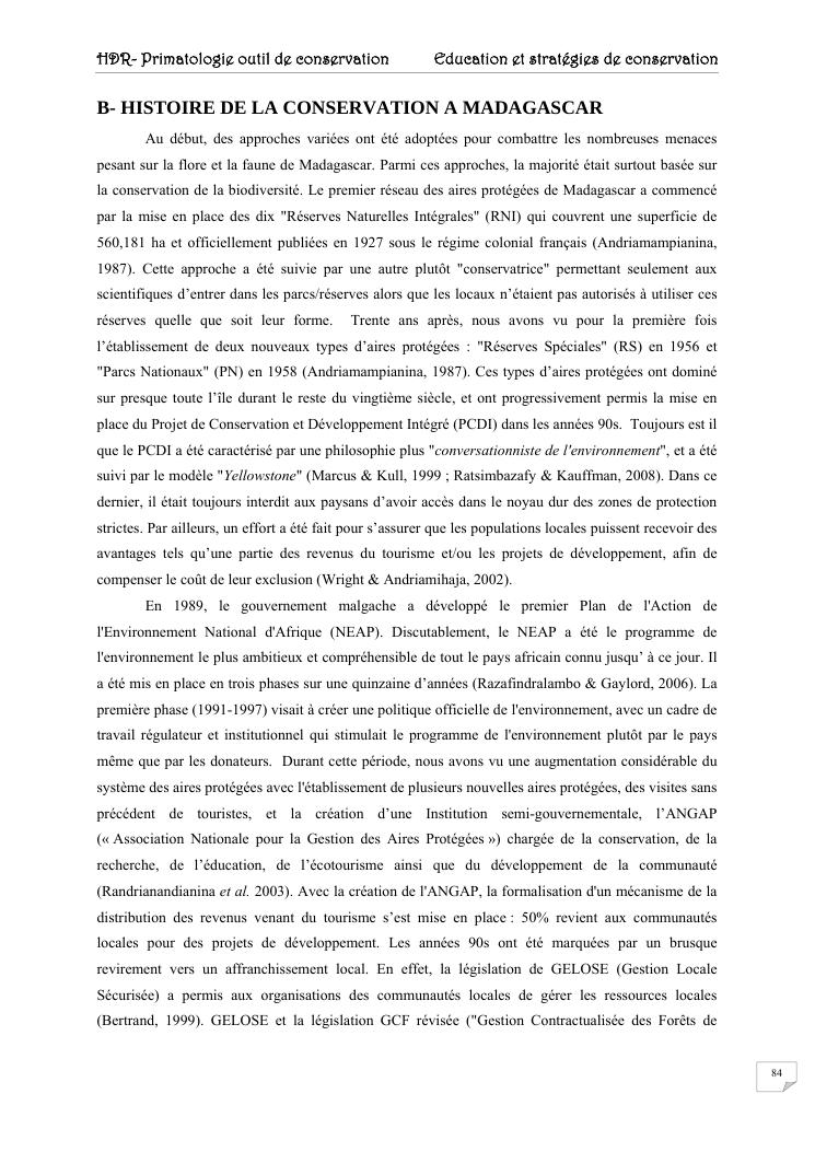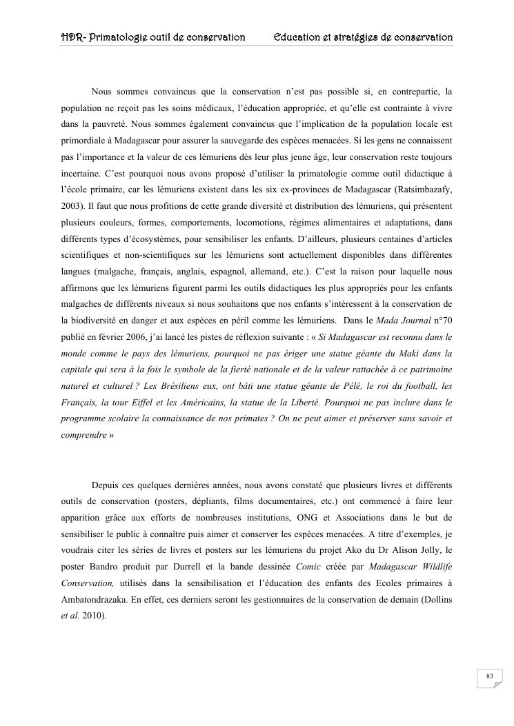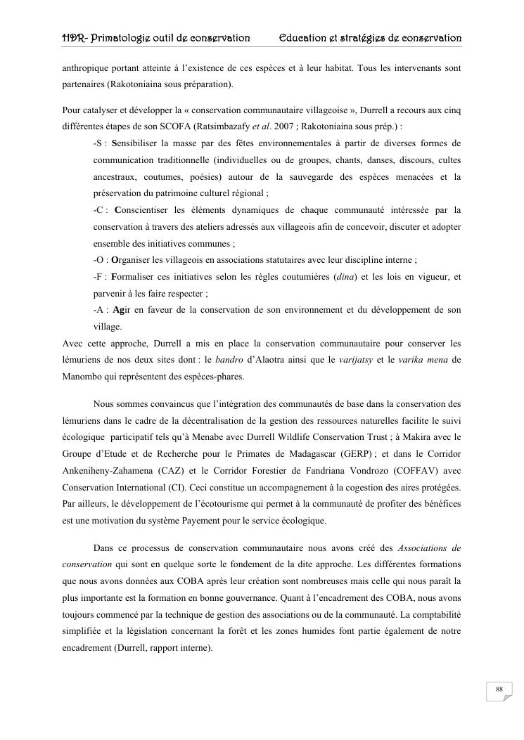 la primatologie : un outil de conservation (cas des lemuriens de madagascar). i document de synthèse