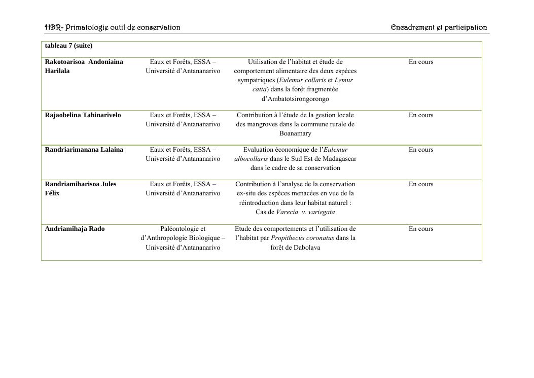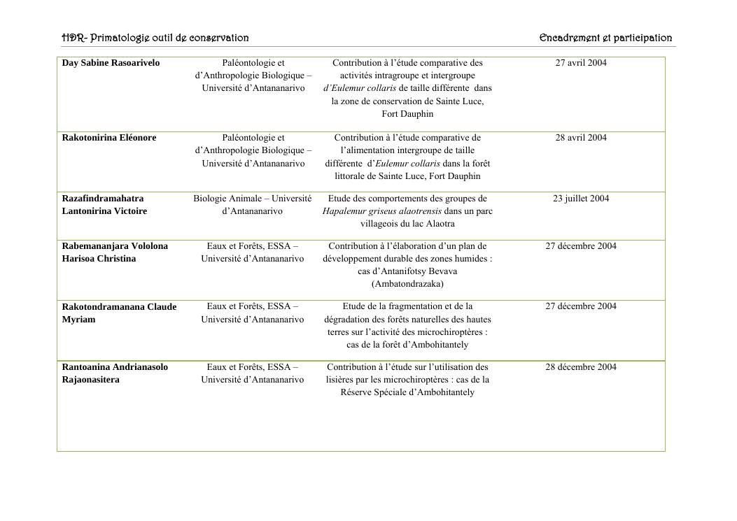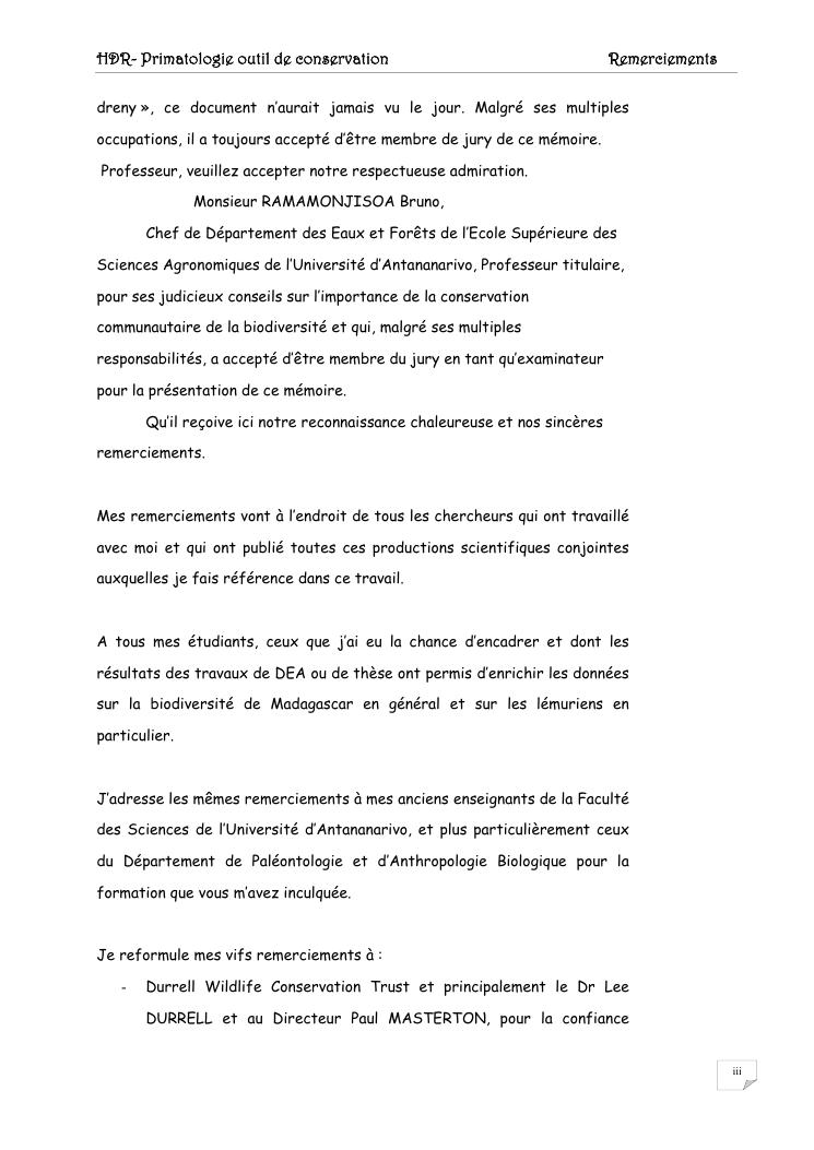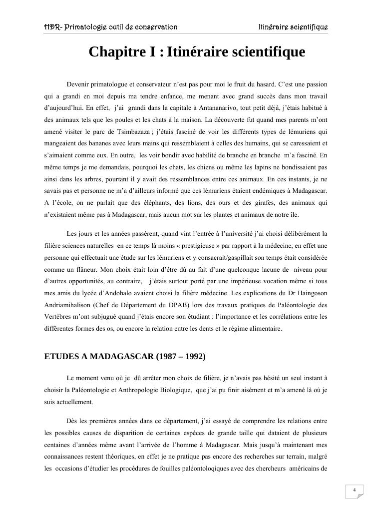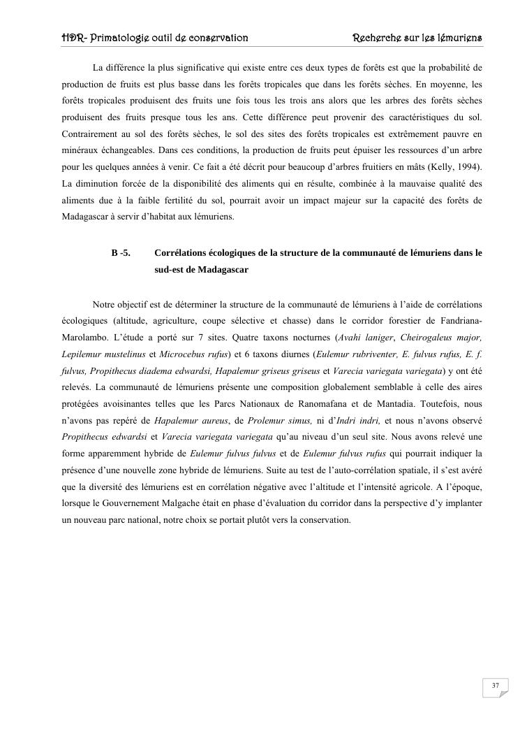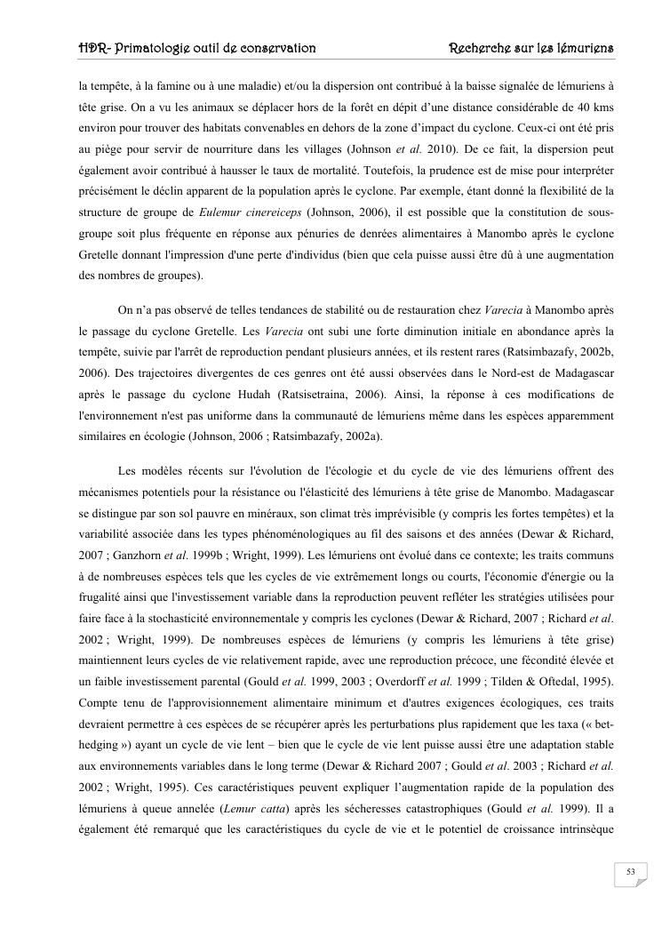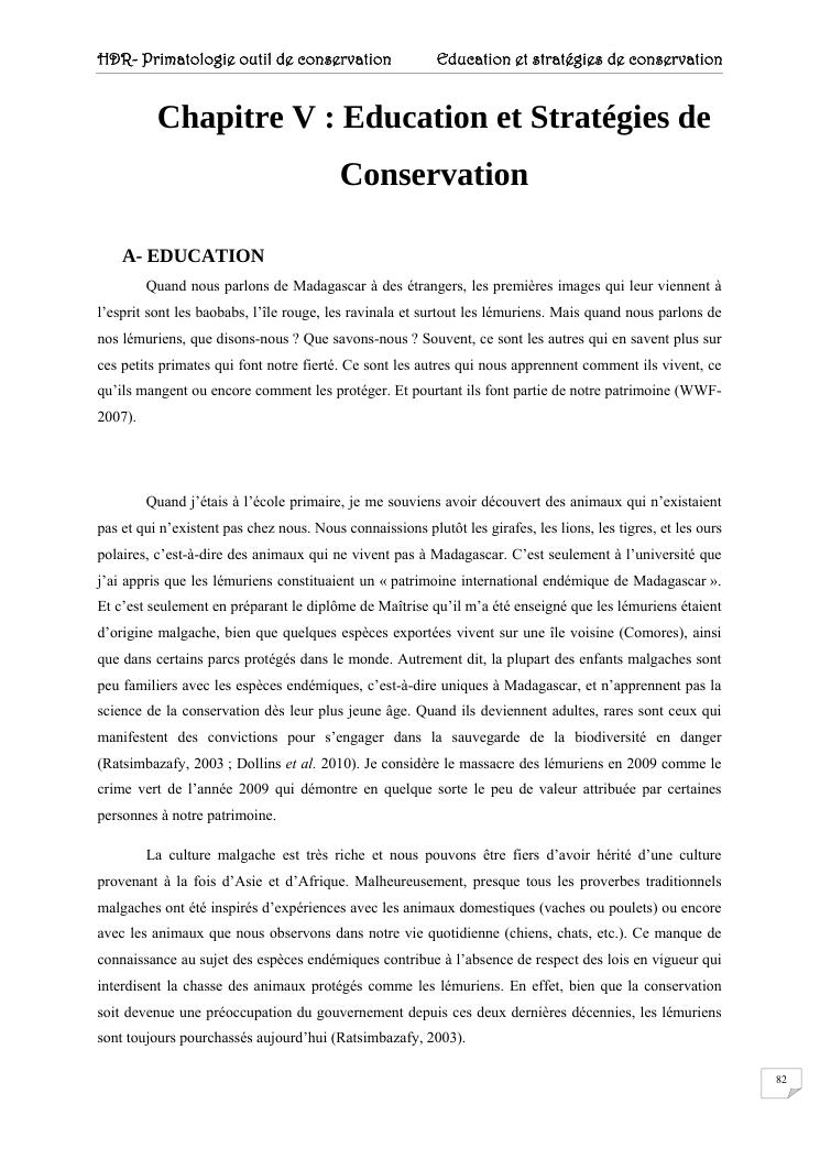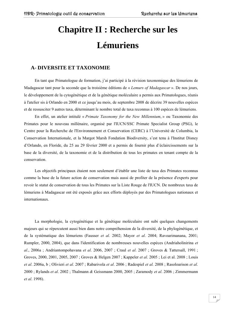 la primatologie : un outil de conservation (cas des lemuriens de madagascar). i document de synthèse