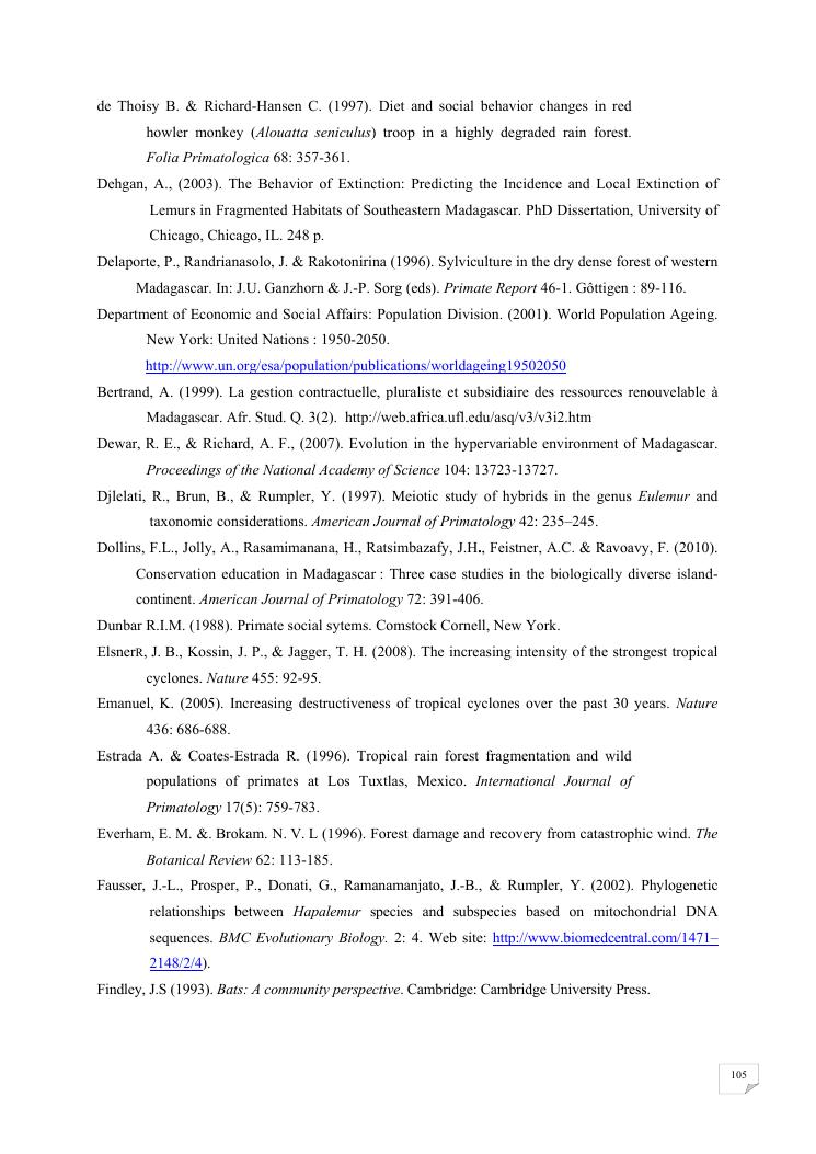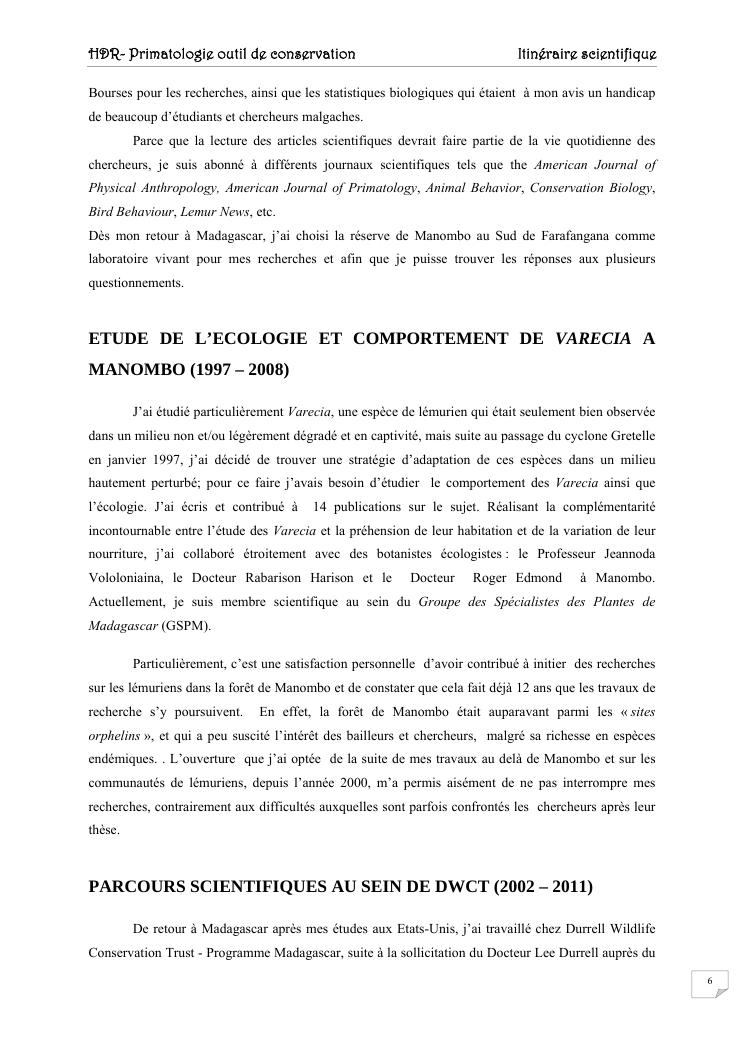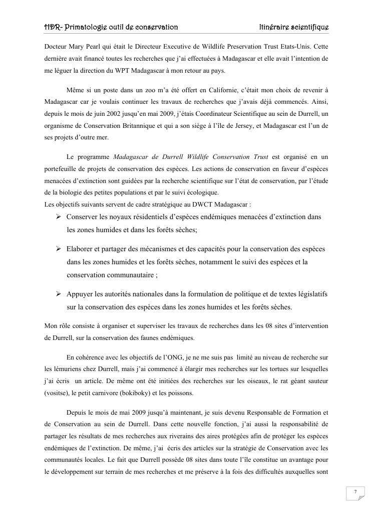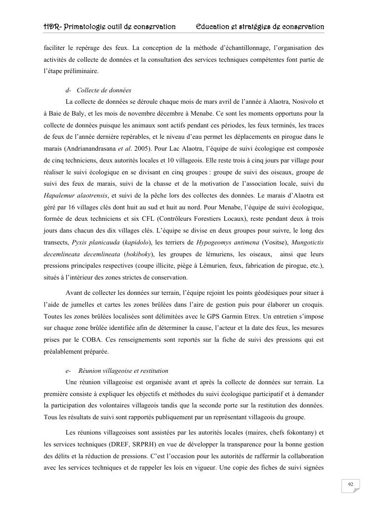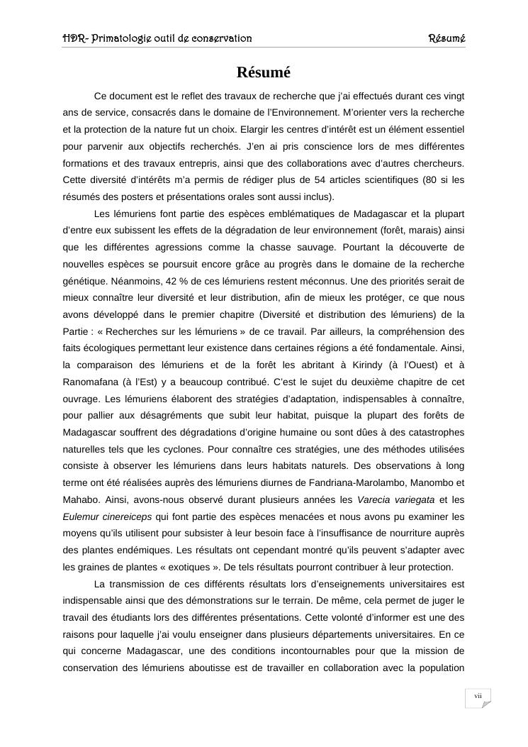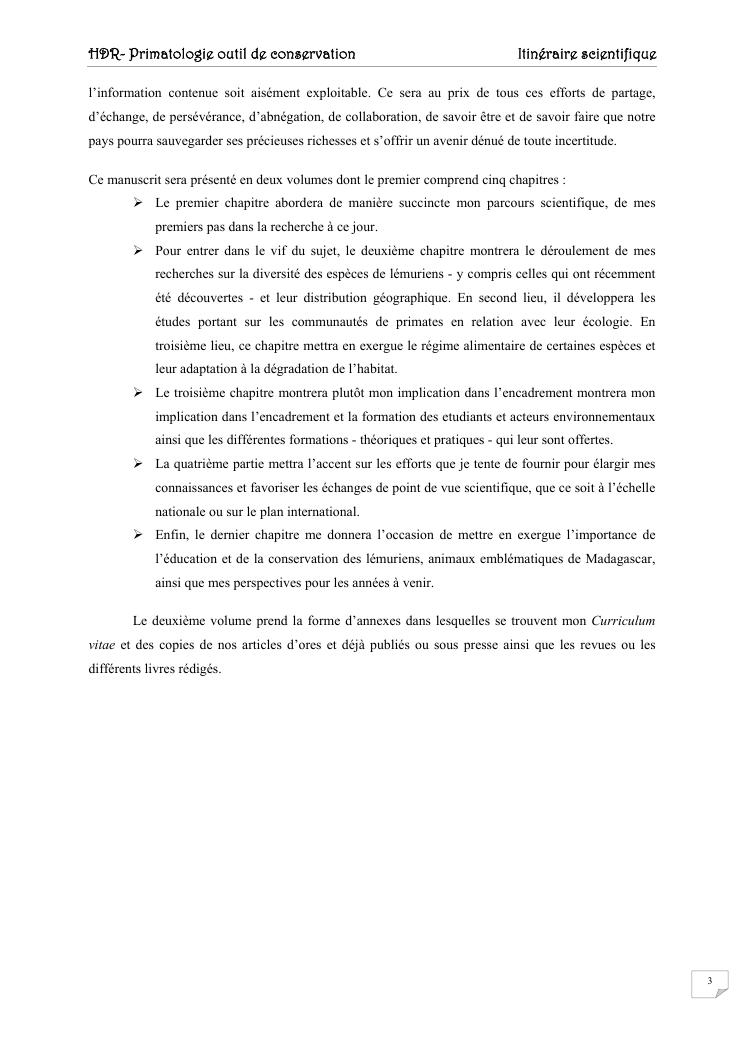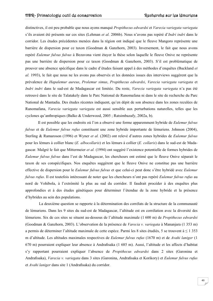 la primatologie : un outil de conservation (cas des lemuriens de madagascar). i document de synthèse