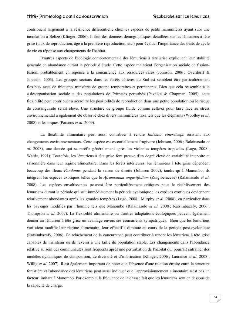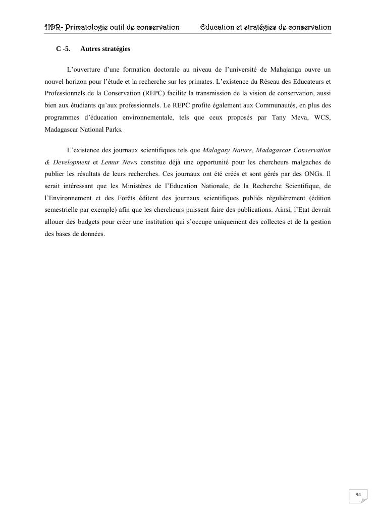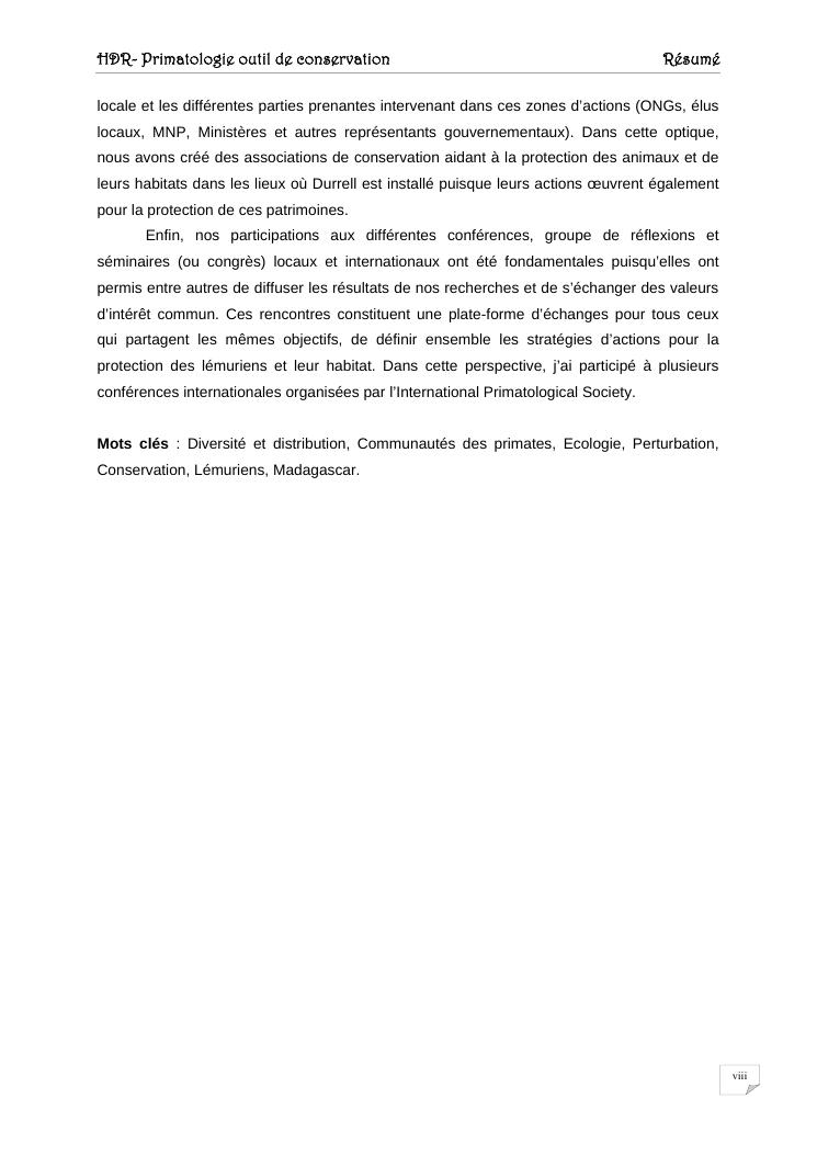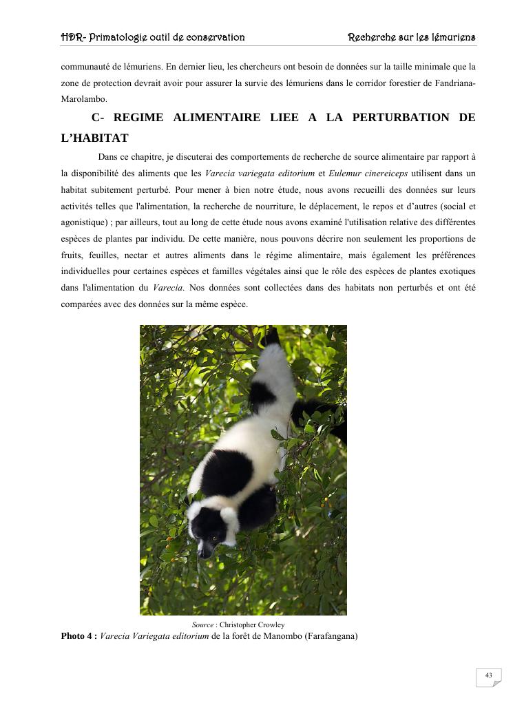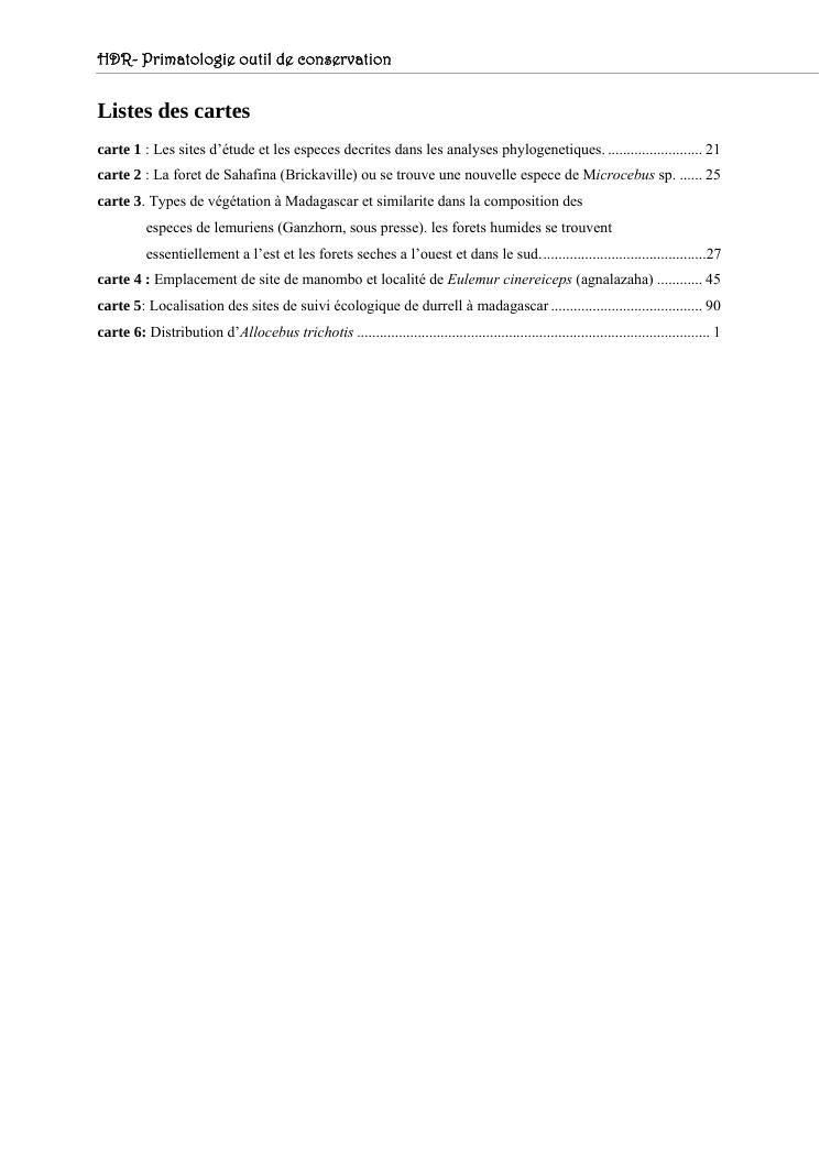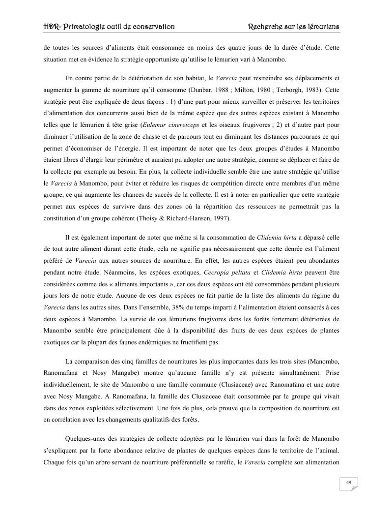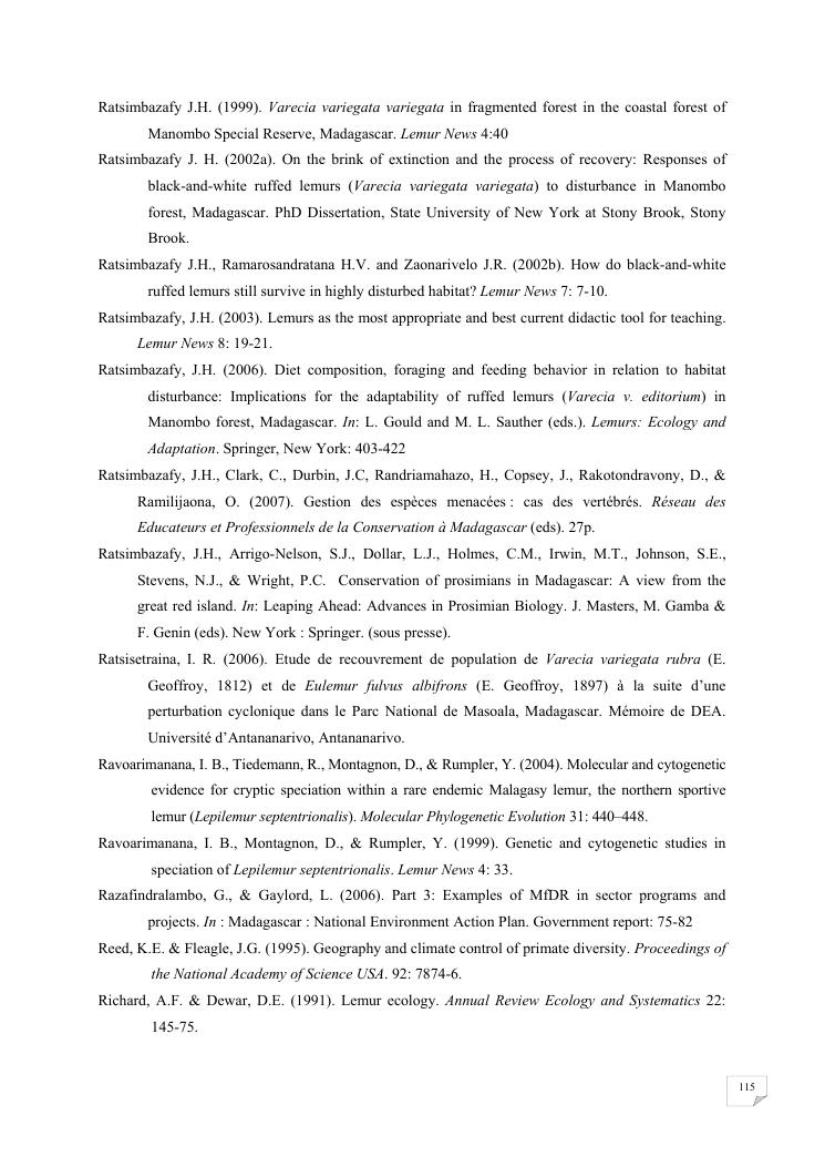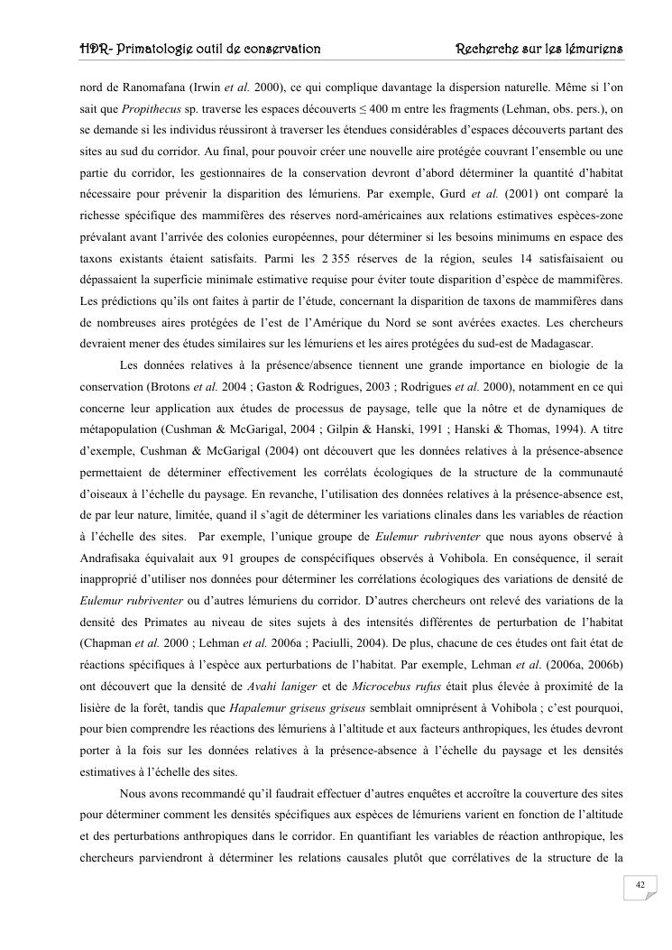 la primatologie : un outil de conservation (cas des lemuriens de madagascar). i document de synthèse