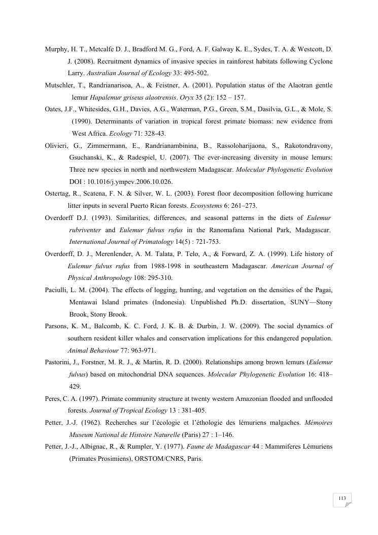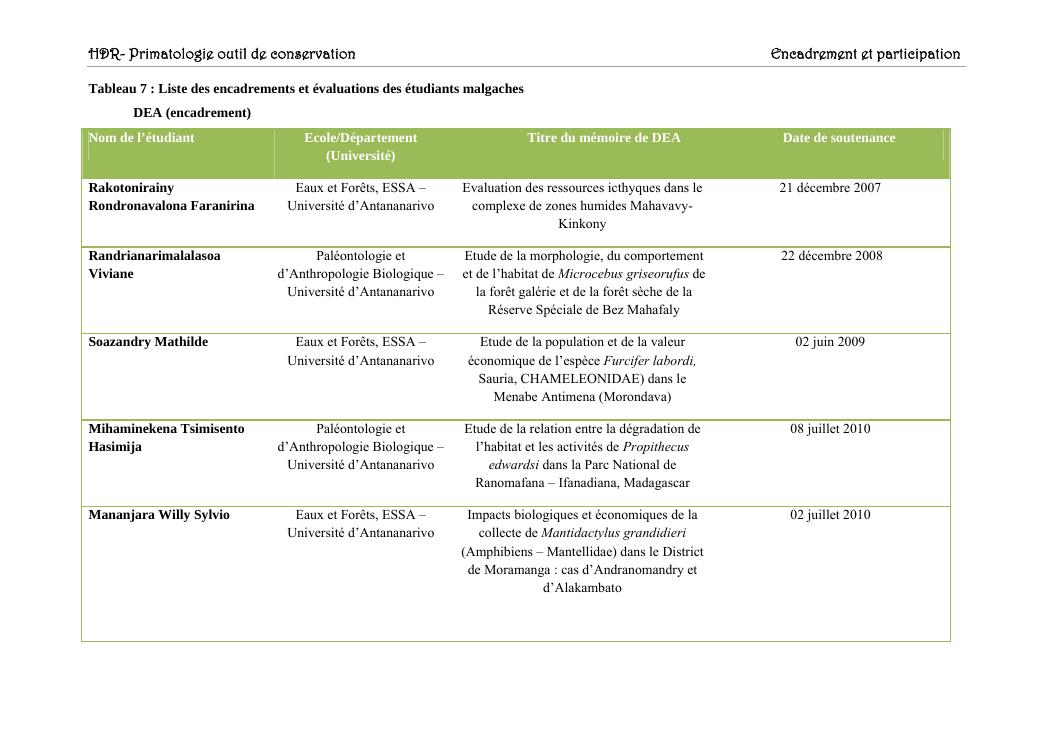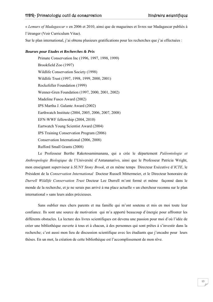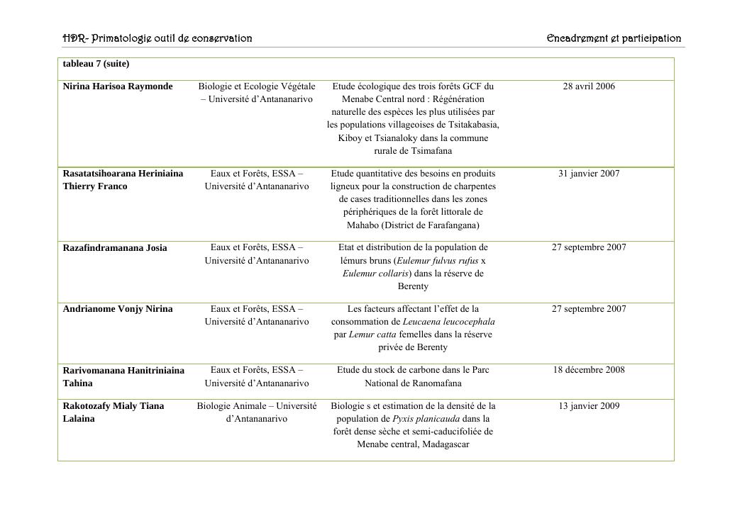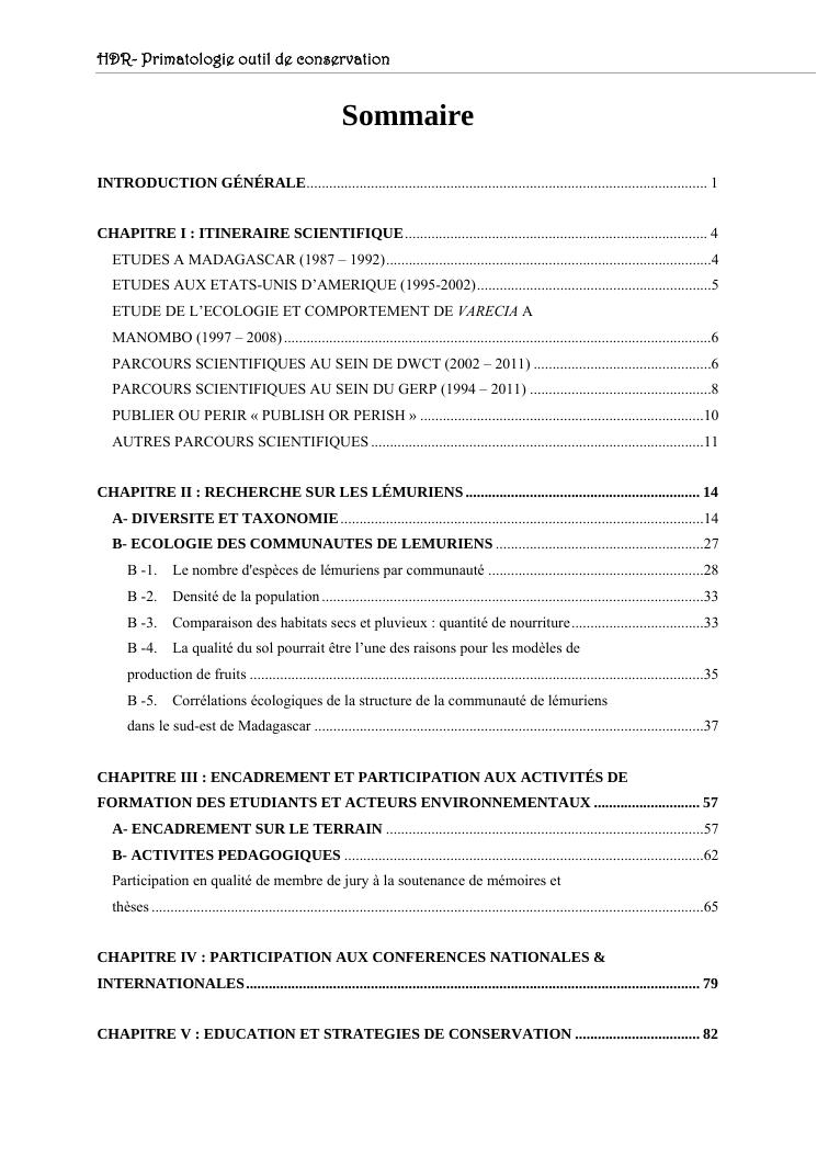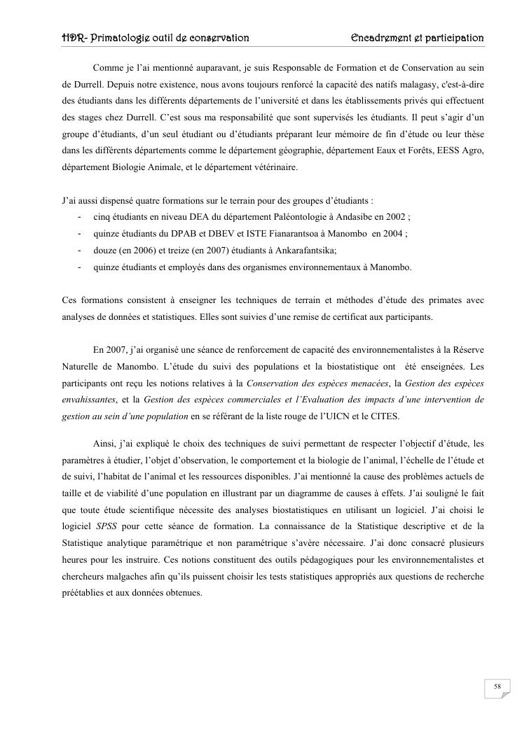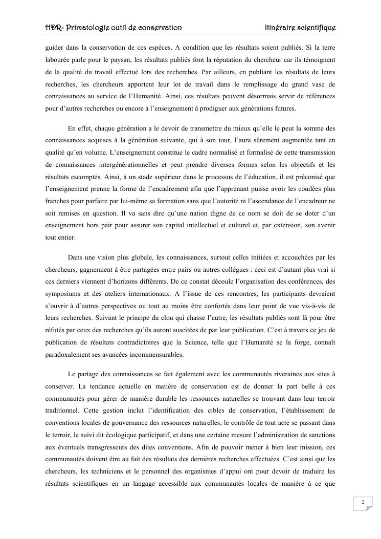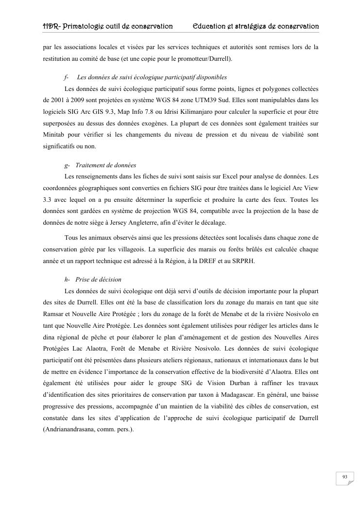 la primatologie : un outil de conservation (cas des lemuriens de madagascar). i document de synthèse