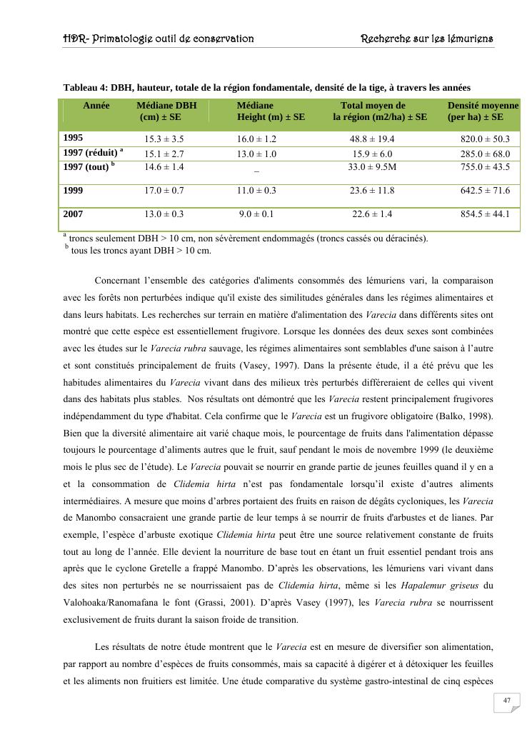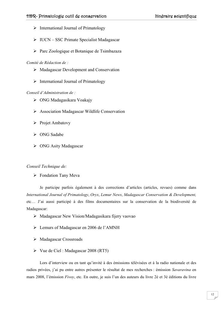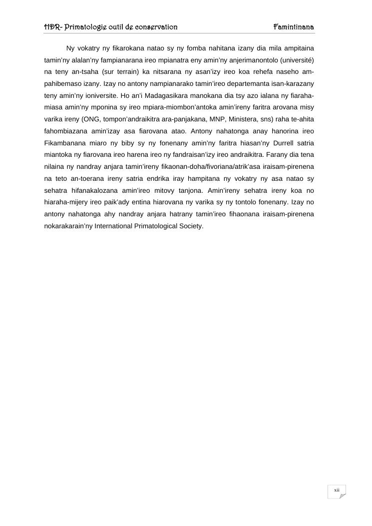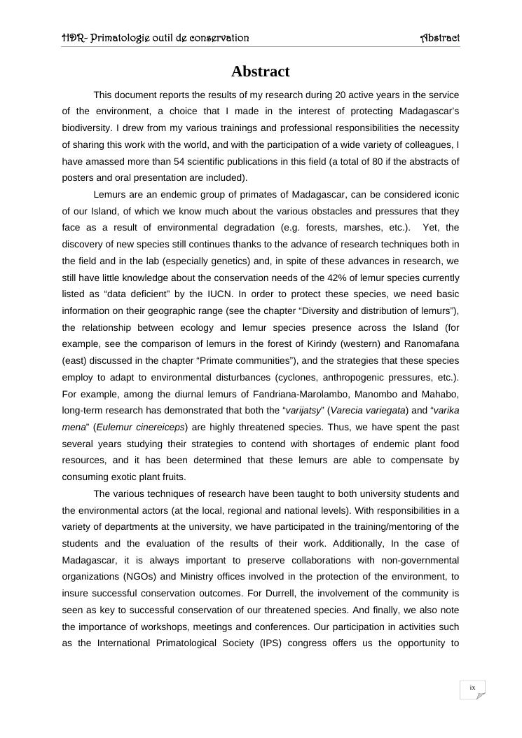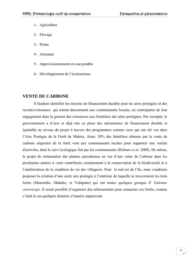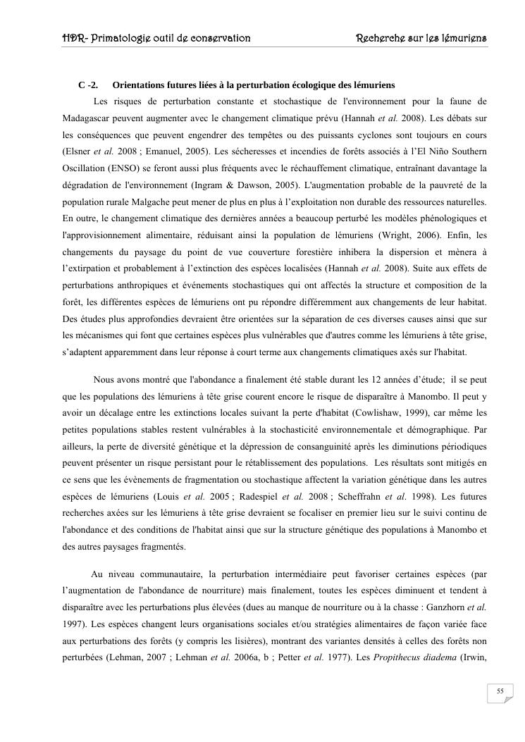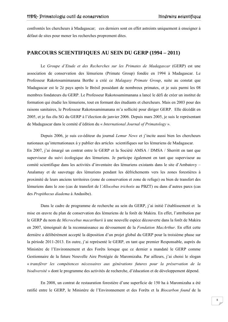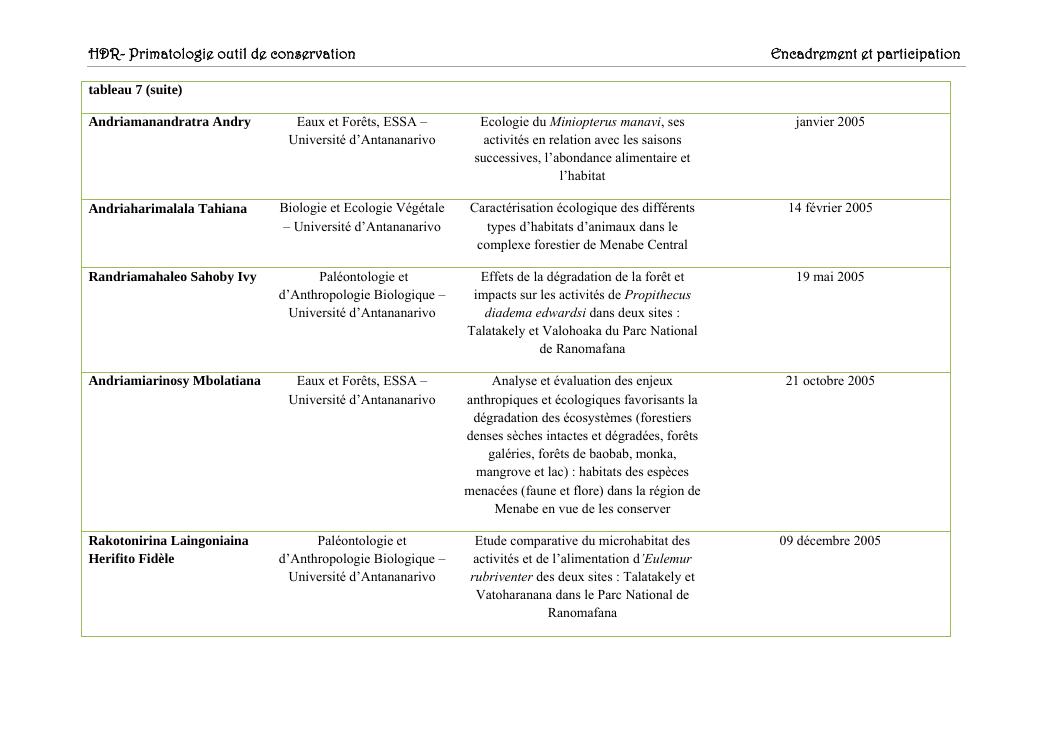 la primatologie : un outil de conservation (cas des lemuriens de madagascar). i document de synthèse