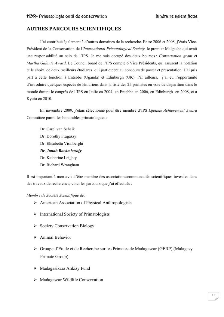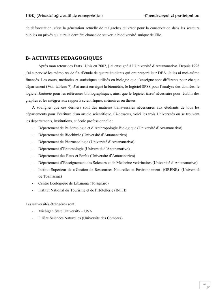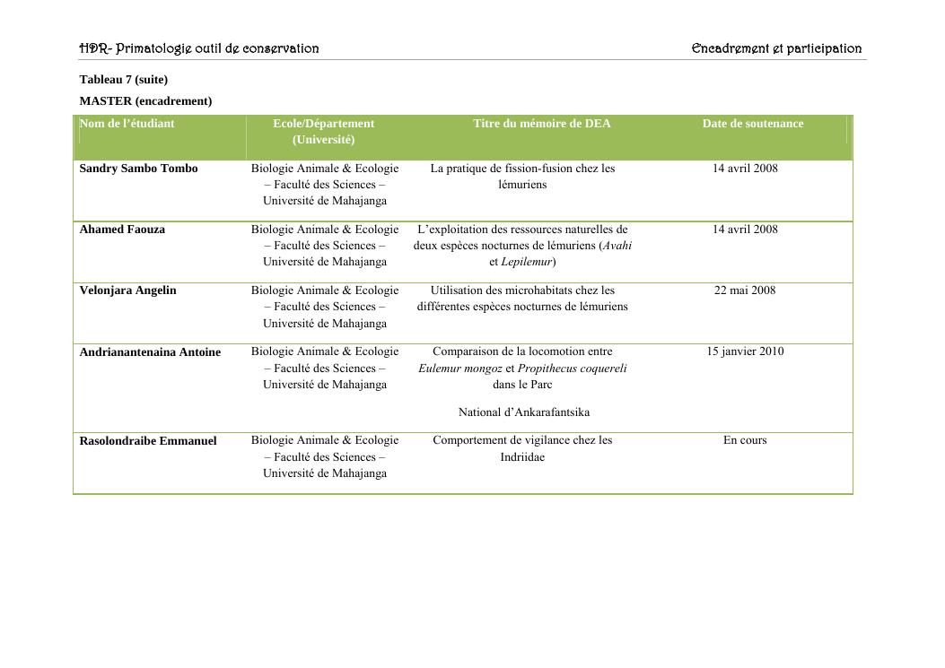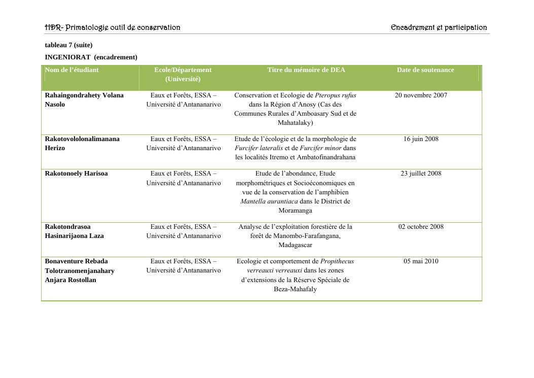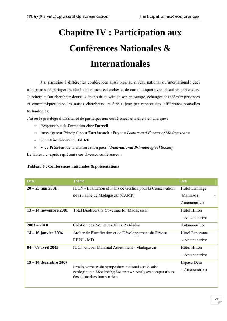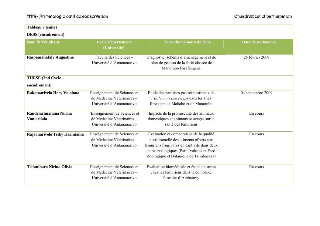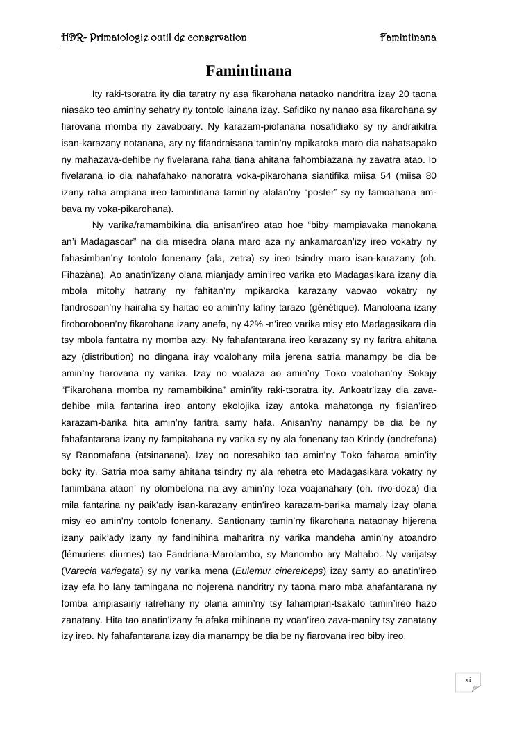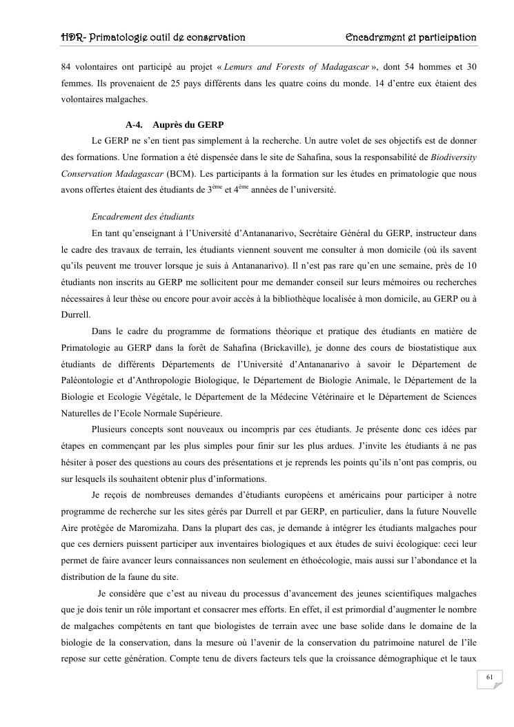 la primatologie : un outil de conservation (cas des lemuriens de madagascar). i document de synthèse