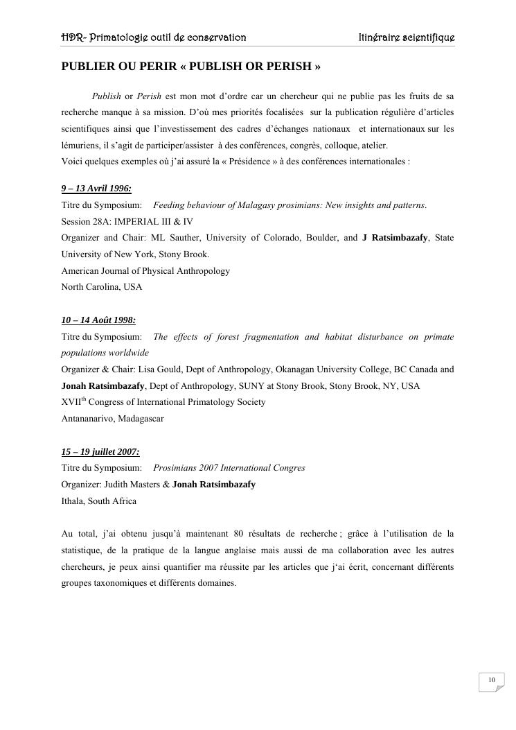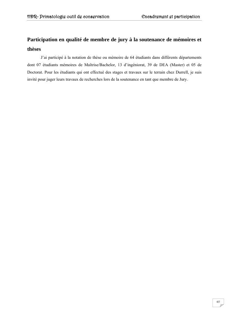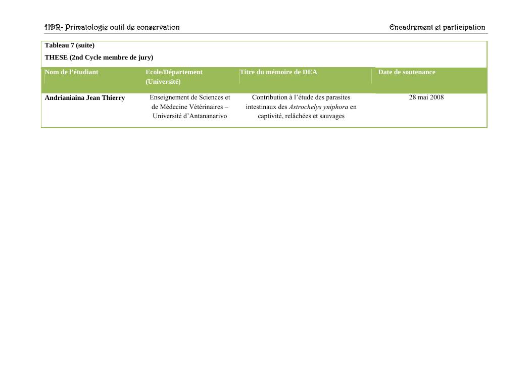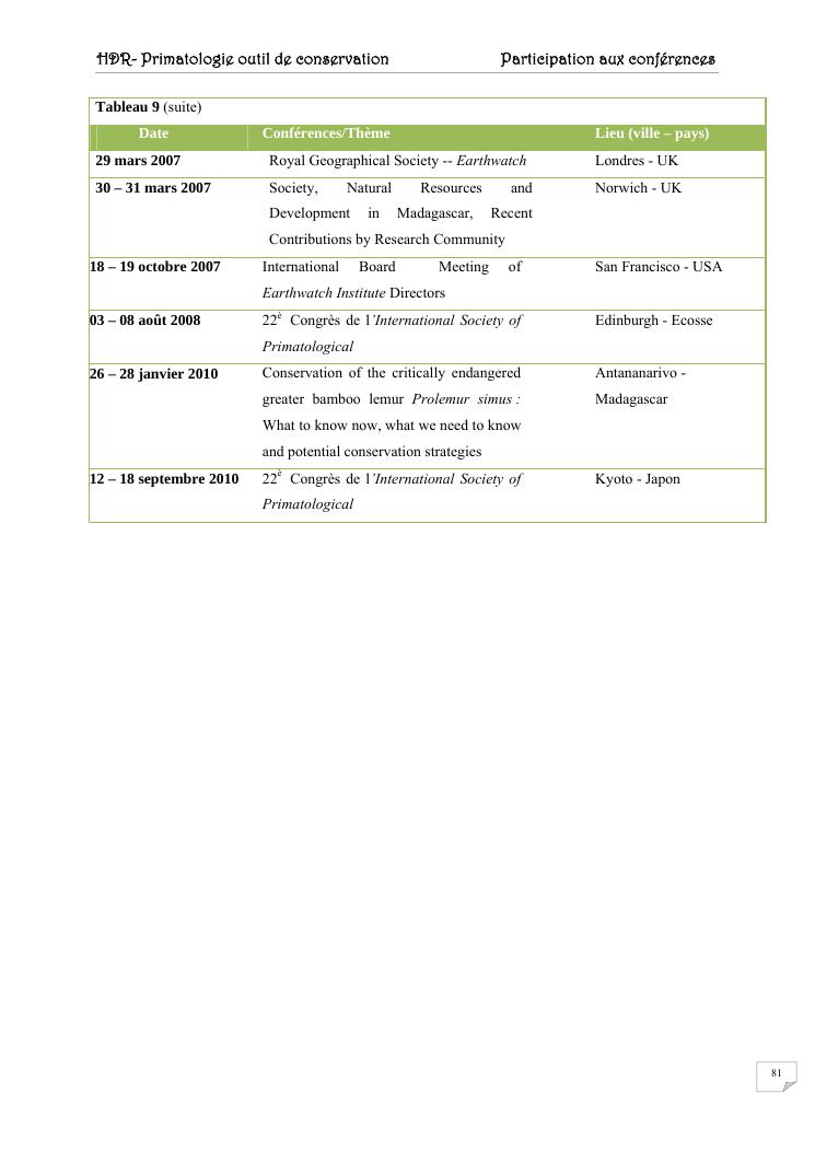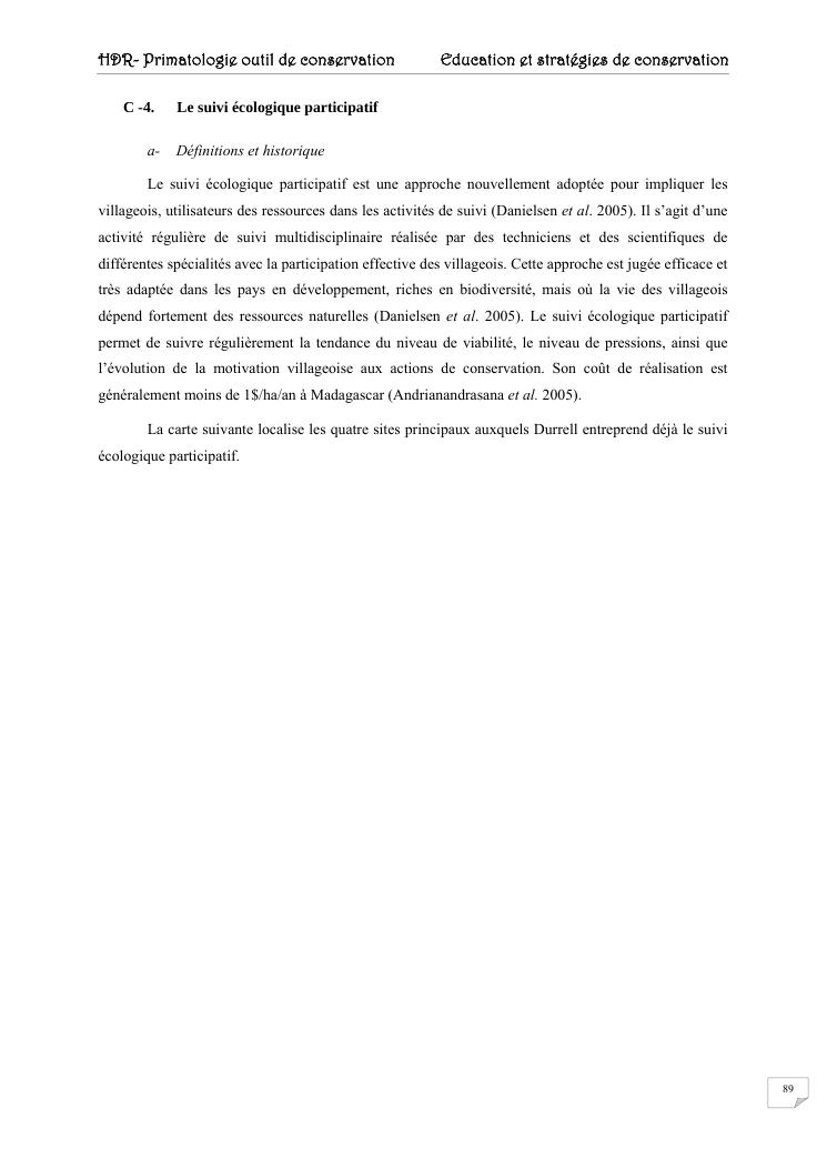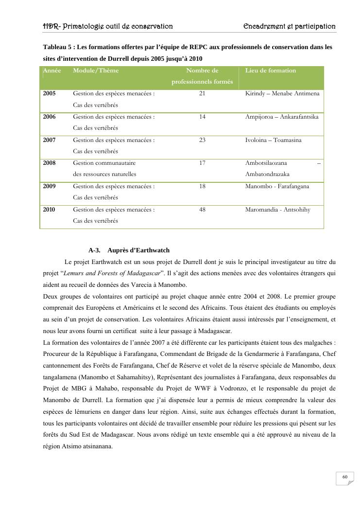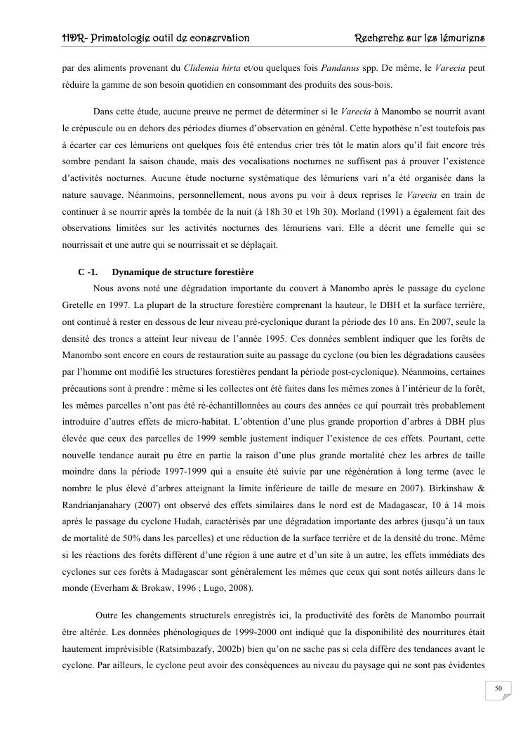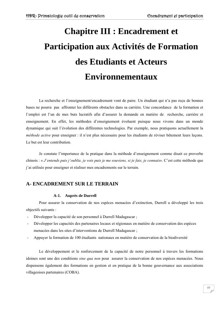 la primatologie : un outil de conservation (cas des lemuriens de madagascar). i document de synthèse