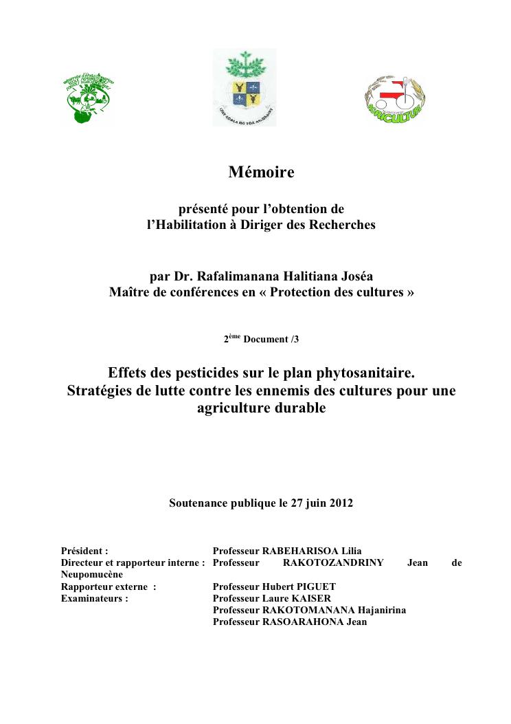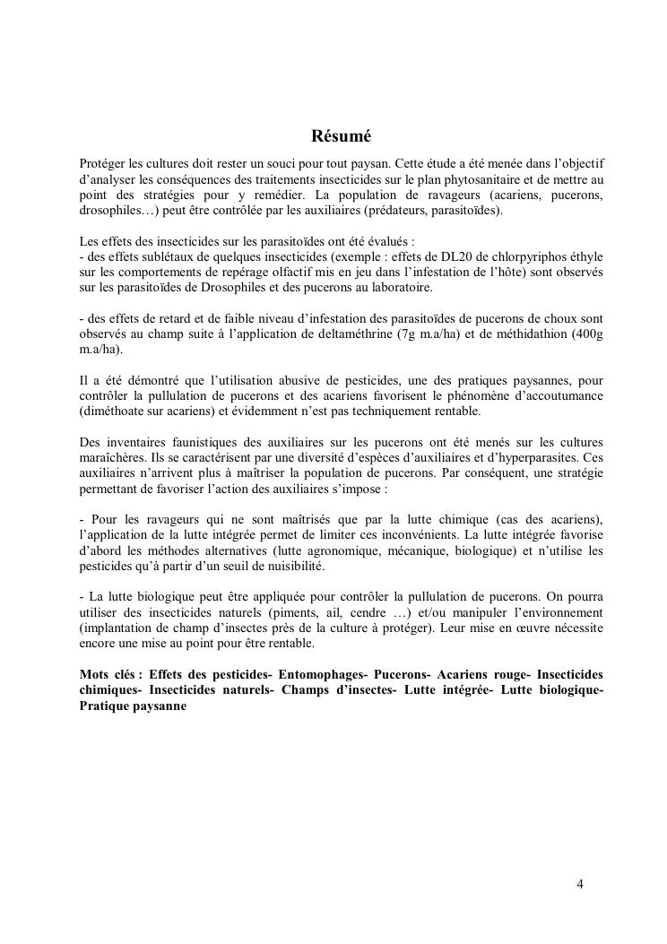 effets des pesticides sur le plan phytosanitaire. stratégies de lutte contre les ennemis des cultures pour une agriculture durable : synthèses