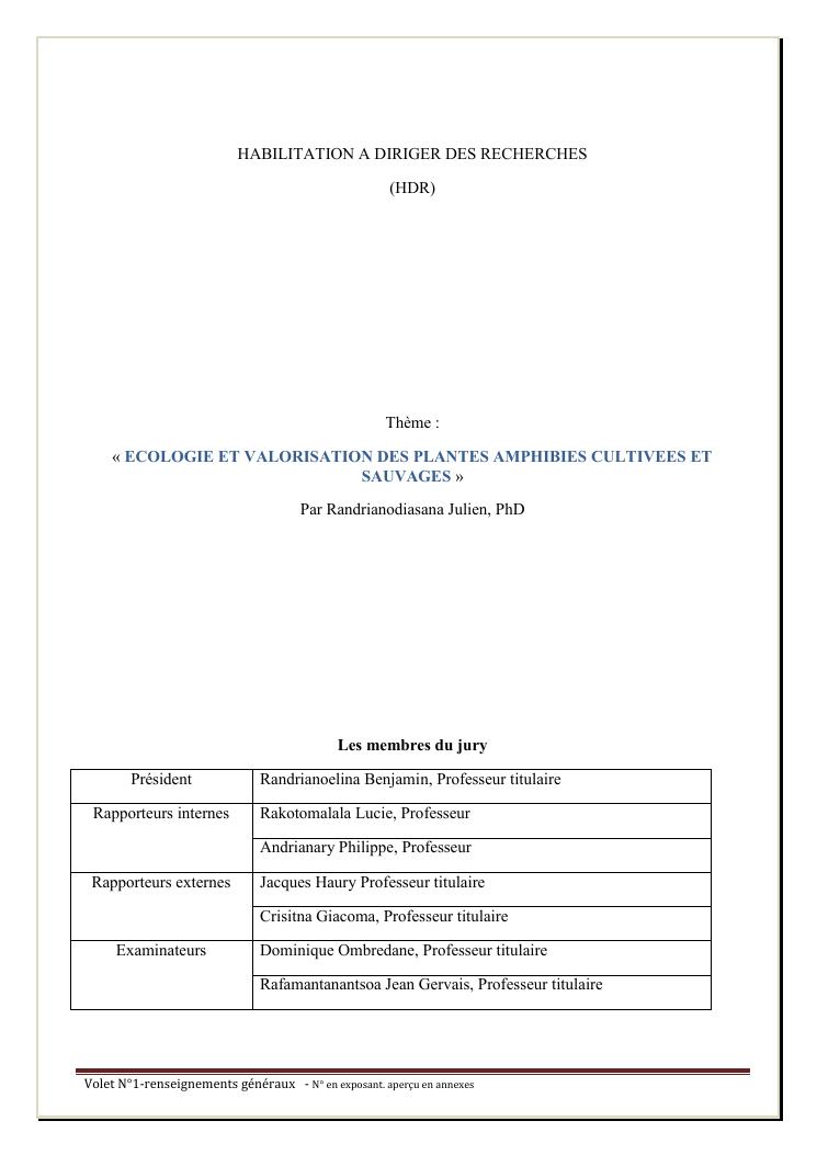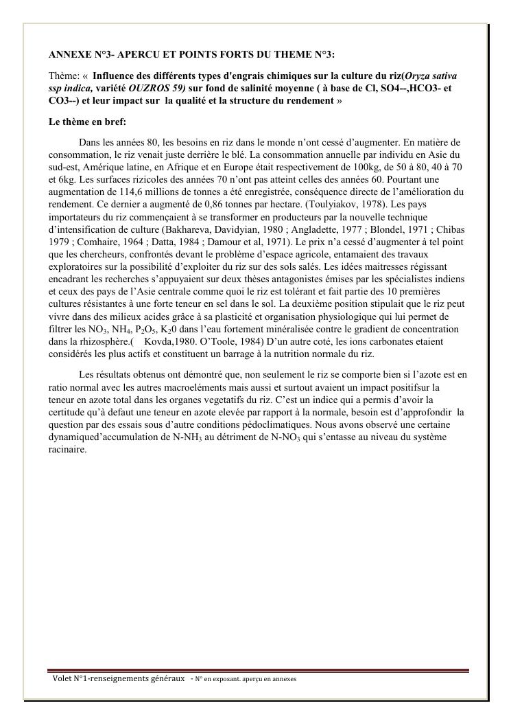 ecologie et valorisation des plantes amphibies cultivees et sauvages : volet n°i -renseignements generaux ; volet n° ii - publication ; volet n° iii - synthese des recherches