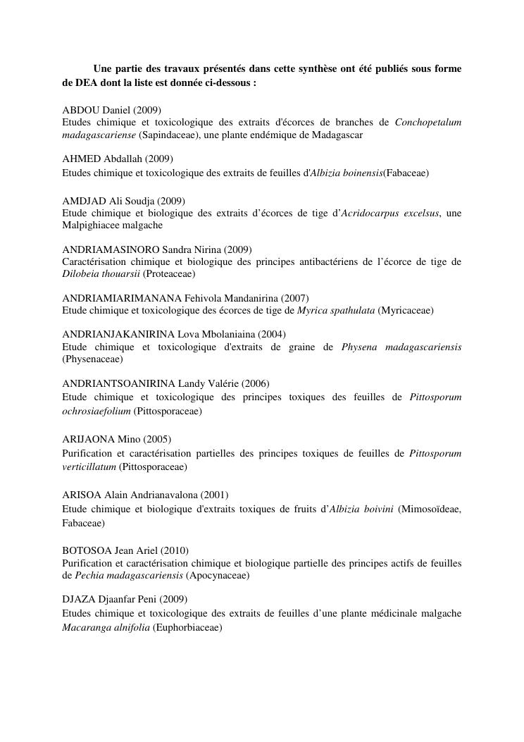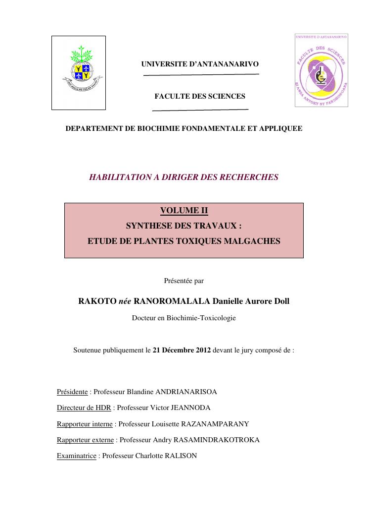 volume ii synthese des travaux : etude de plantes toxiques malgaches