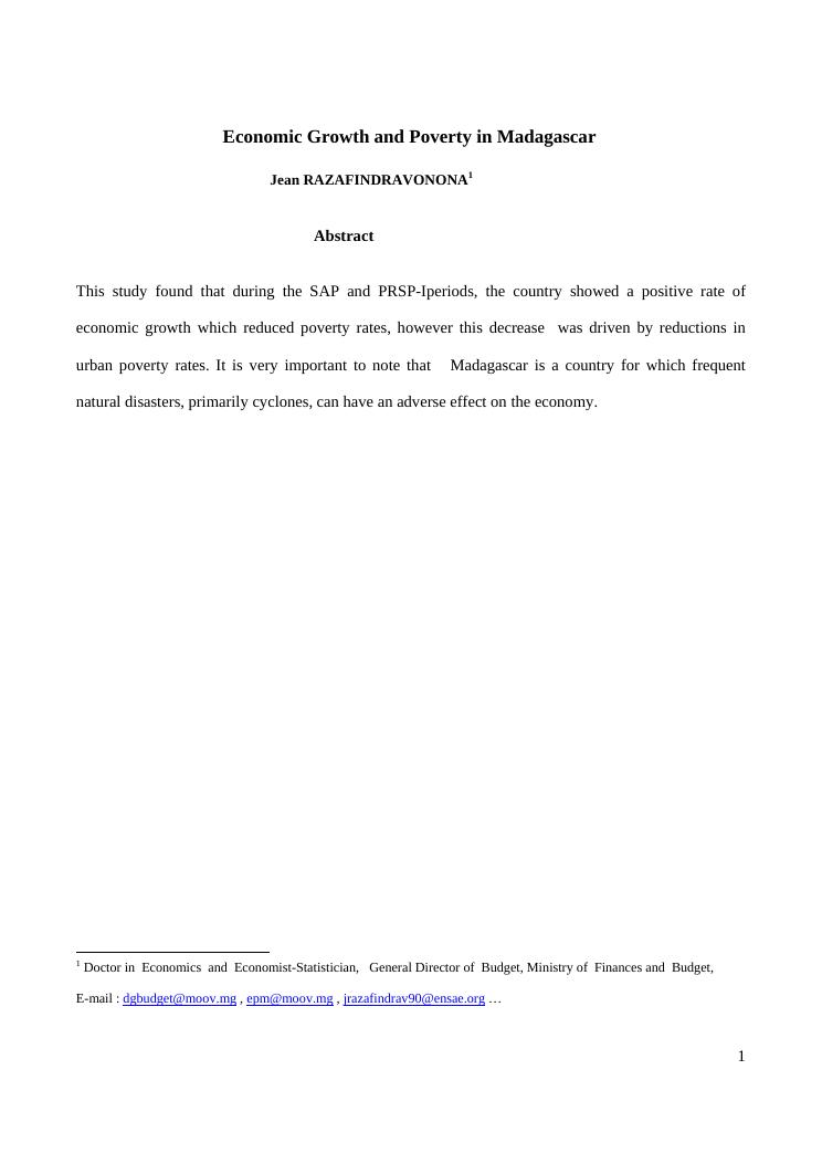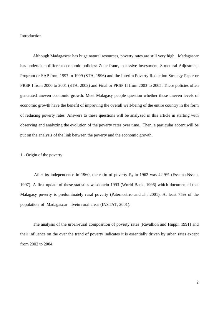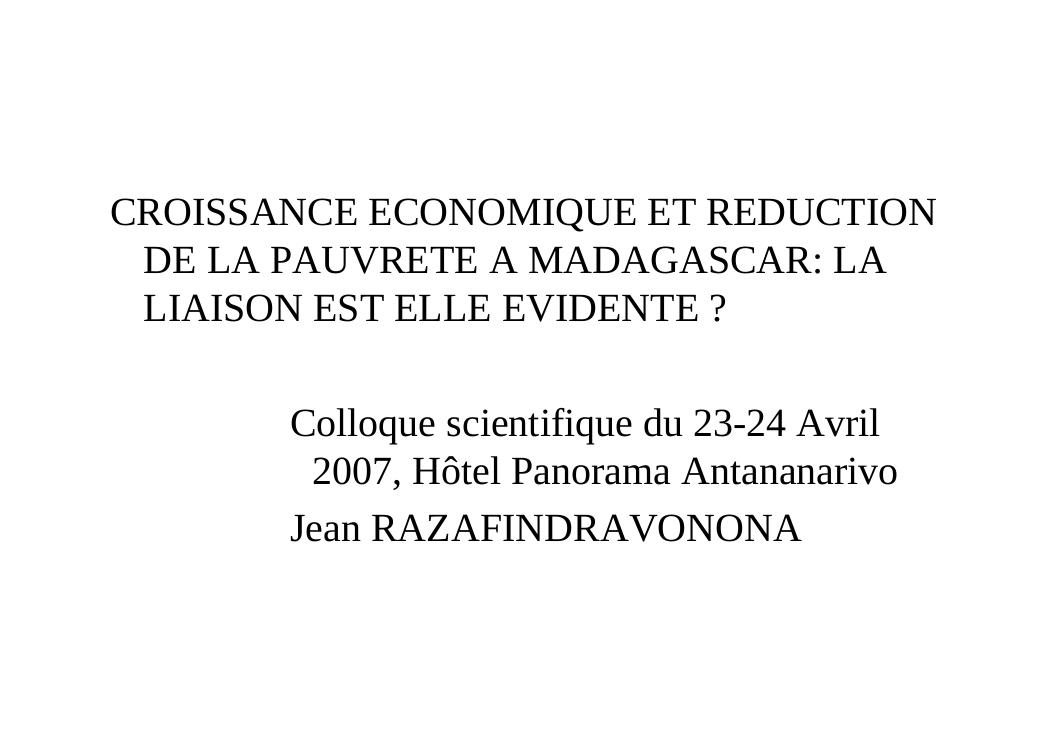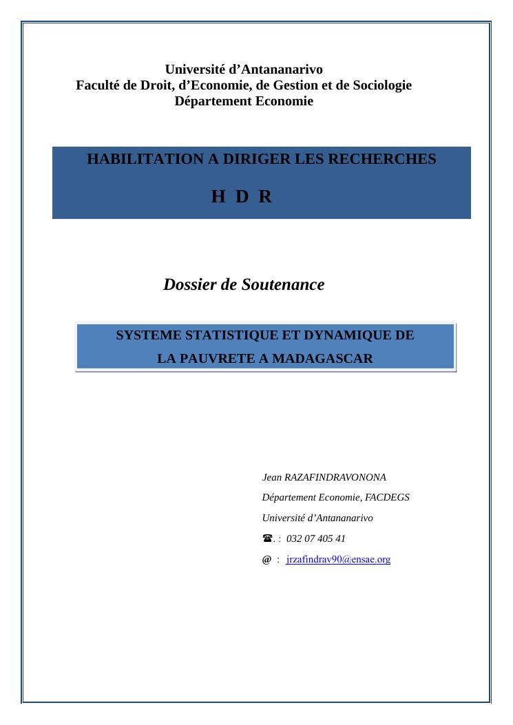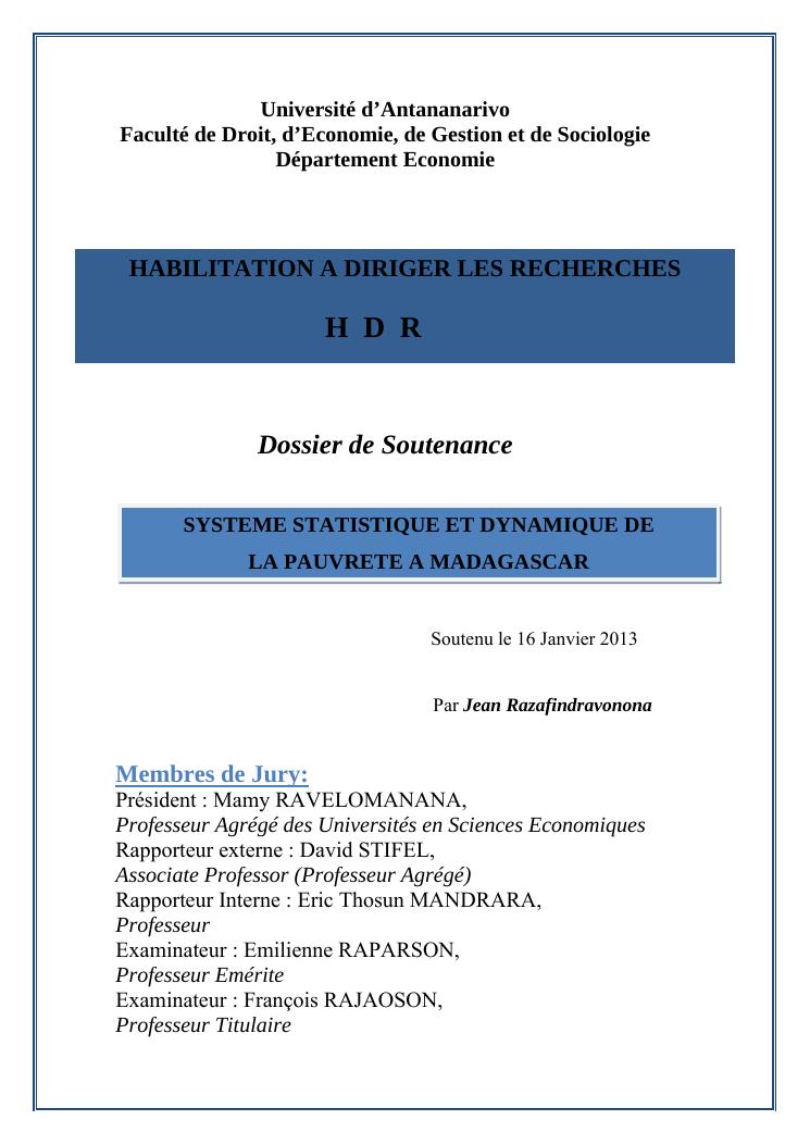 systeme statistique et dynamique de la pauvrete a madagascar