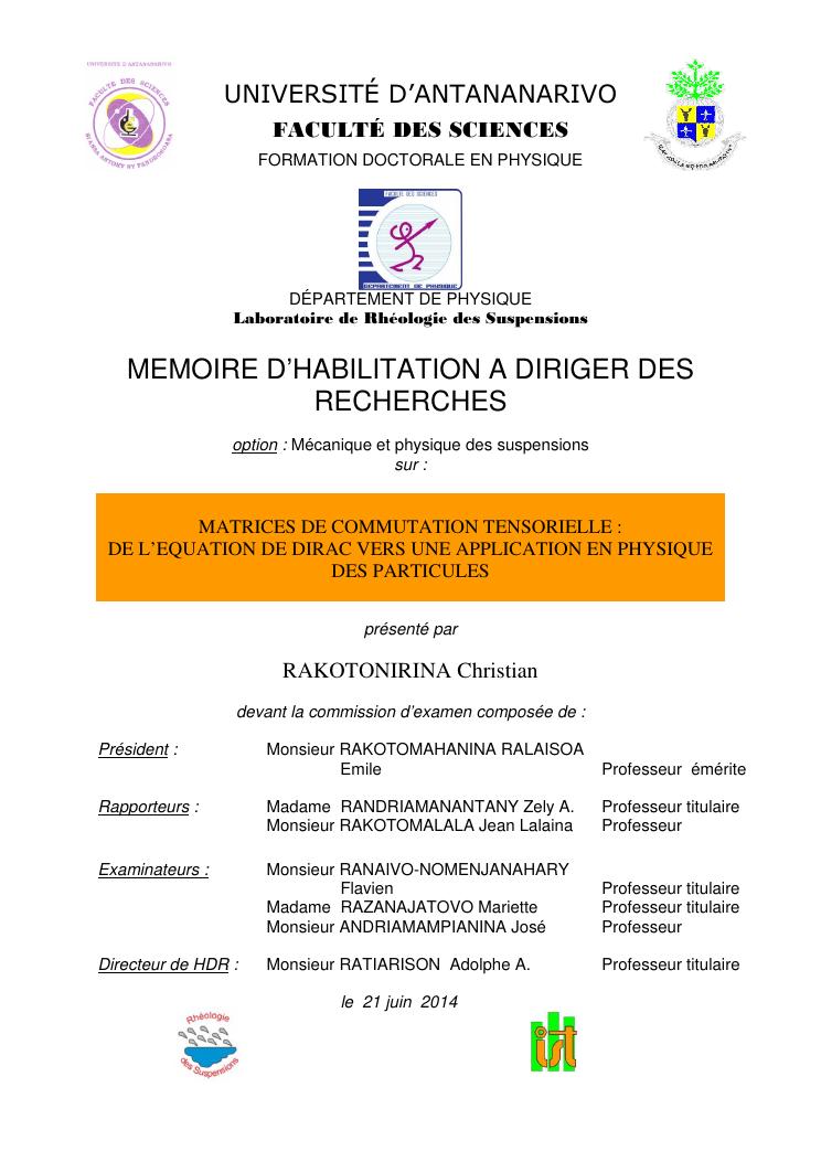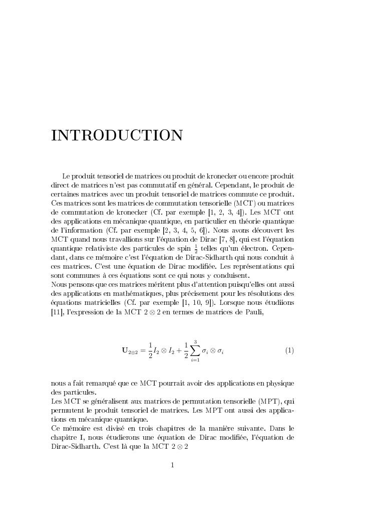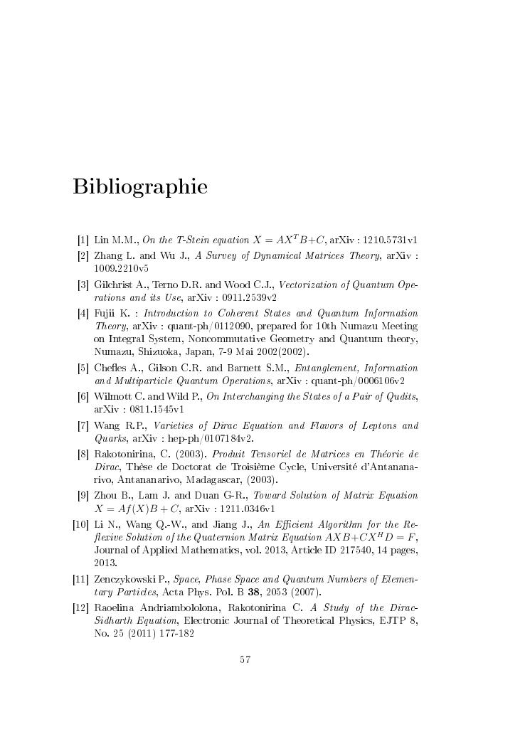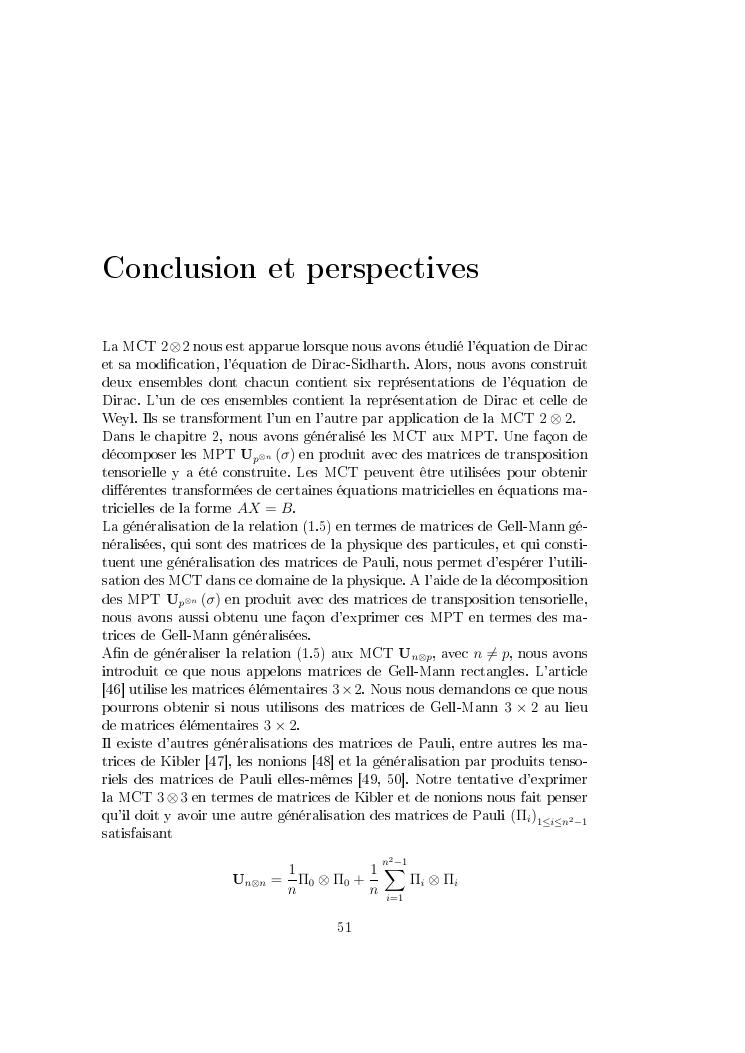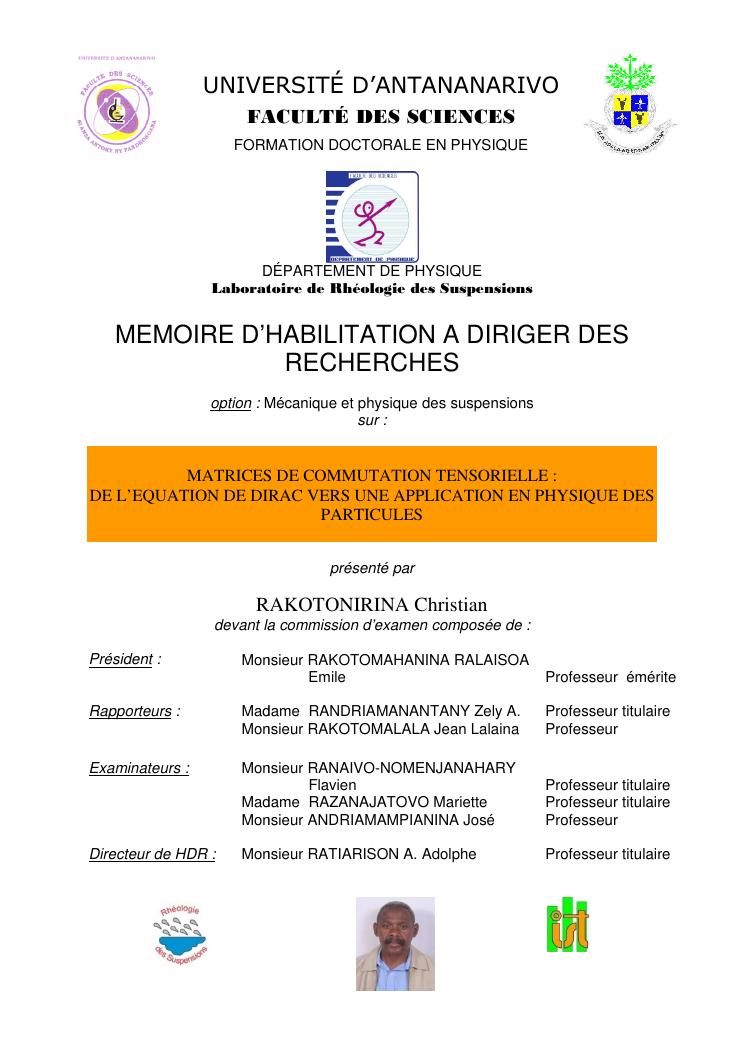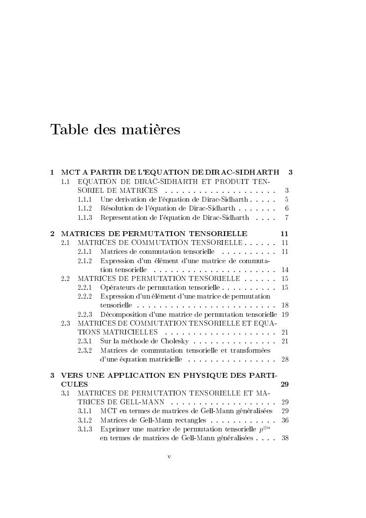 matrices de commutation tensorielle : de l'equation de dirac vers une application en physique des particules : synthèses
