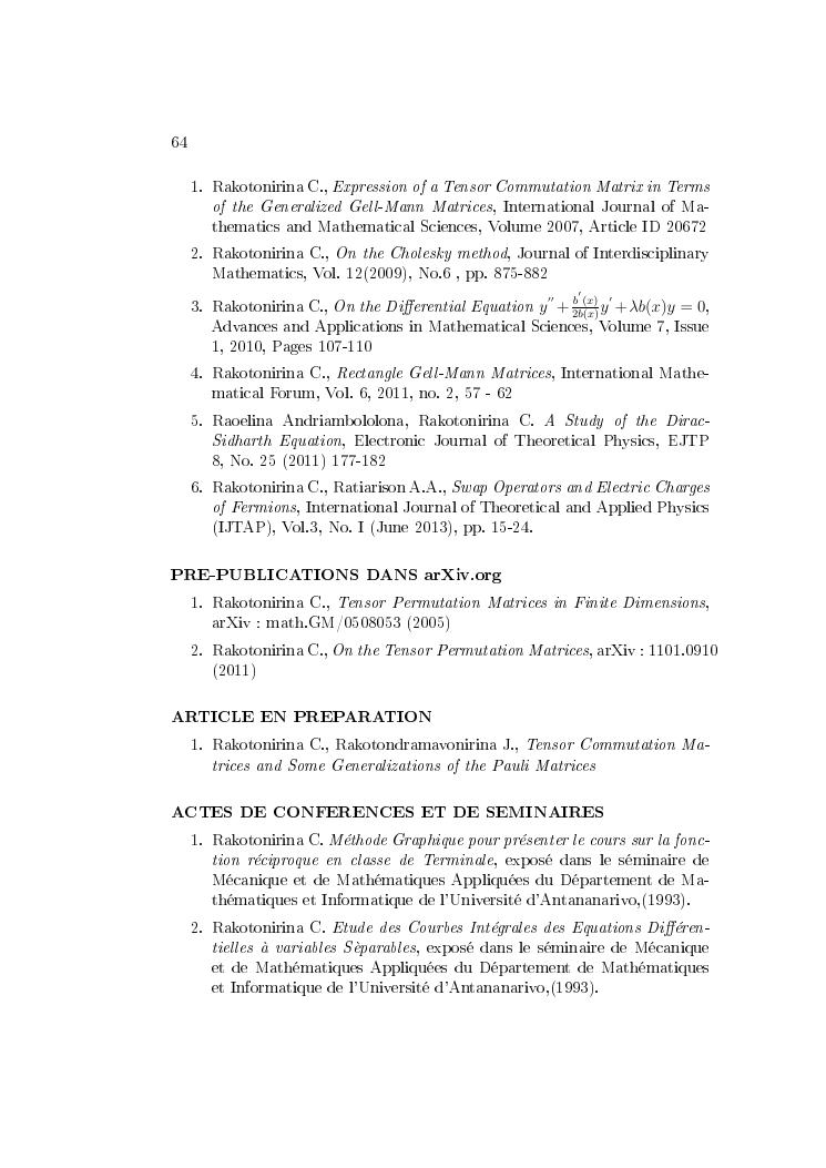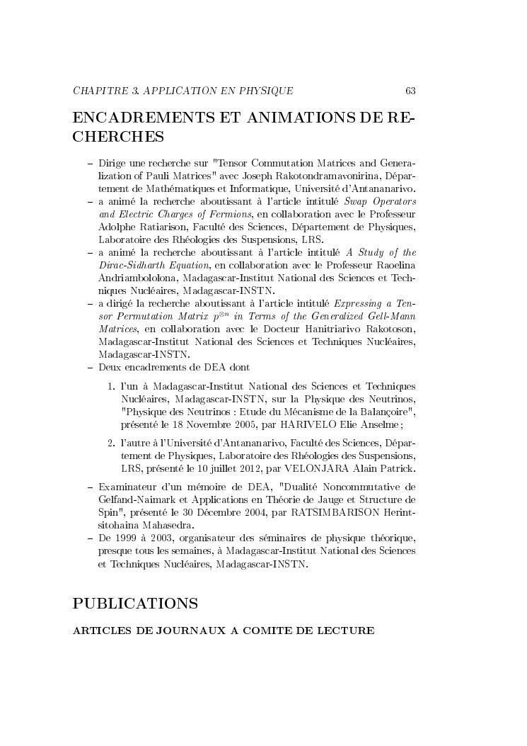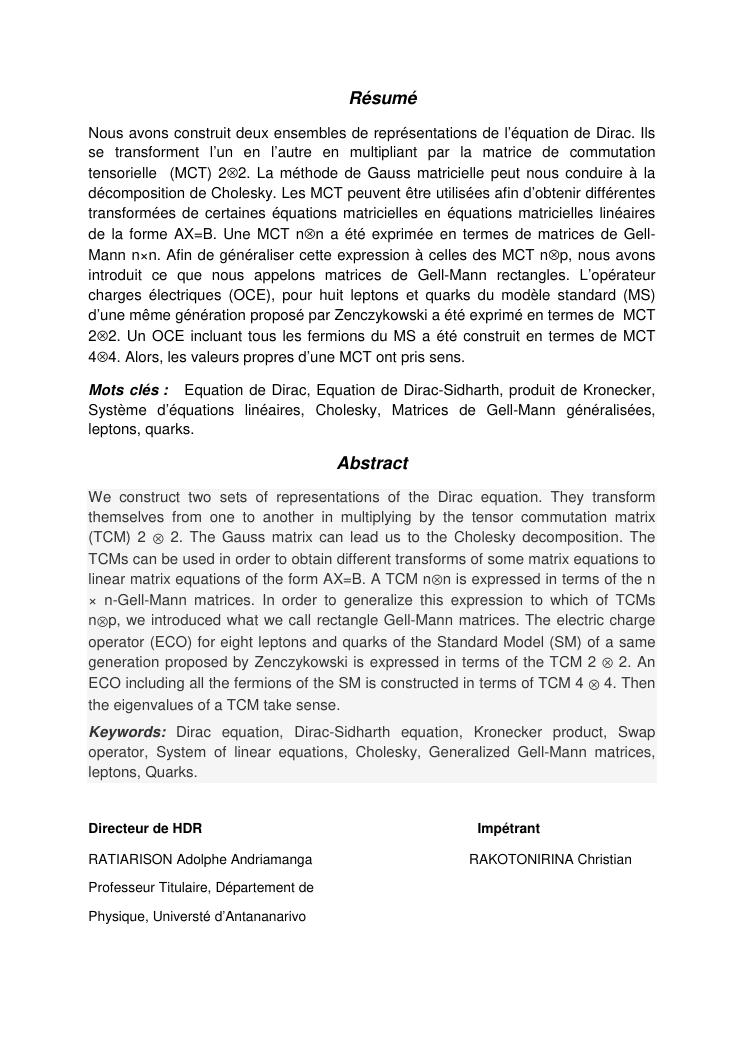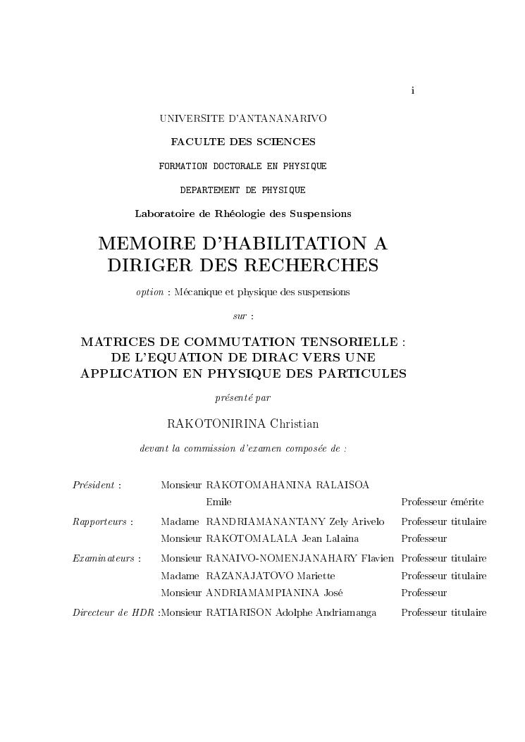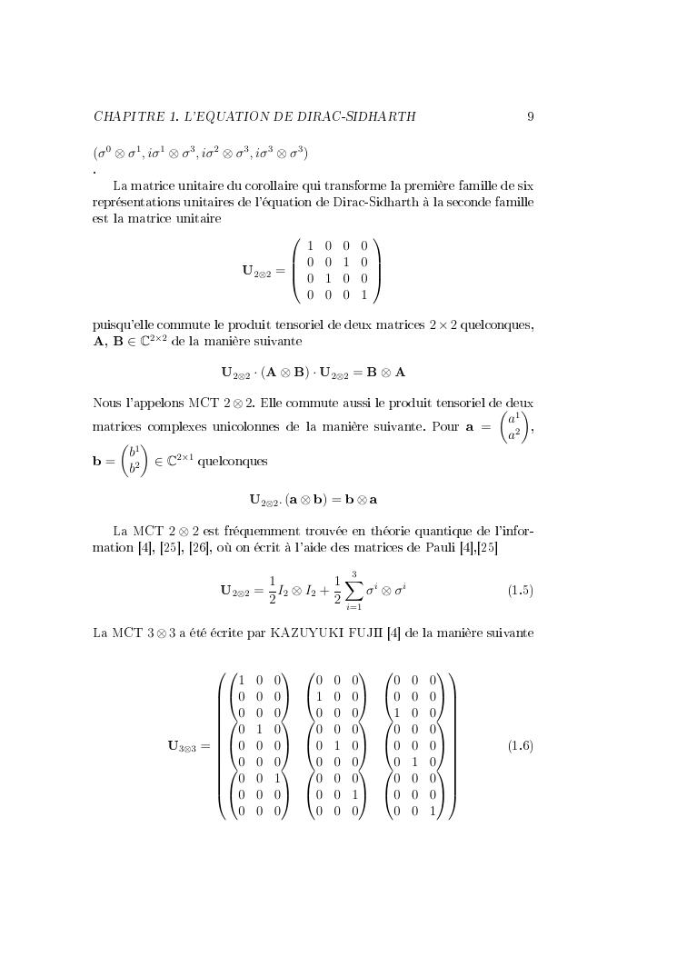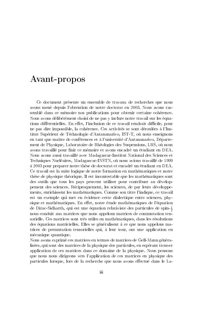 matrices de commutation tensorielle : de l'equation de dirac vers une application en physique des particules : synthèses