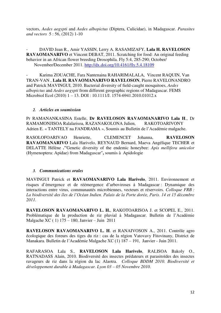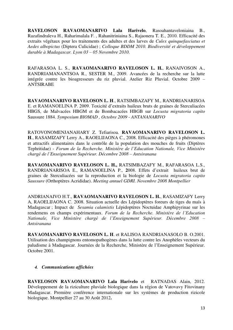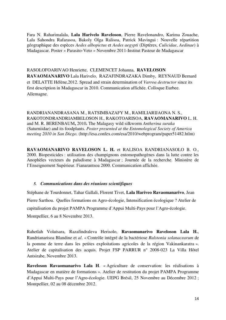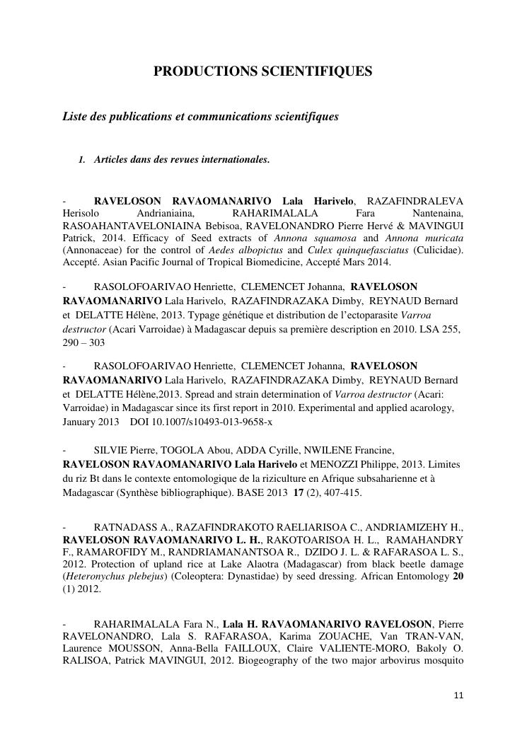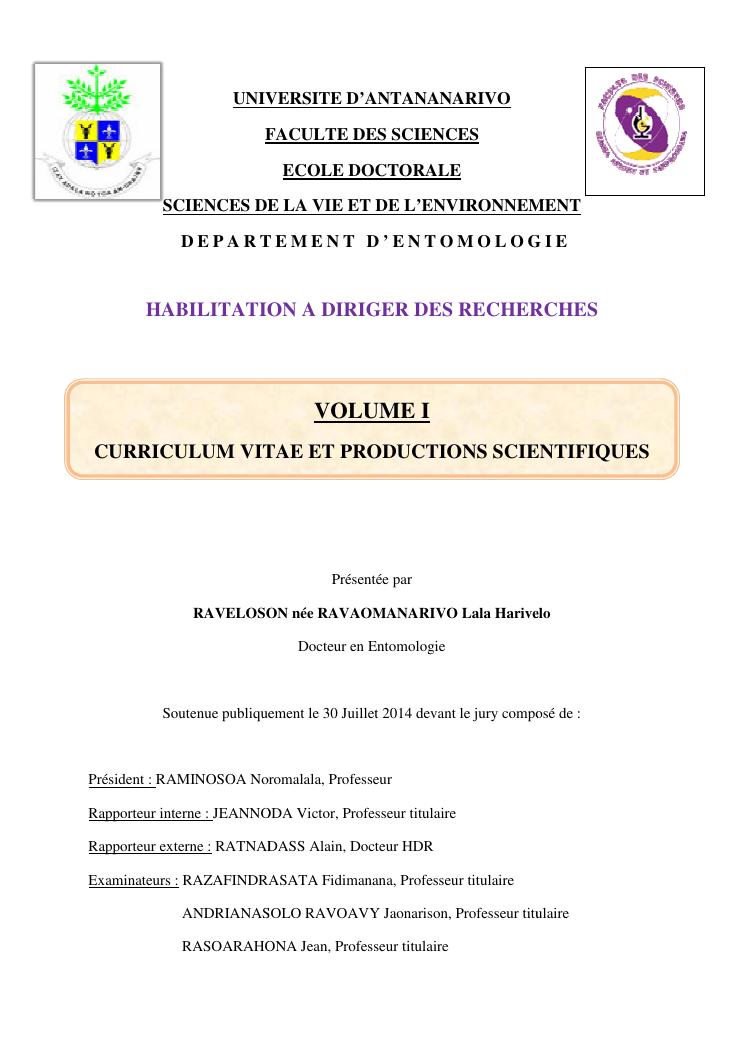 gestion des bio agresseurs : volume i : curriculum vitae et productions scientifiques