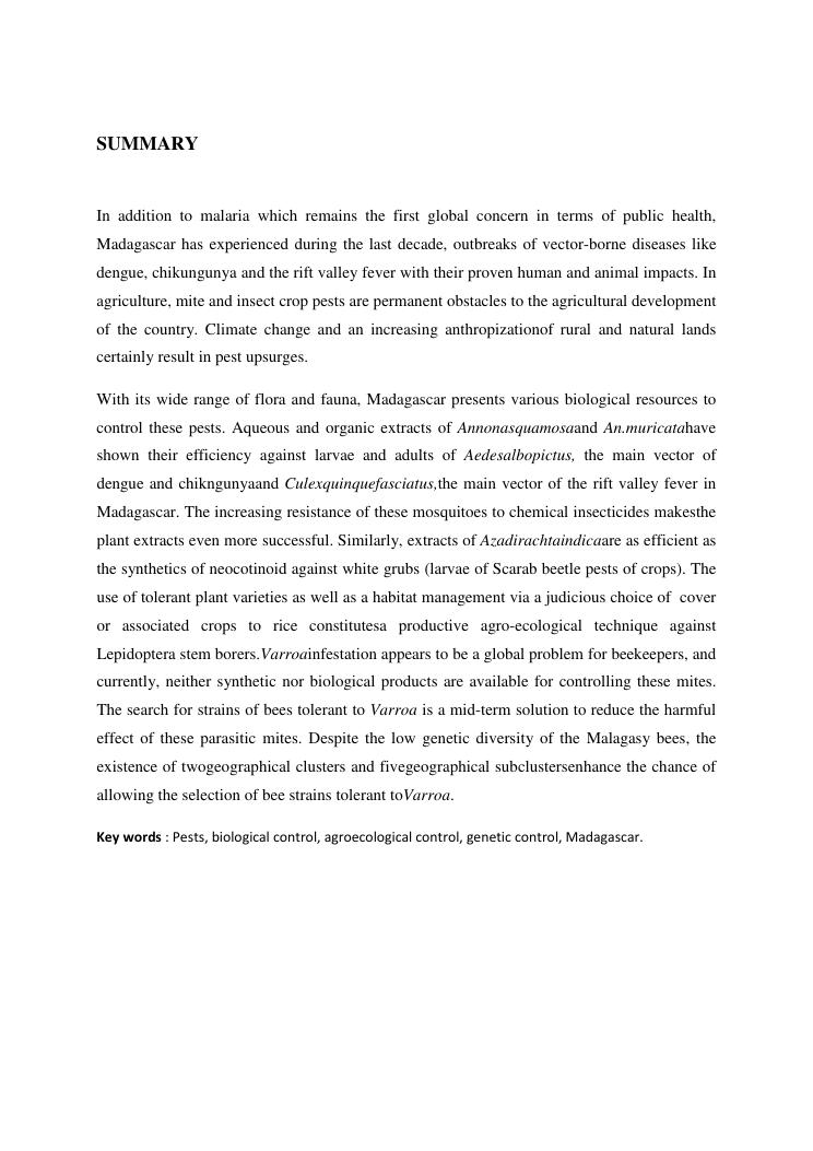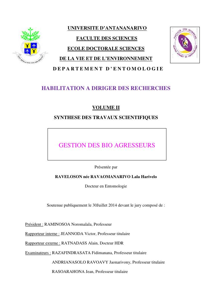 gestion des bio agresseurs : volume ii : synthese des travaux scientifiques