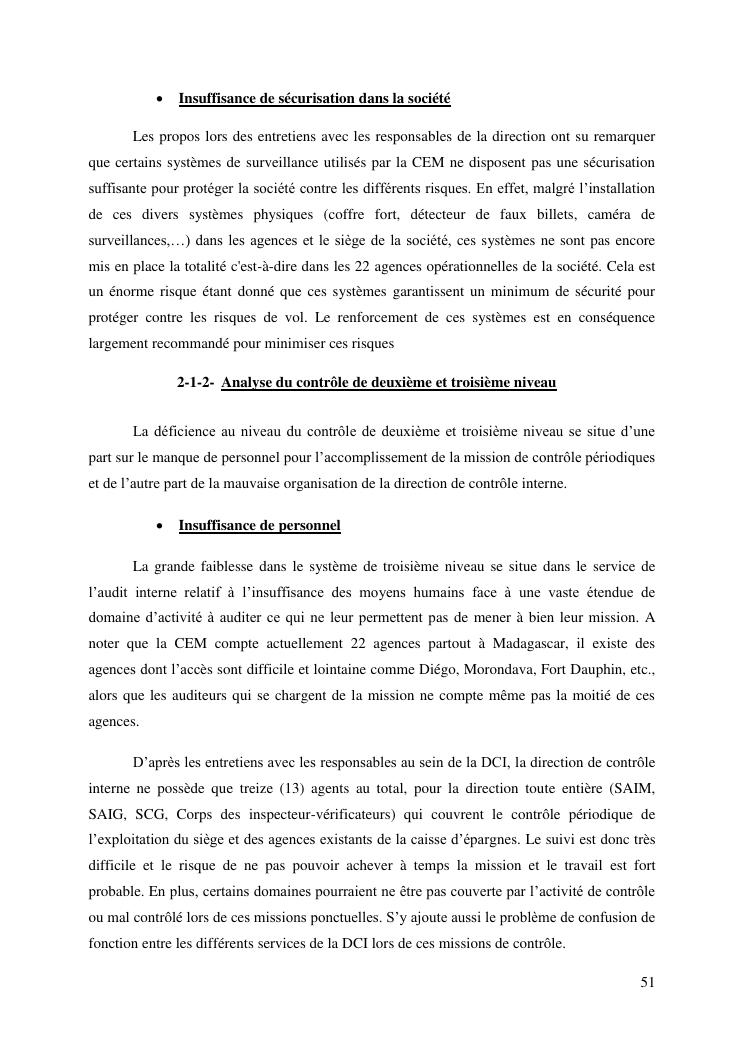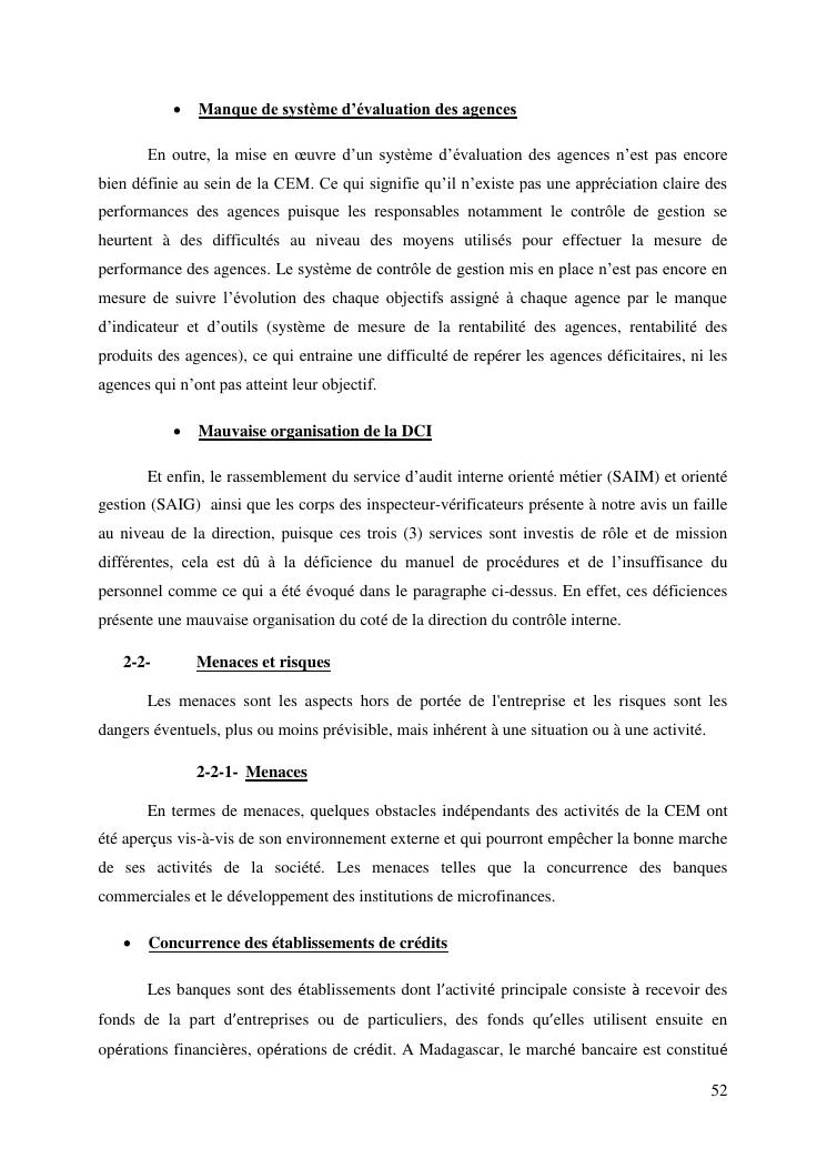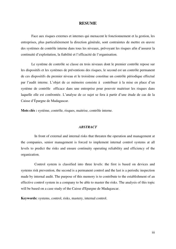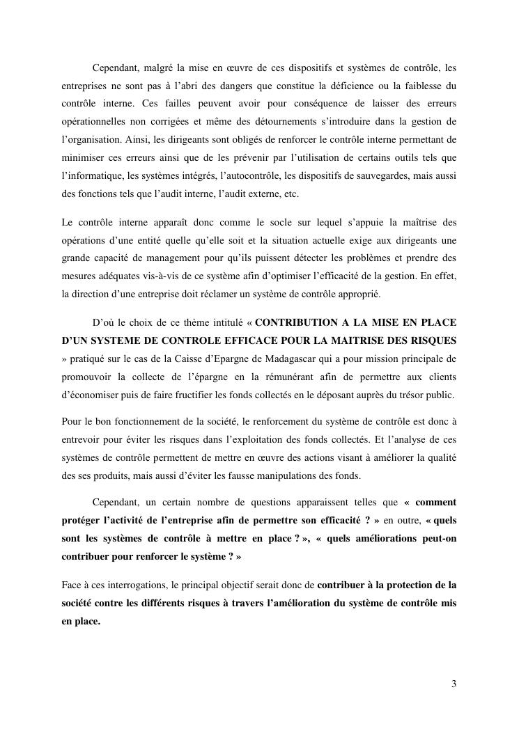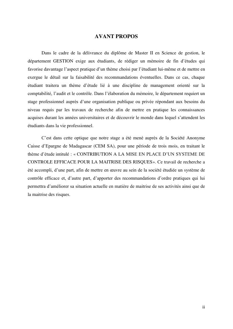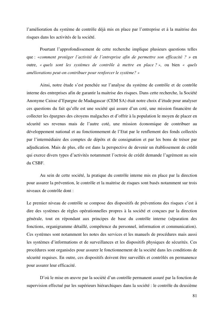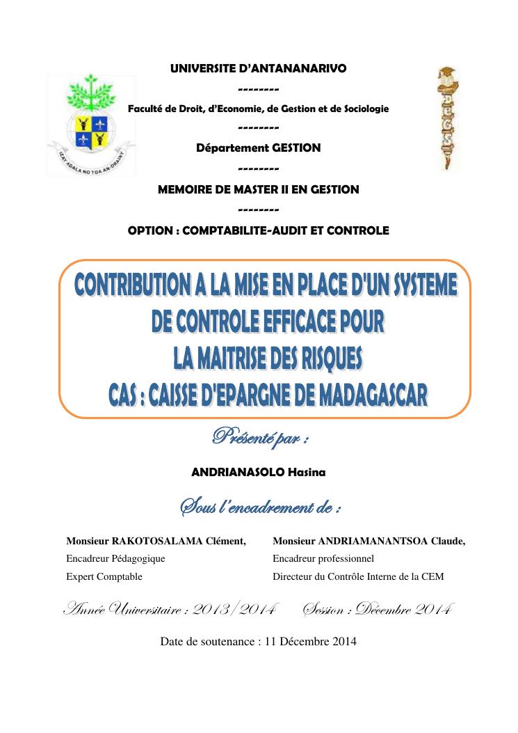 contribution a la mise en place d'un systeme de controle efficace pour la maitrise des risques cas : caisse d'epargne de madagascar