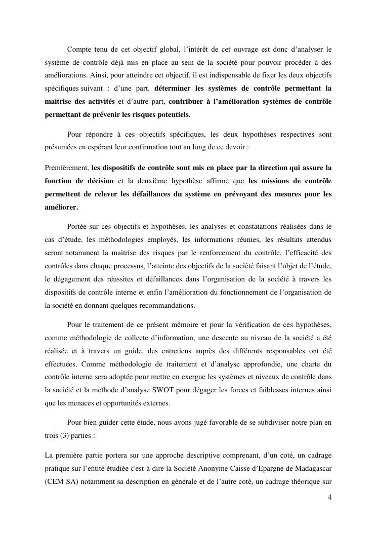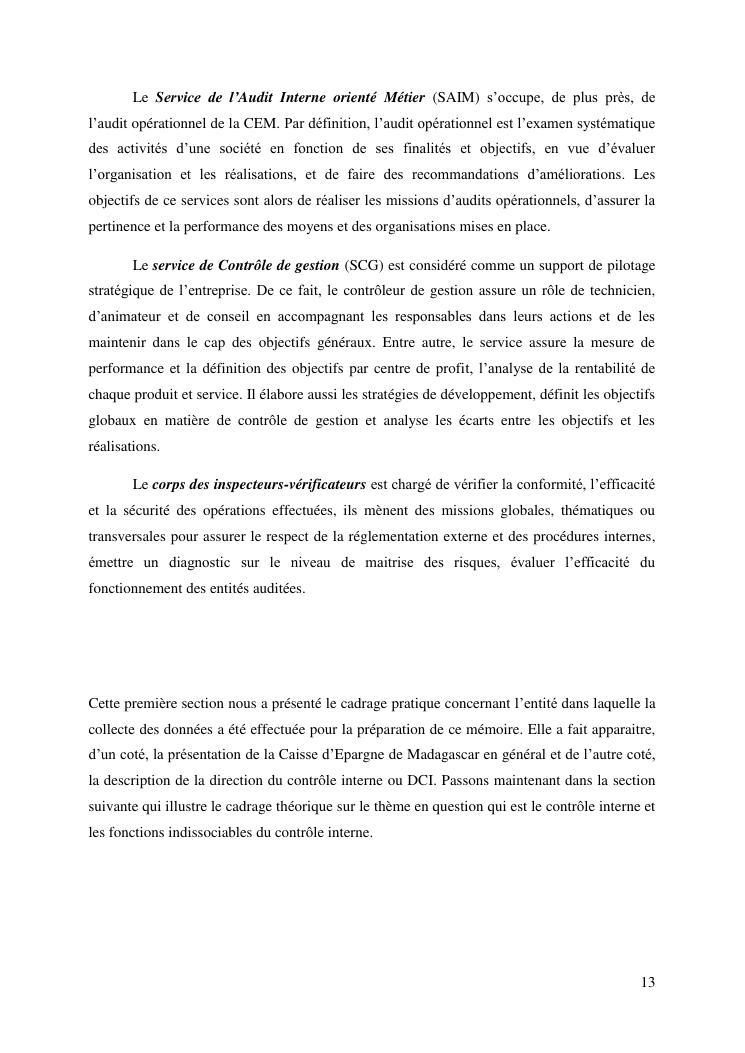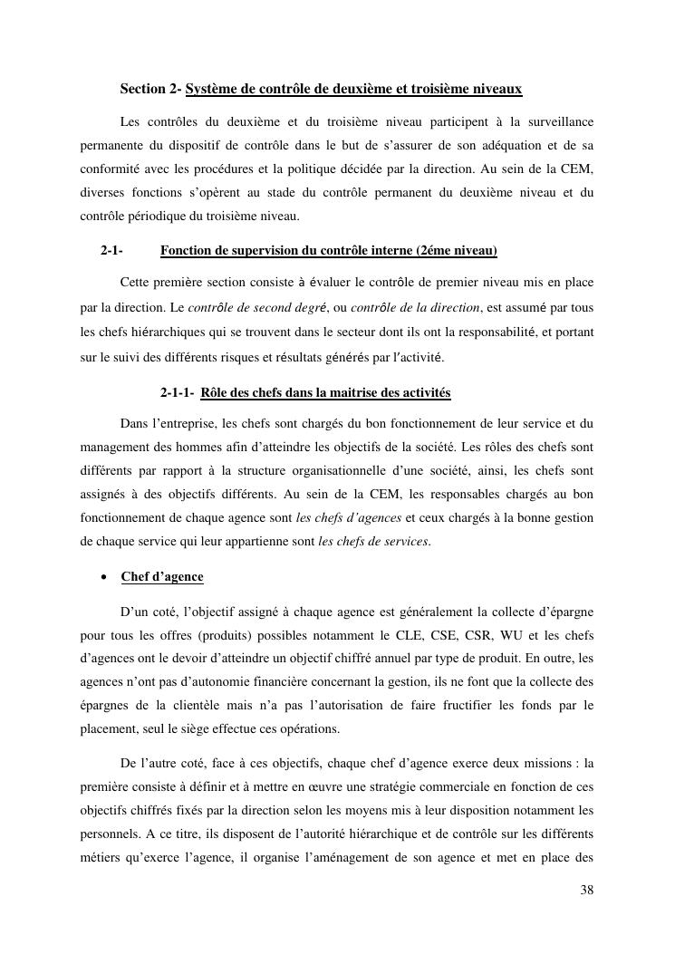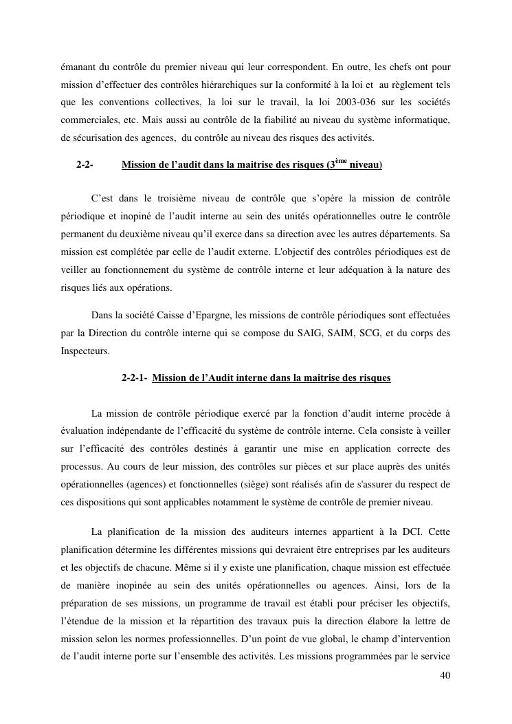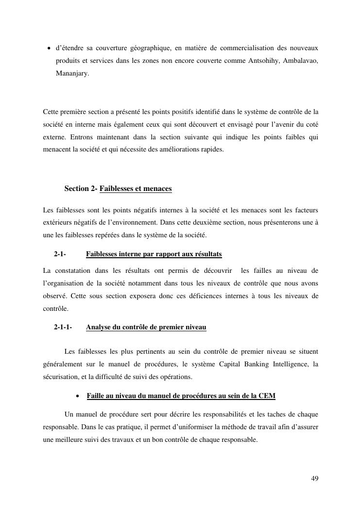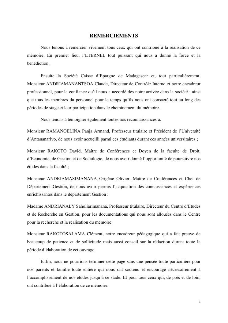 contribution a la mise en place d'un systeme de controle efficace pour la maitrise des risques cas : caisse d'epargne de madagascar