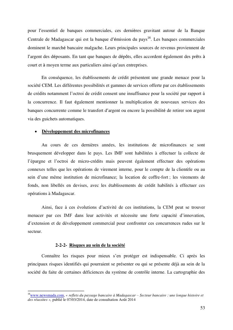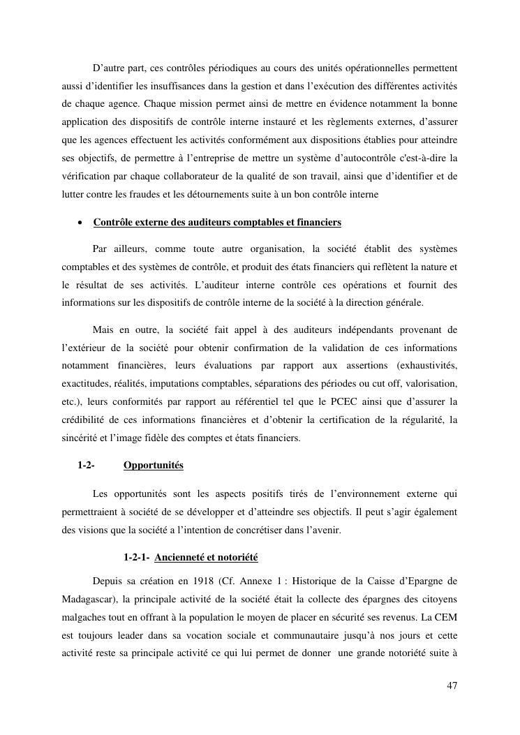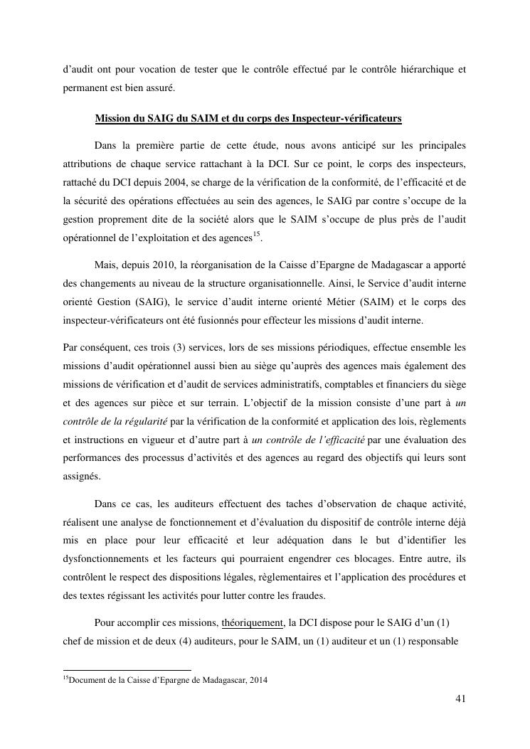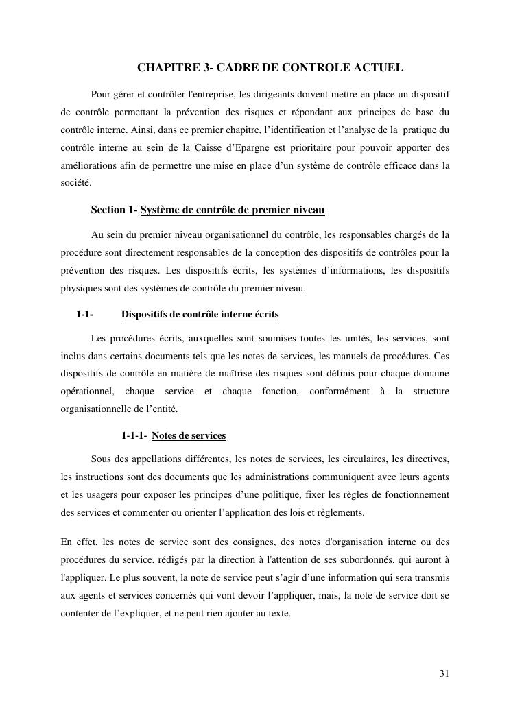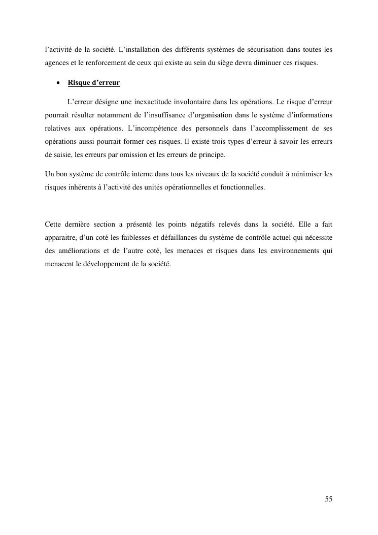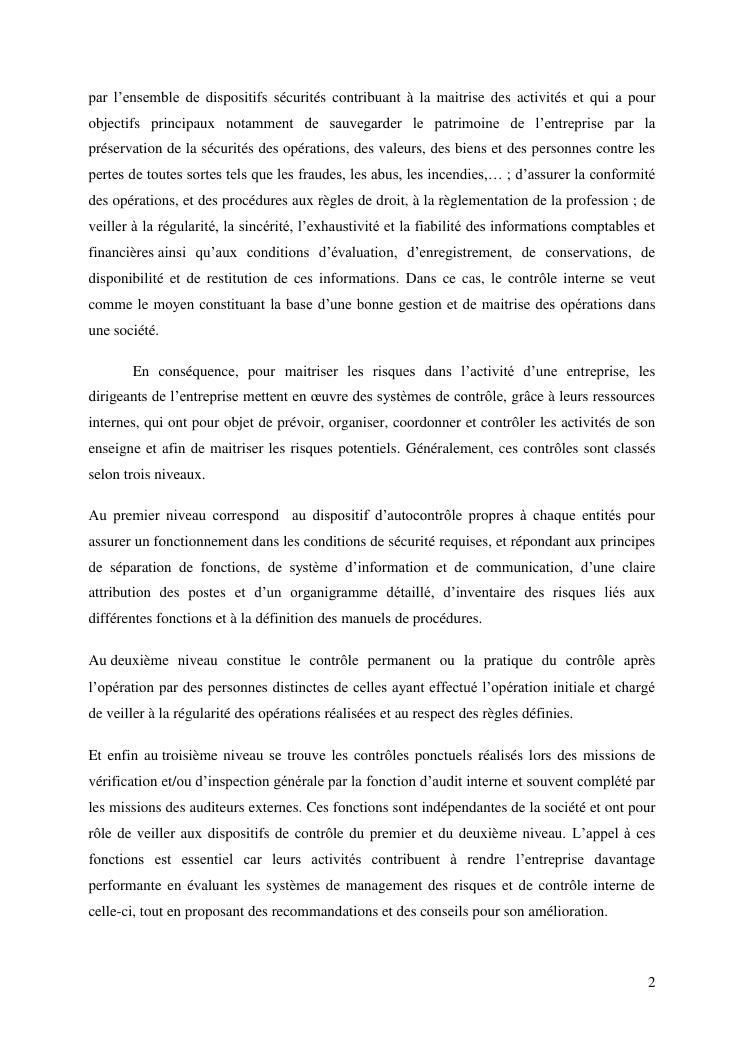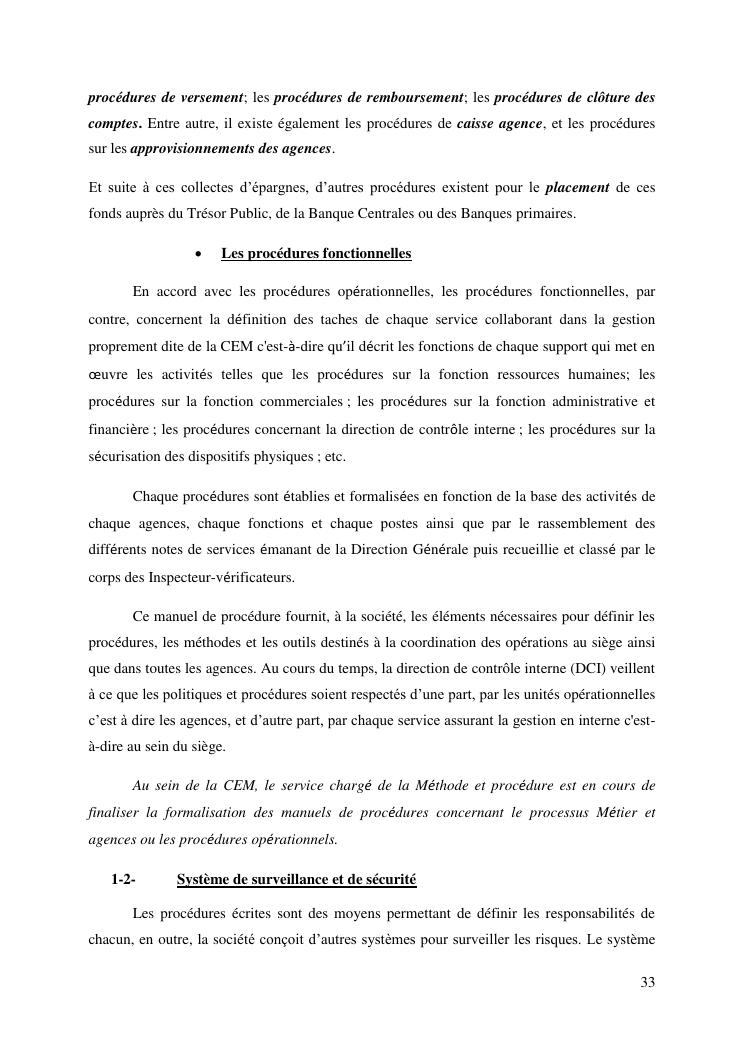contribution a la mise en place d'un systeme de controle efficace pour la maitrise des risques cas : caisse d'epargne de madagascar
