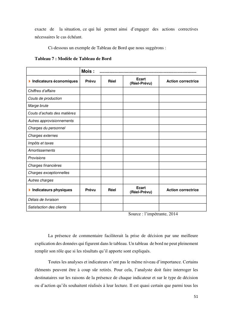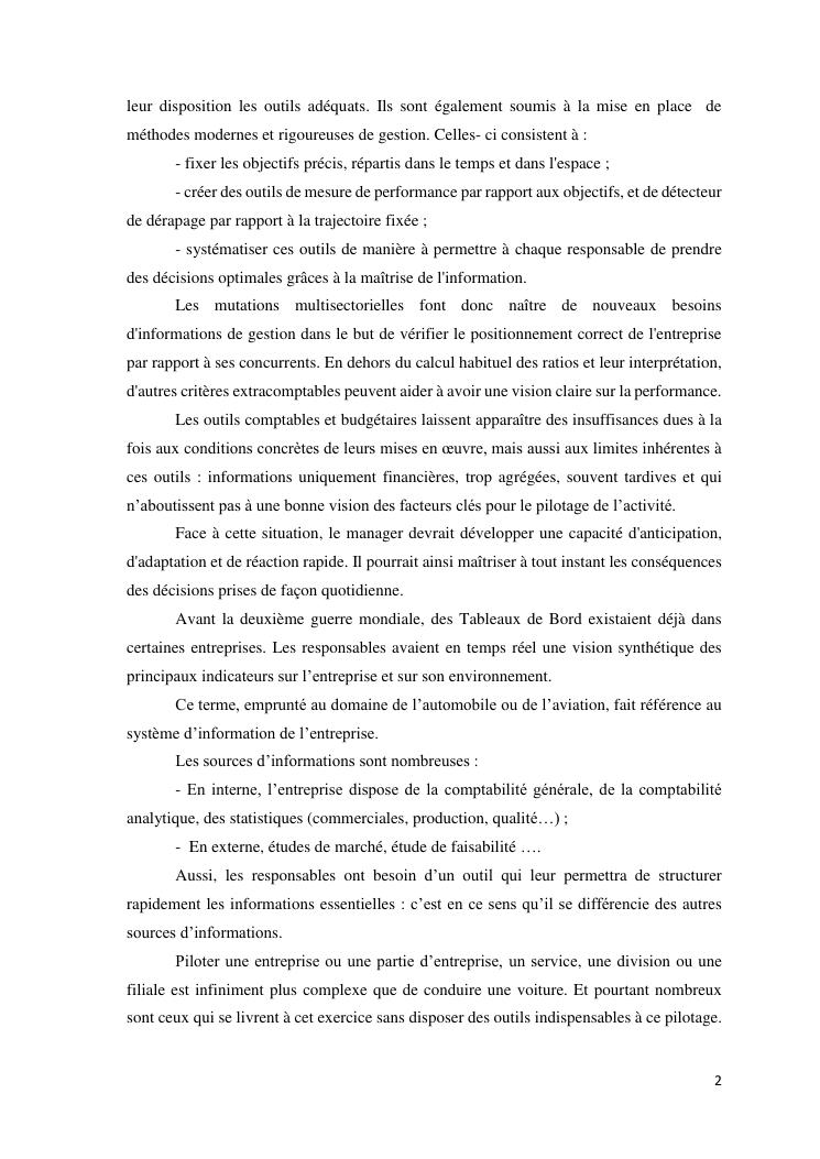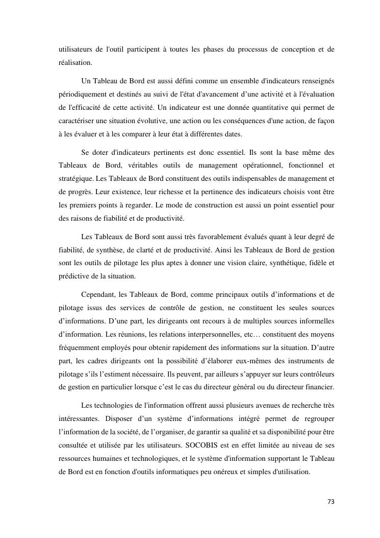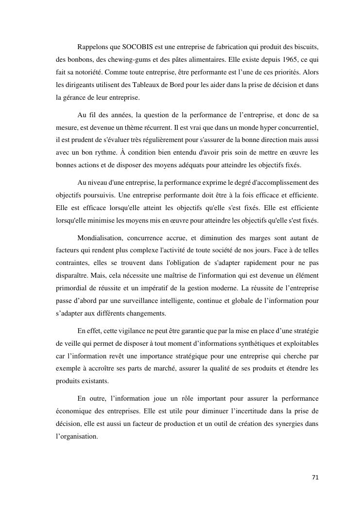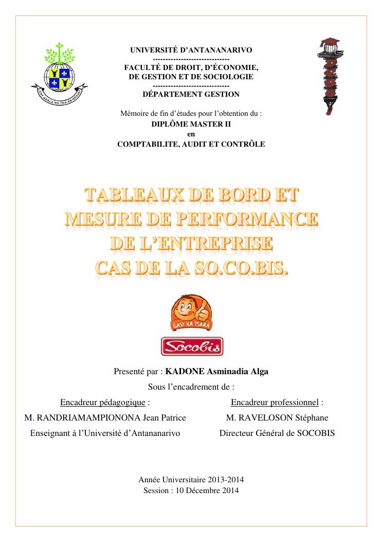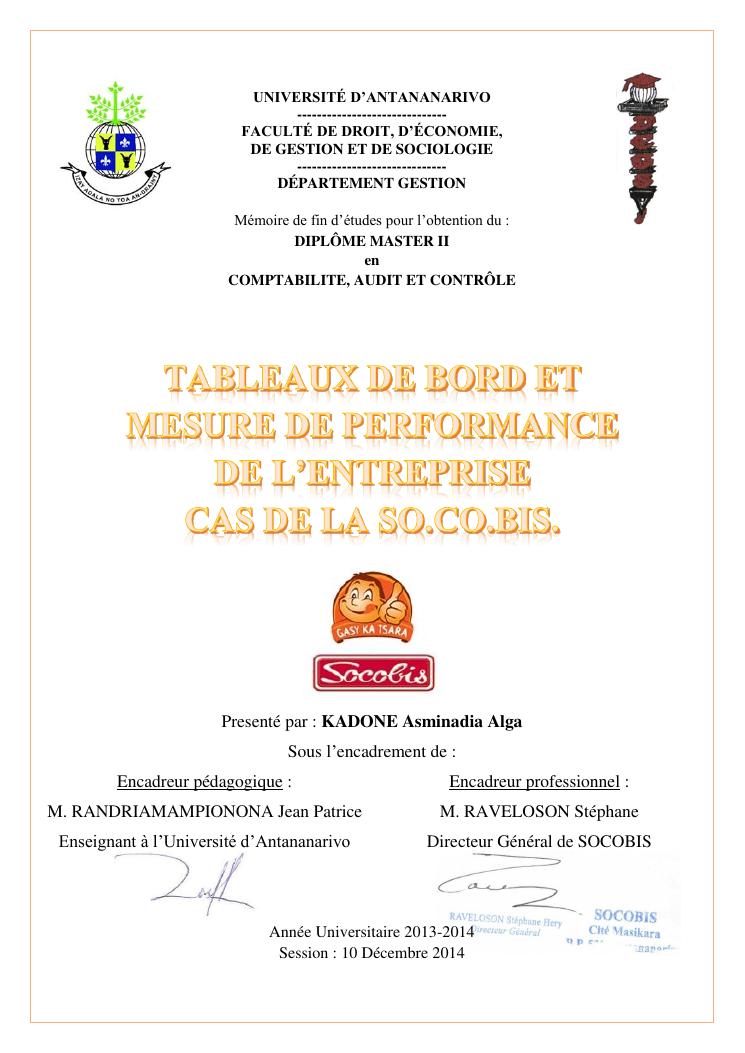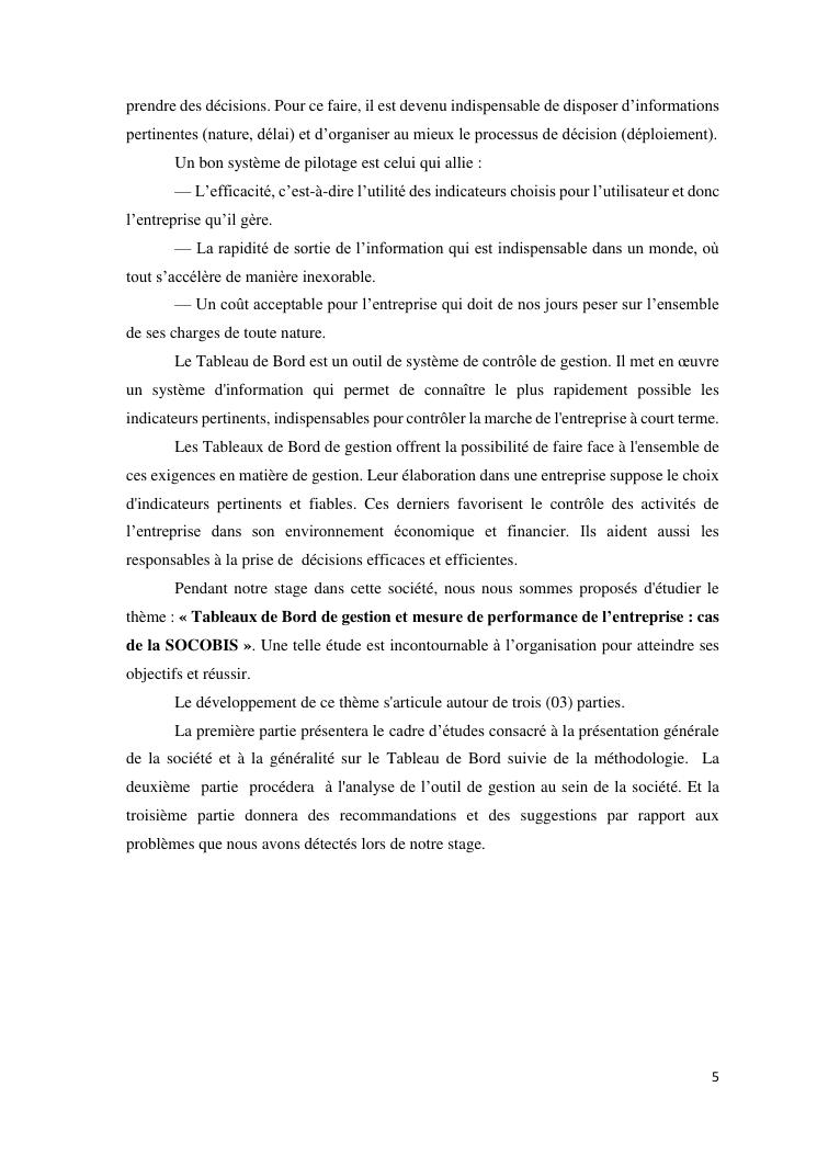 tableaux de bord et mesur de performance de l'entreprise : cas de la so.co.bis