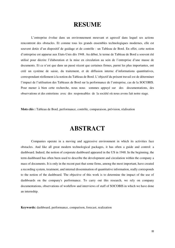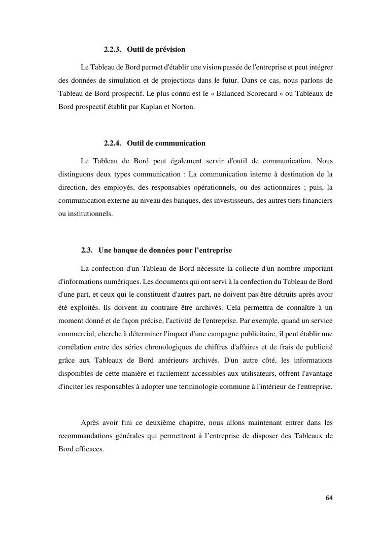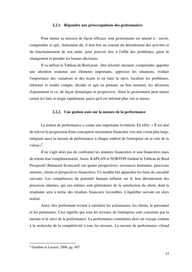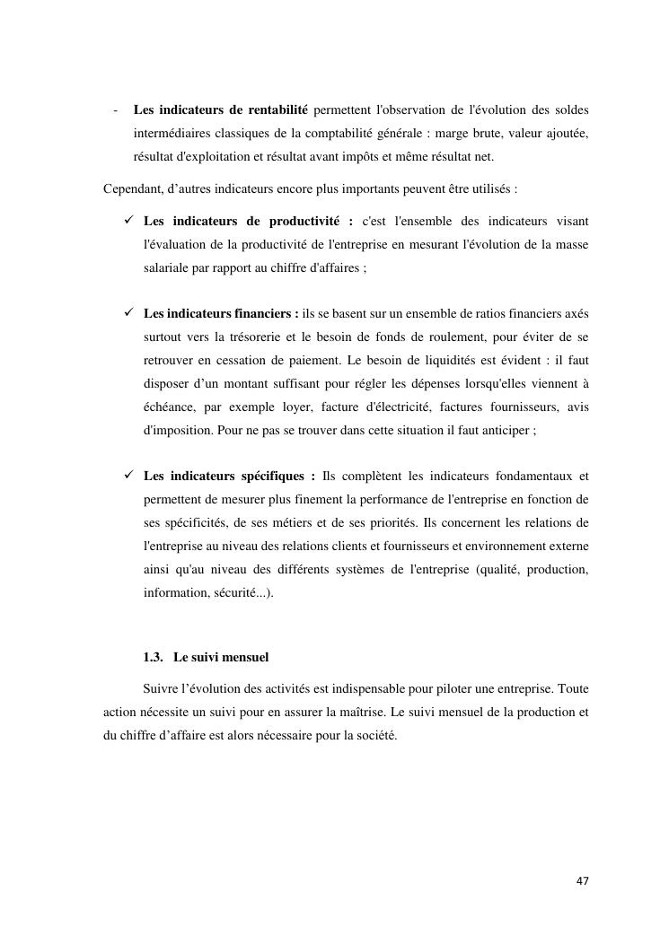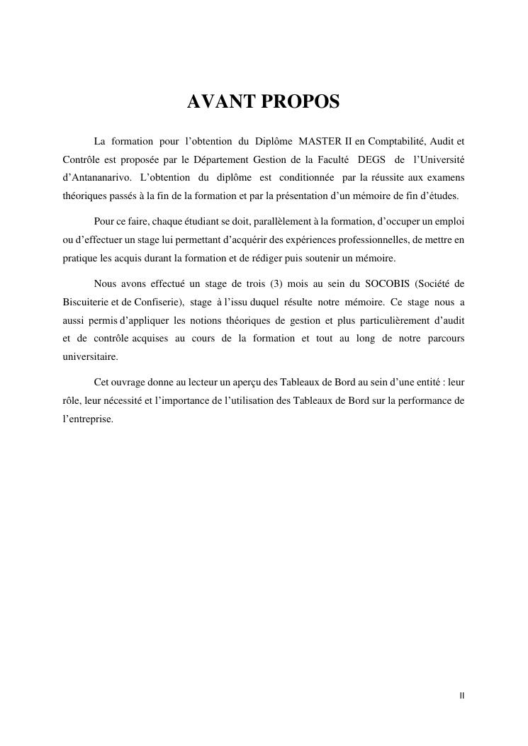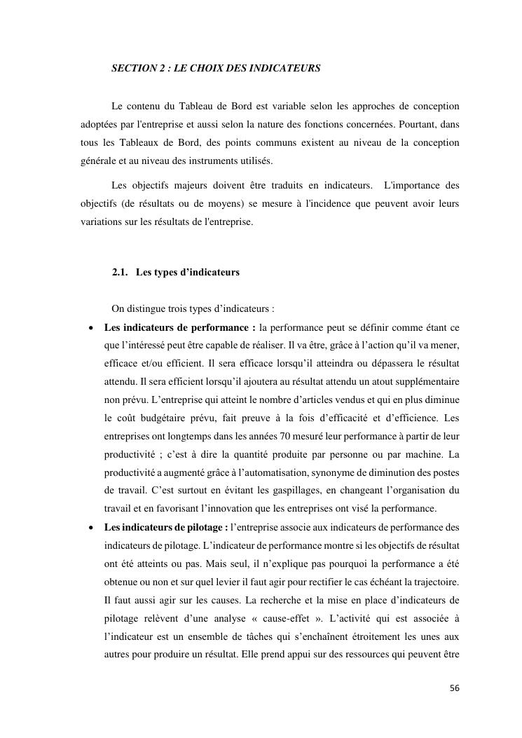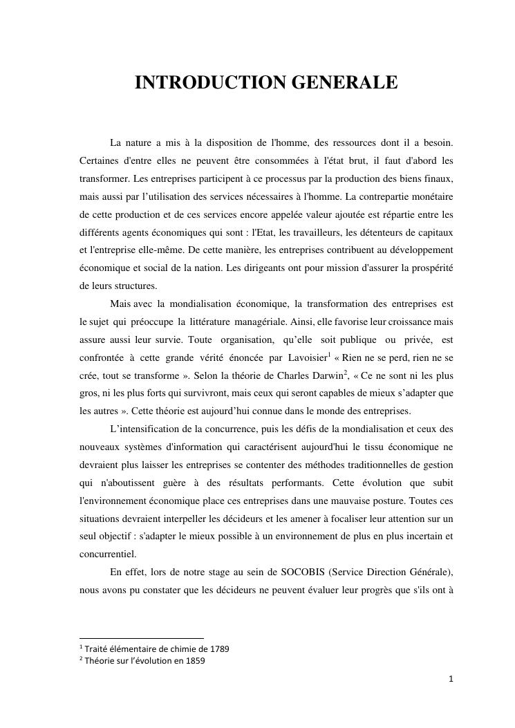 tableaux de bord et mesur de performance de l'entreprise : cas de la so.co.bis