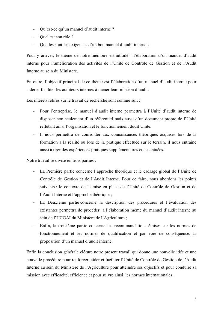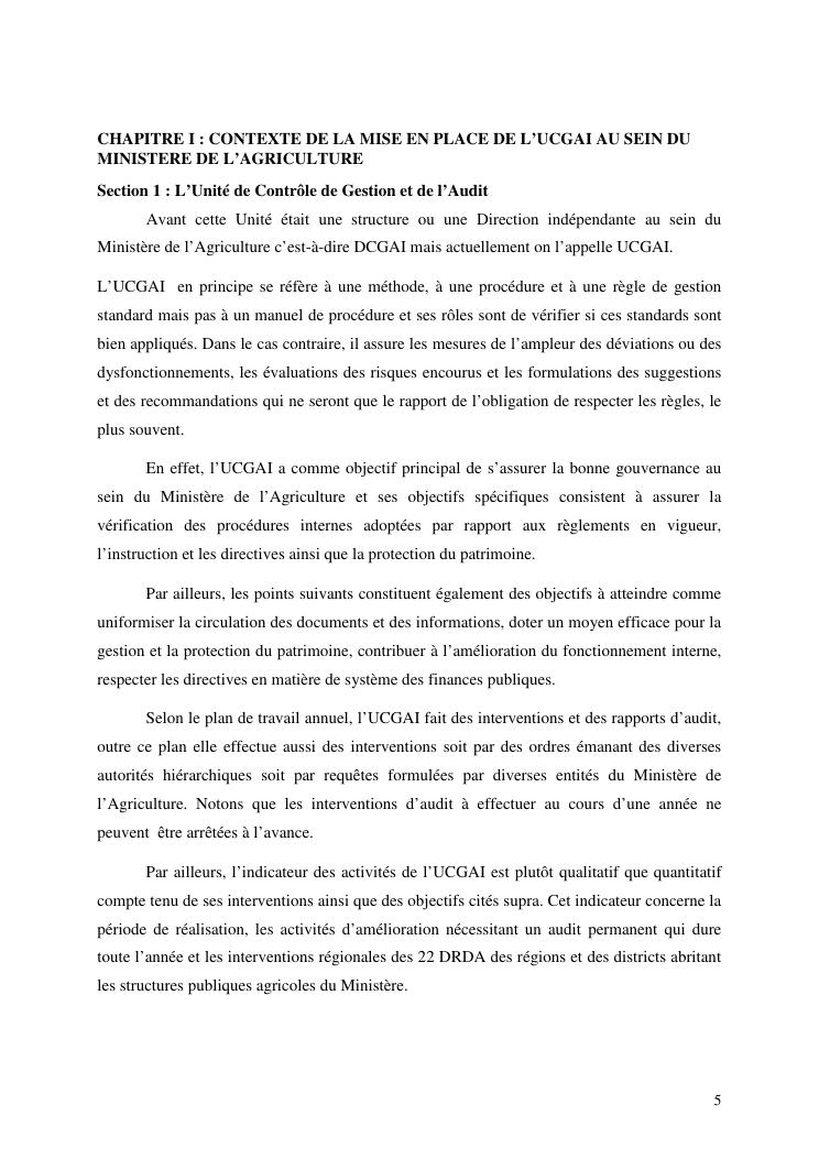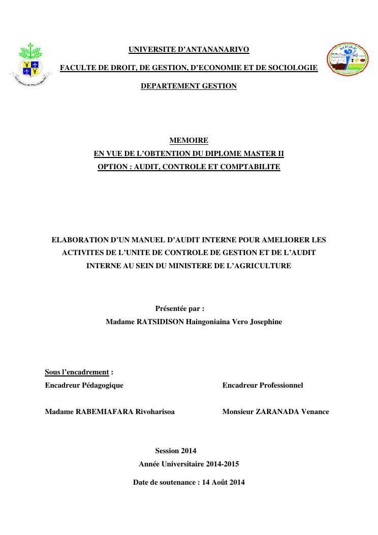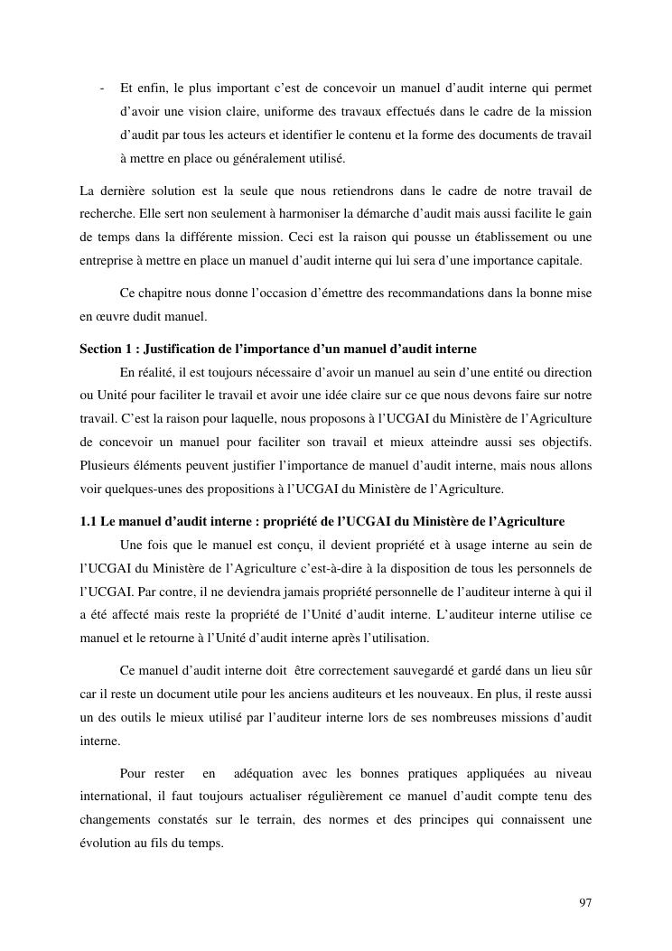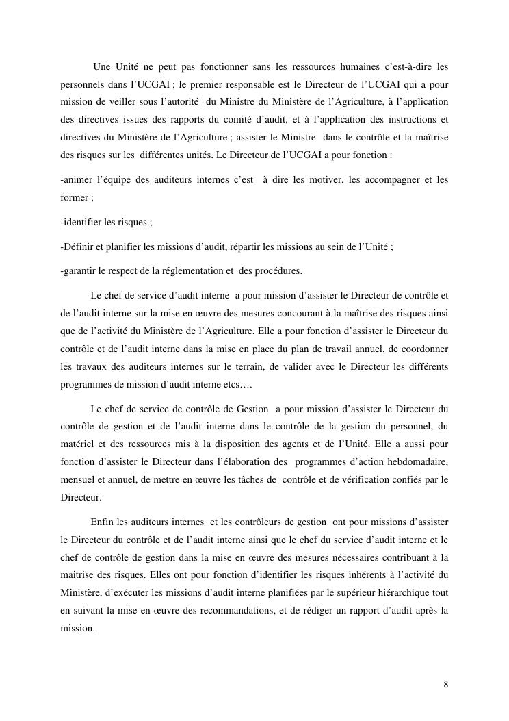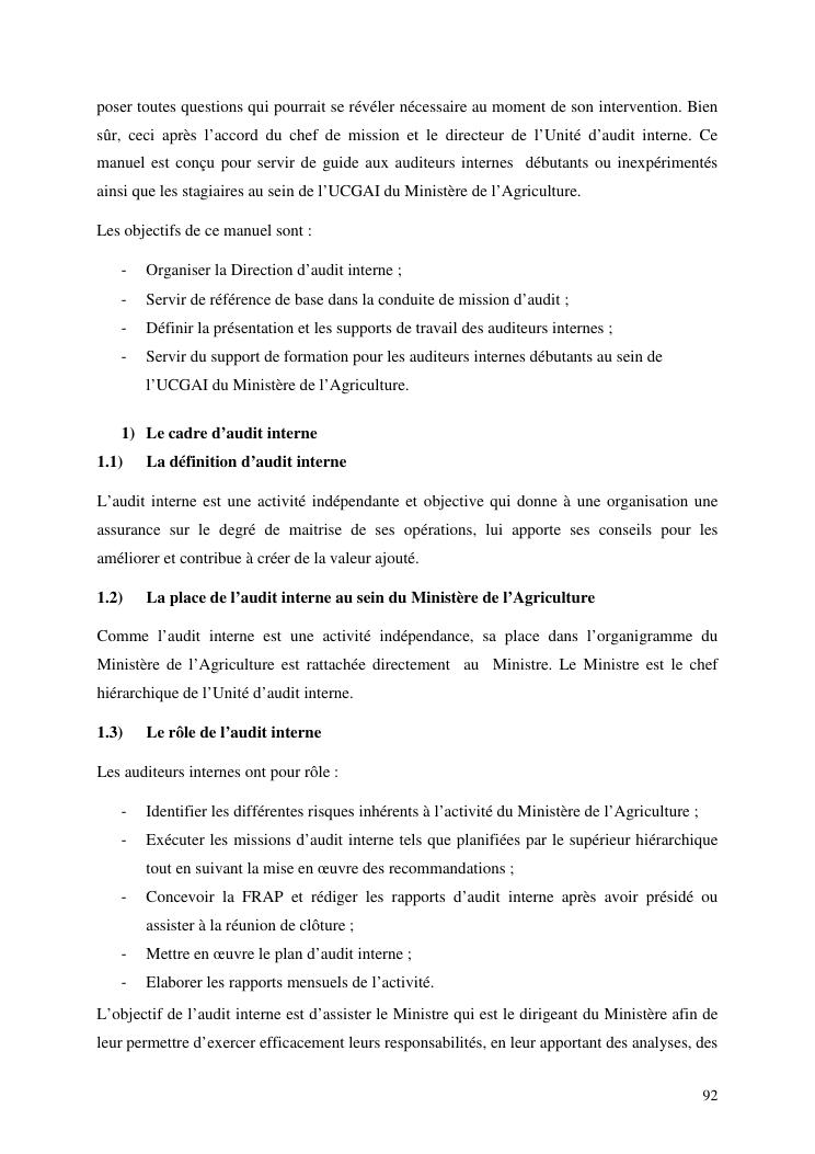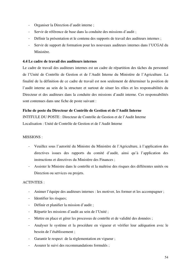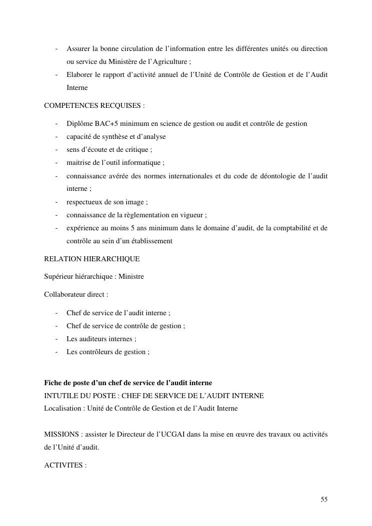 elaboration d'un manuel d'audit interne pour ameliorer les activites de l'unite controle de gestion et de l'audit interne au sein du ministere de l'agriculture