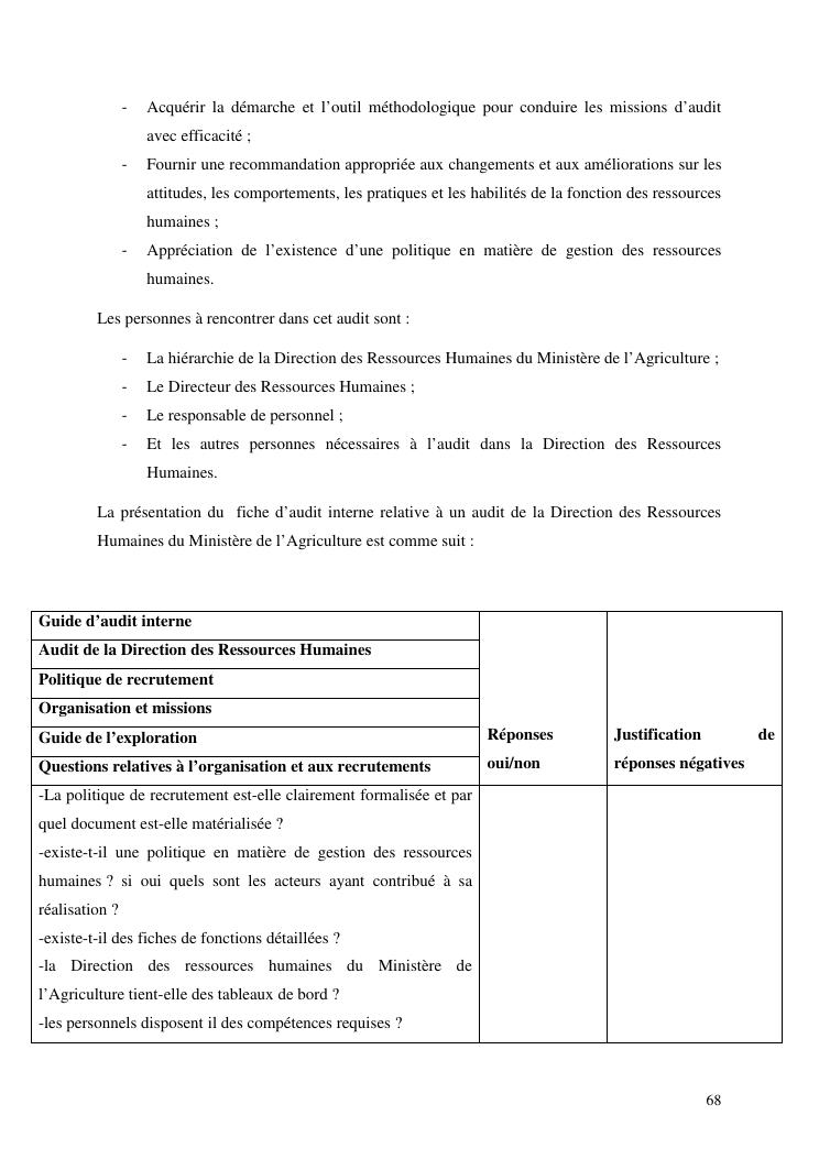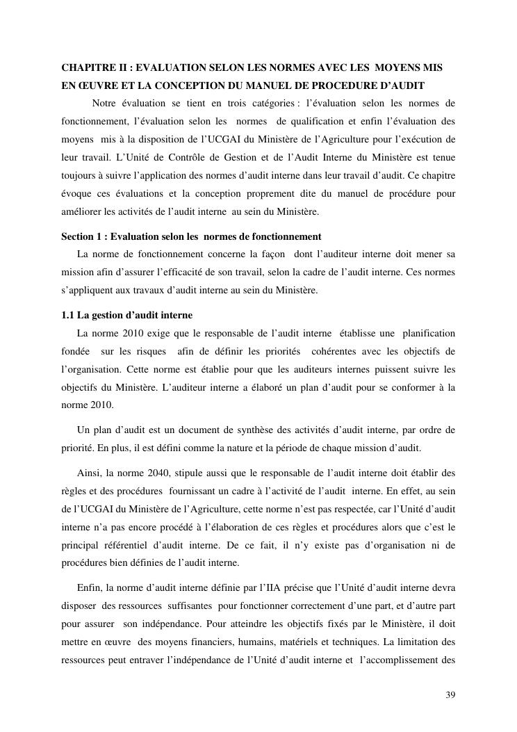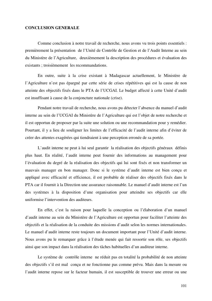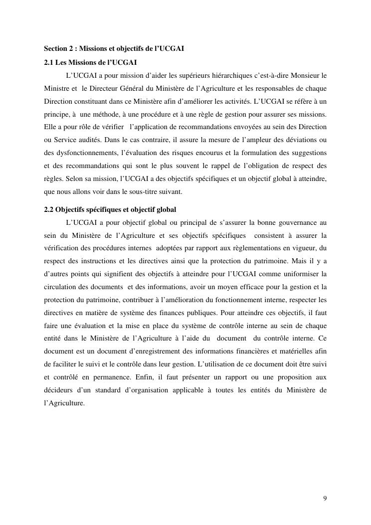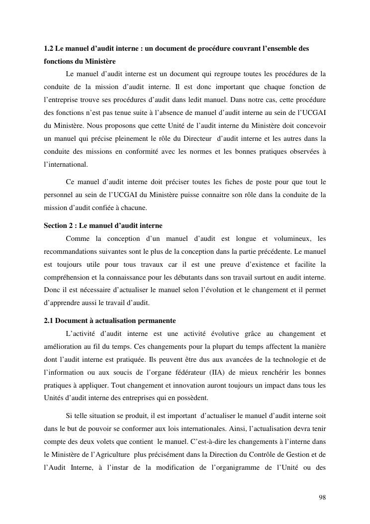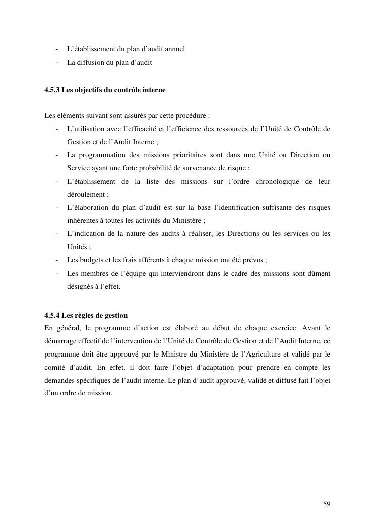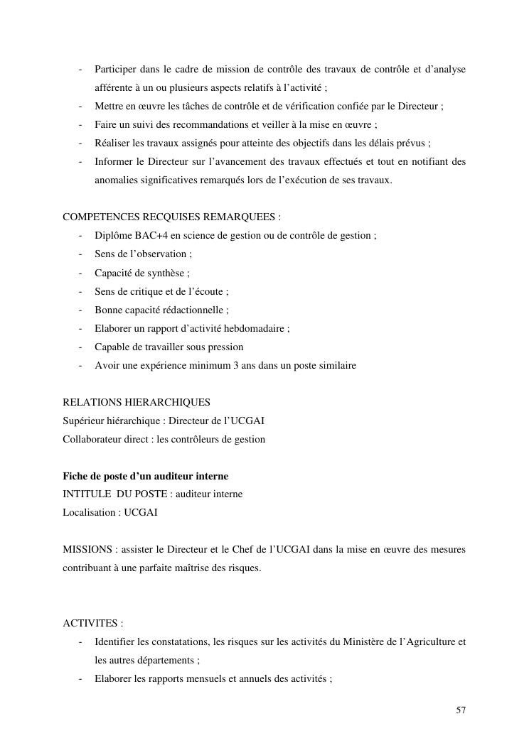elaboration d'un manuel d'audit interne pour ameliorer les activites de l'unite controle de gestion et de l'audit interne au sein du ministere de l'agriculture
