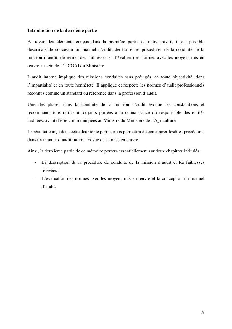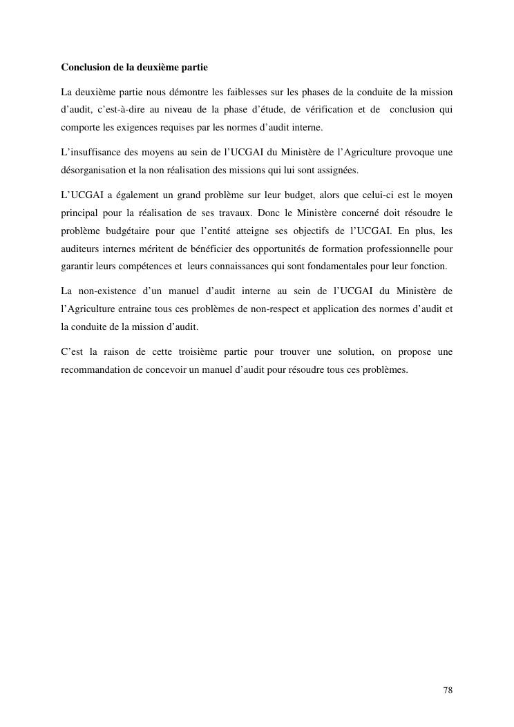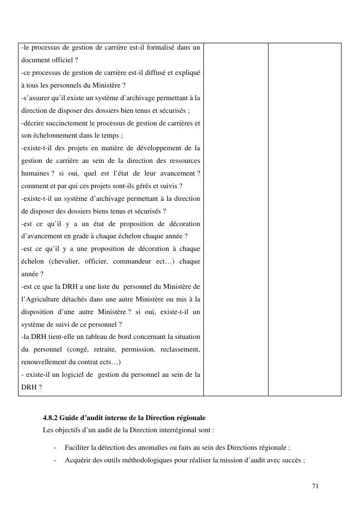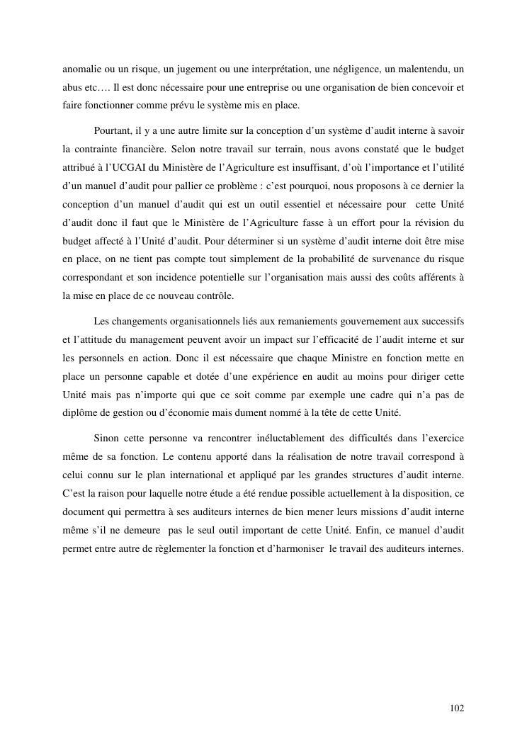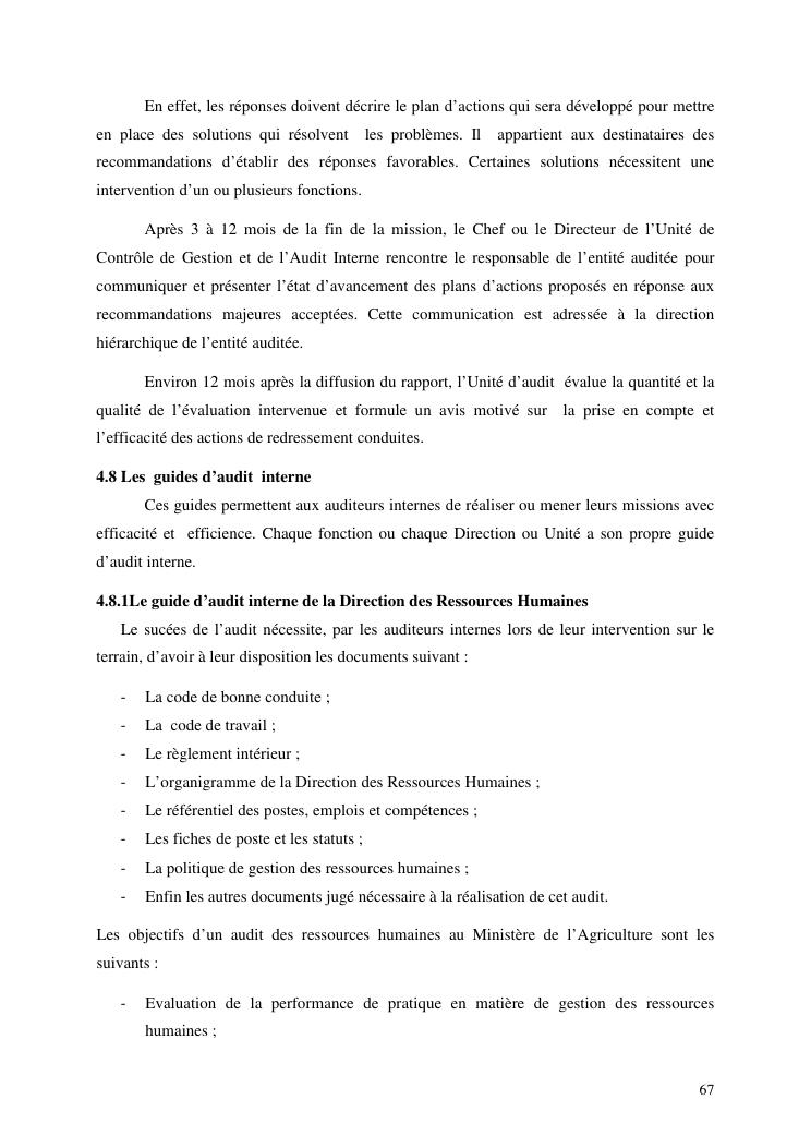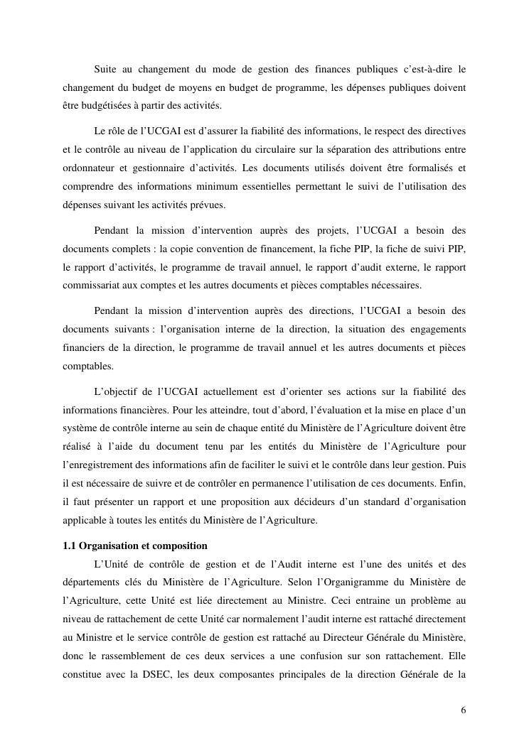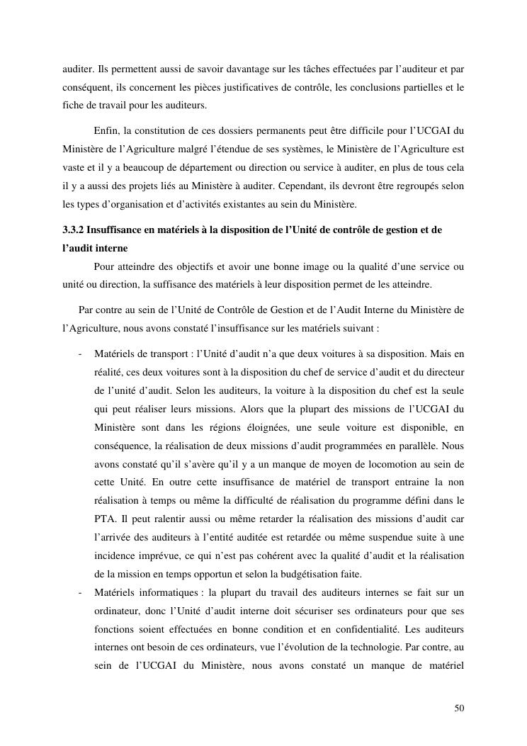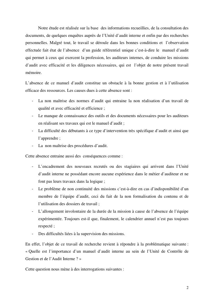 elaboration d'un manuel d'audit interne pour ameliorer les activites de l'unite controle de gestion et de l'audit interne au sein du ministere de l'agriculture