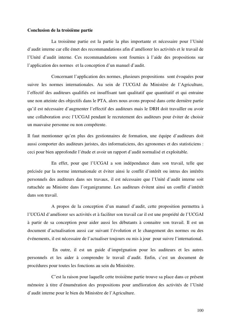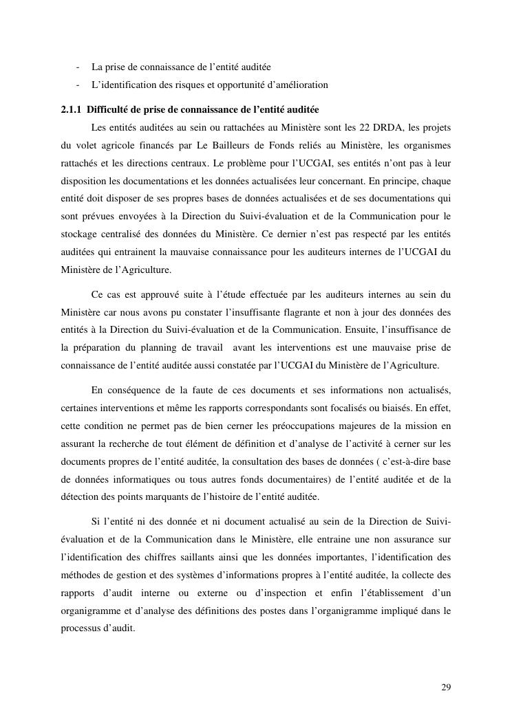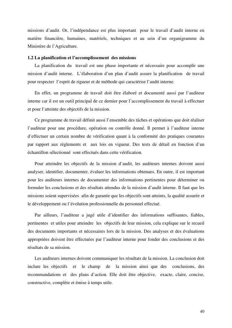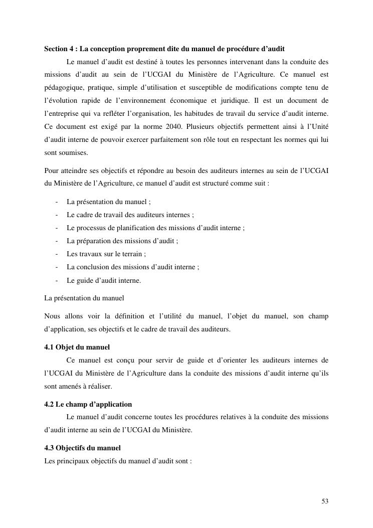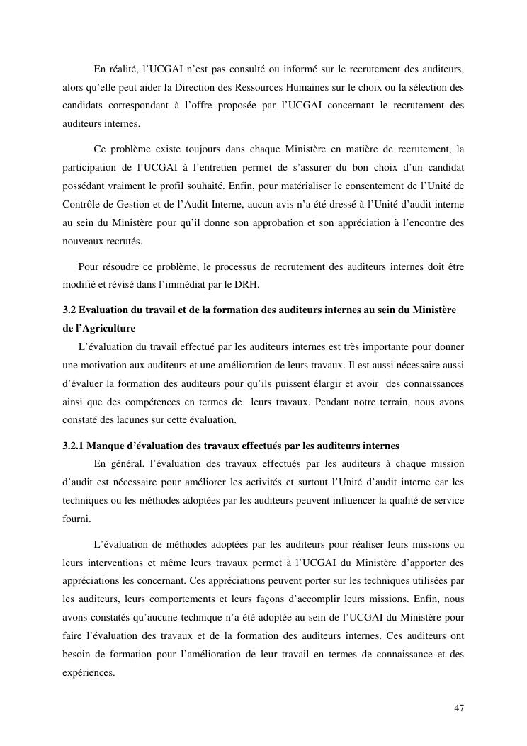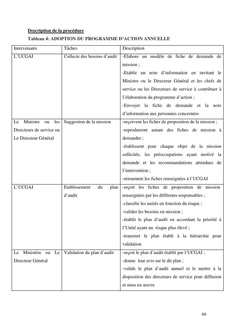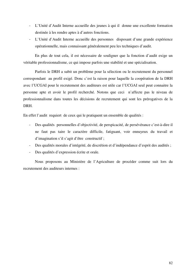 elaboration d'un manuel d'audit interne pour ameliorer les activites de l'unite controle de gestion et de l'audit interne au sein du ministere de l'agriculture