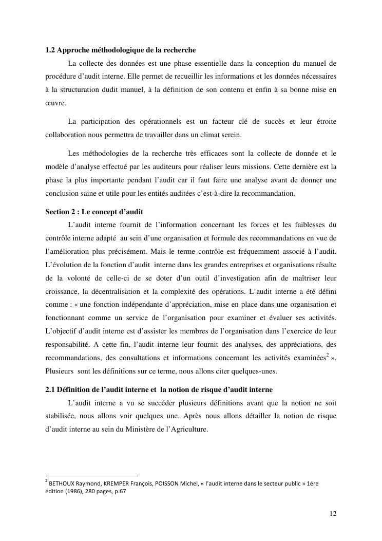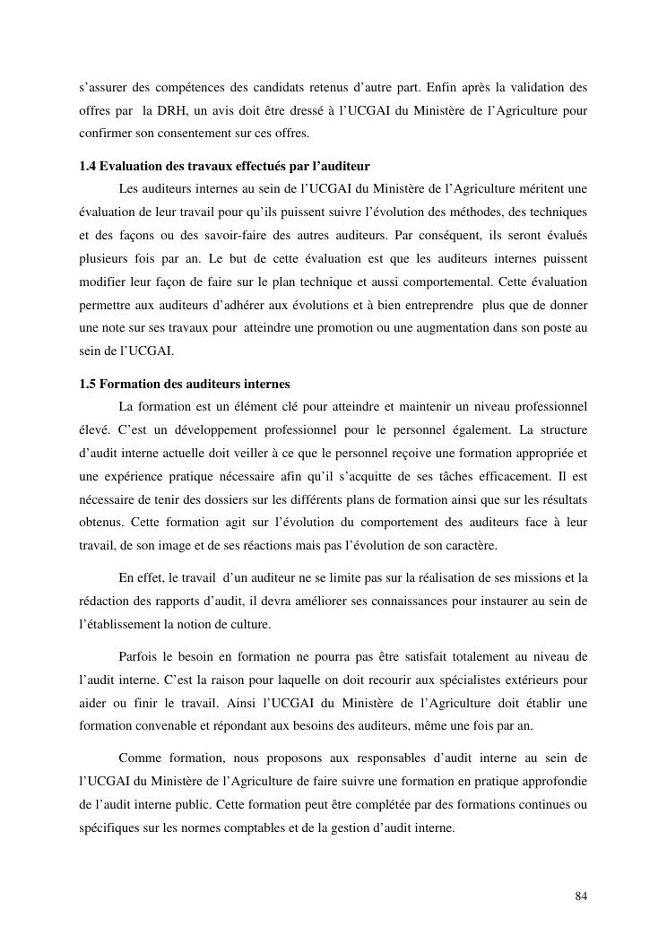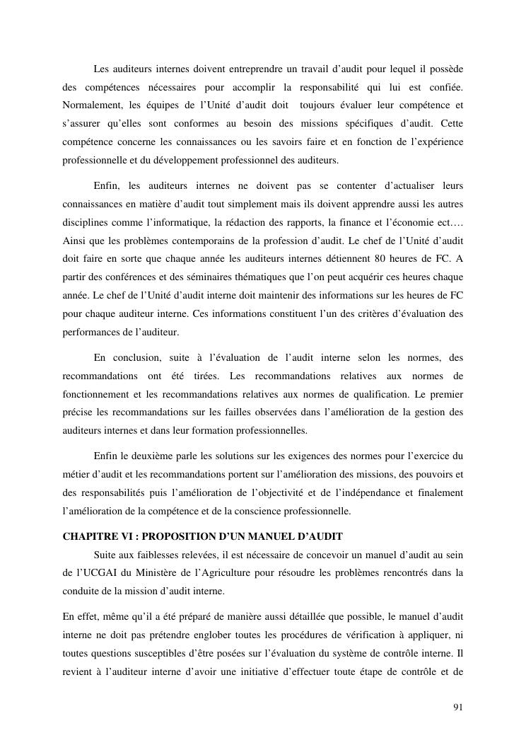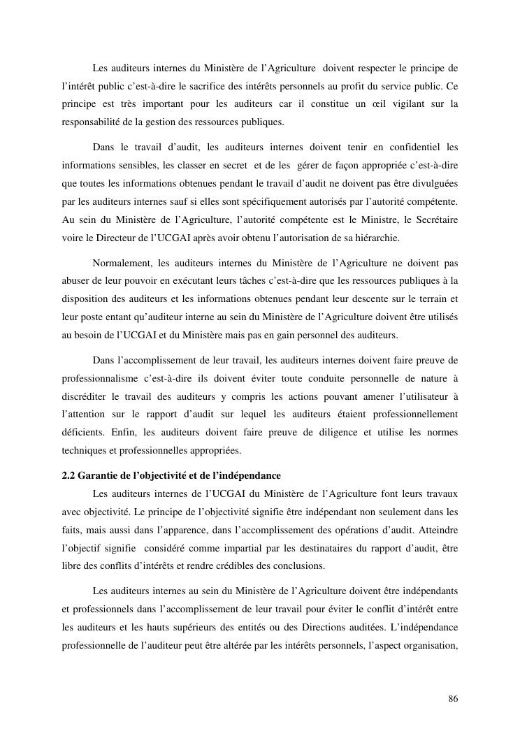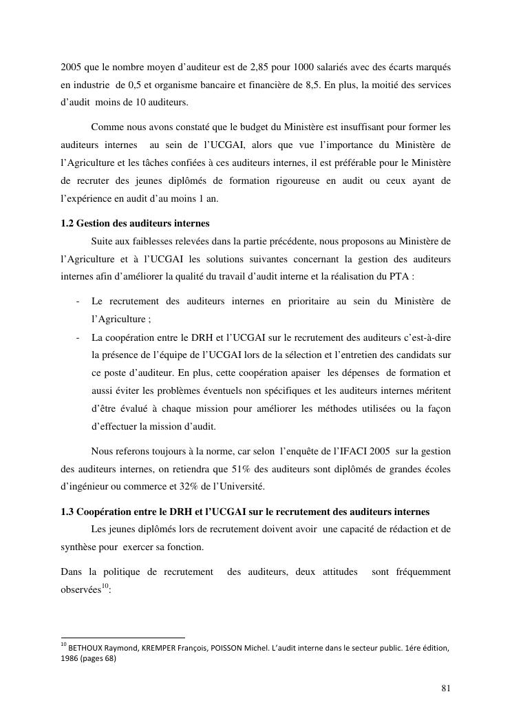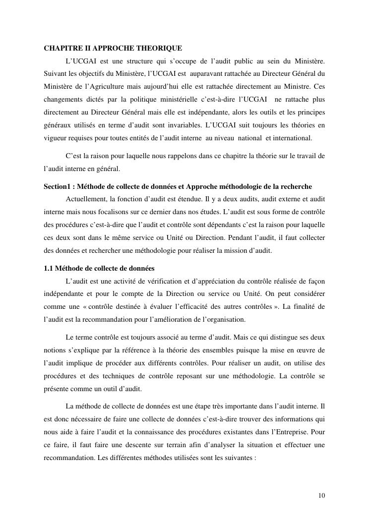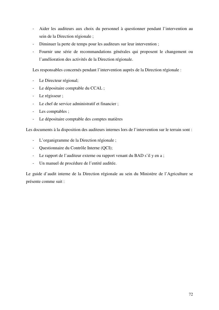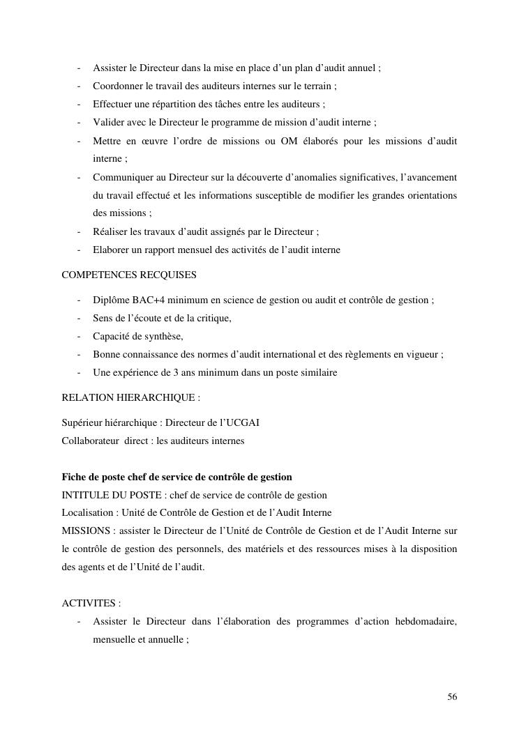 elaboration d'un manuel d'audit interne pour ameliorer les activites de l'unite controle de gestion et de l'audit interne au sein du ministere de l'agriculture
