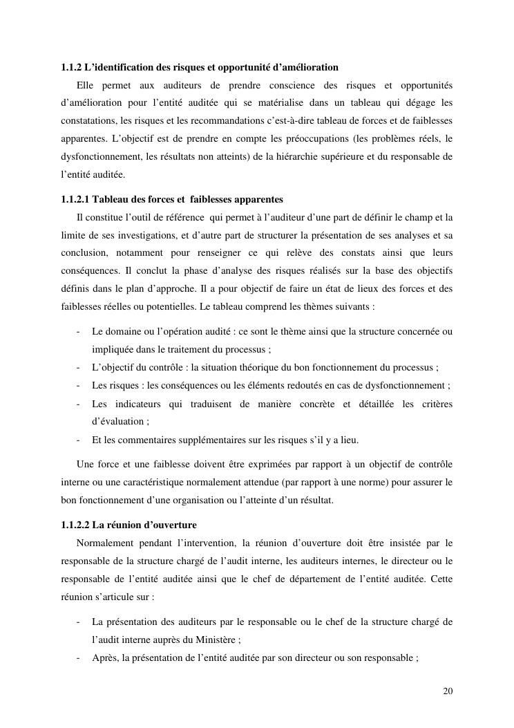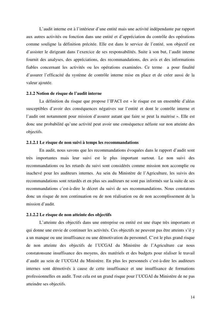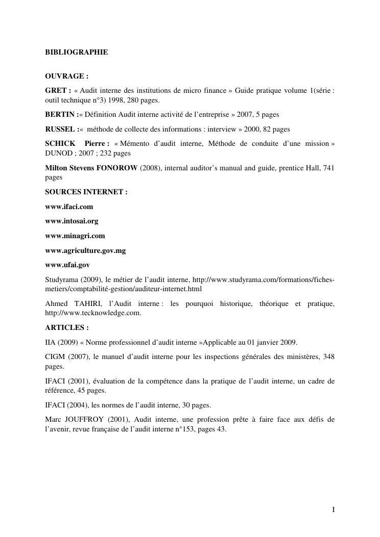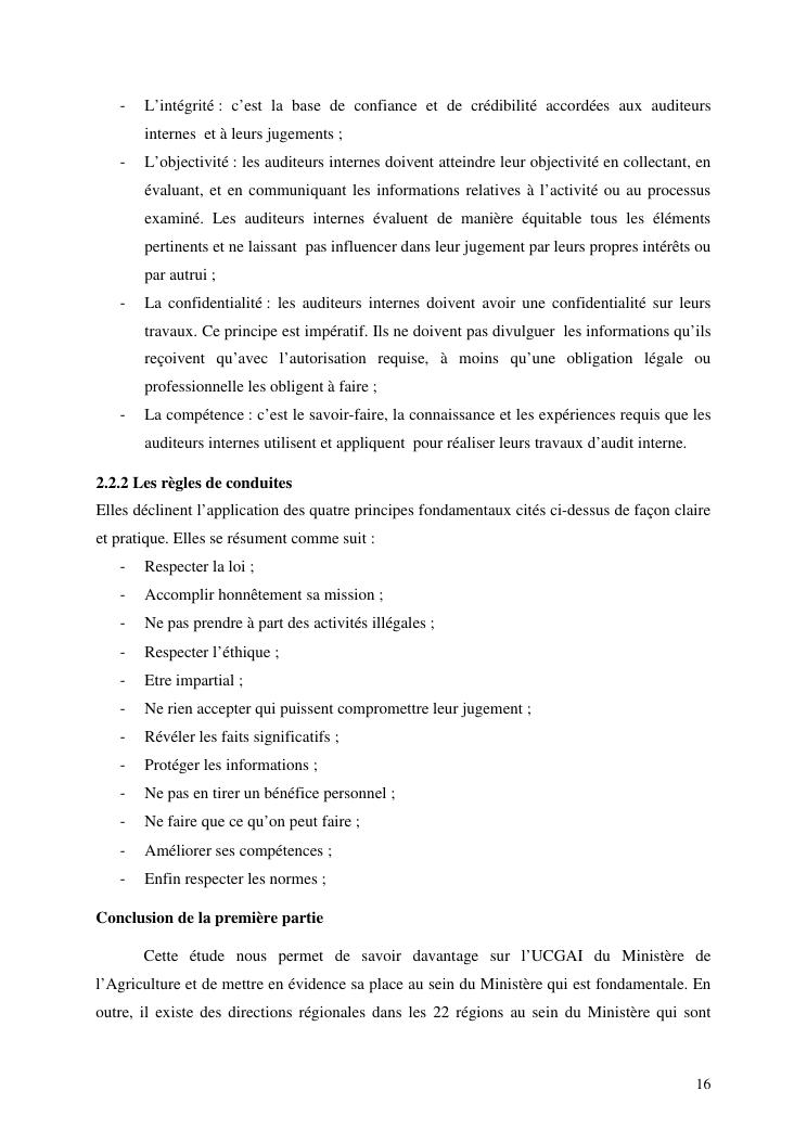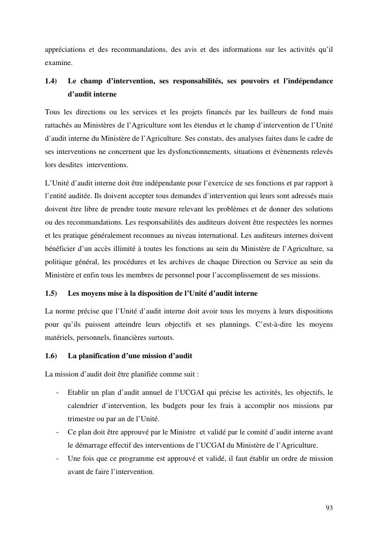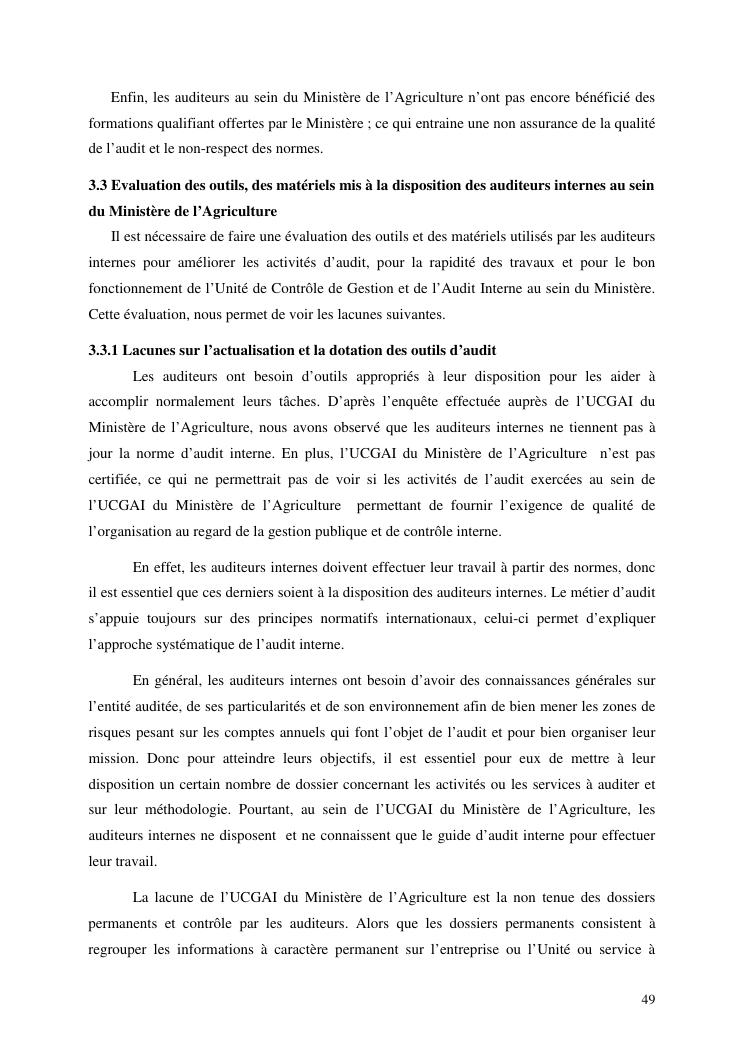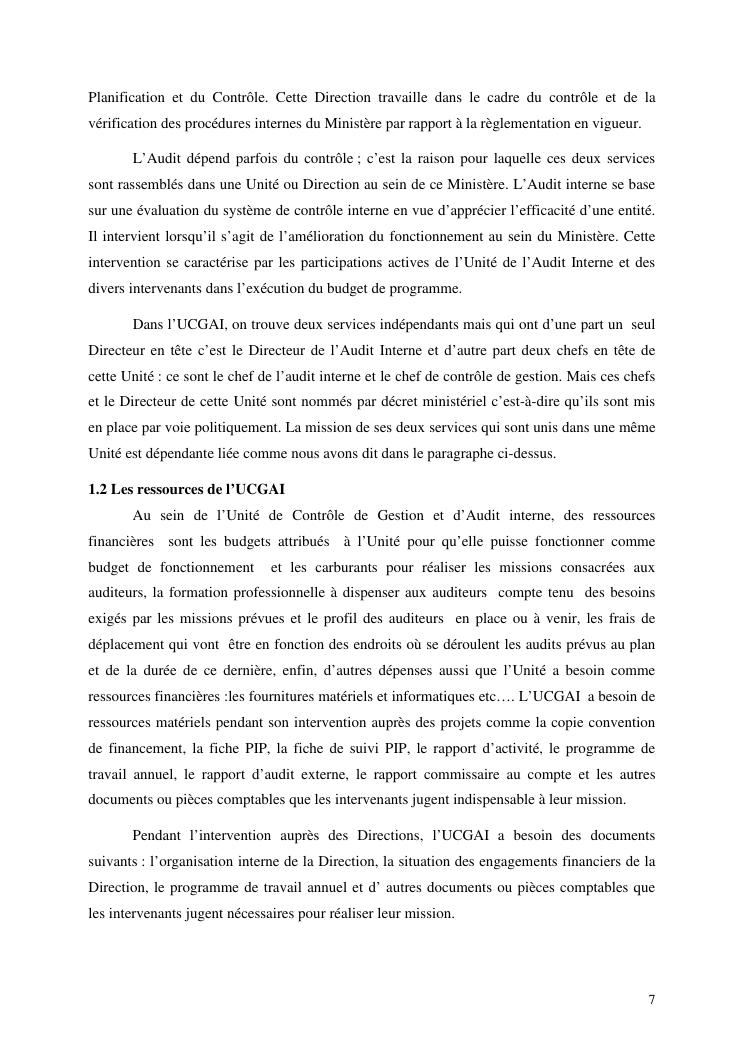 elaboration d'un manuel d'audit interne pour ameliorer les activites de l'unite controle de gestion et de l'audit interne au sein du ministere de l'agriculture