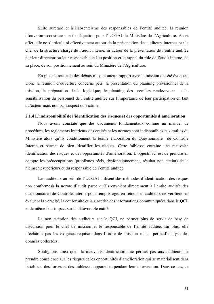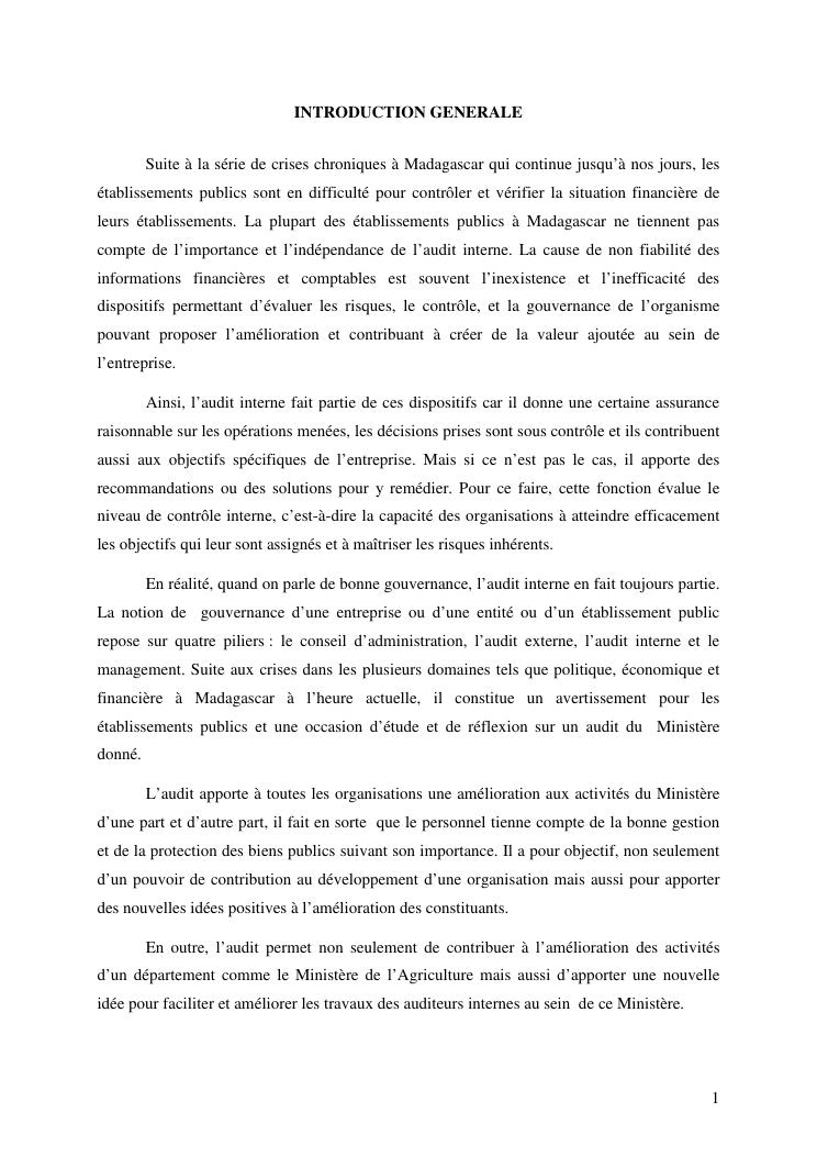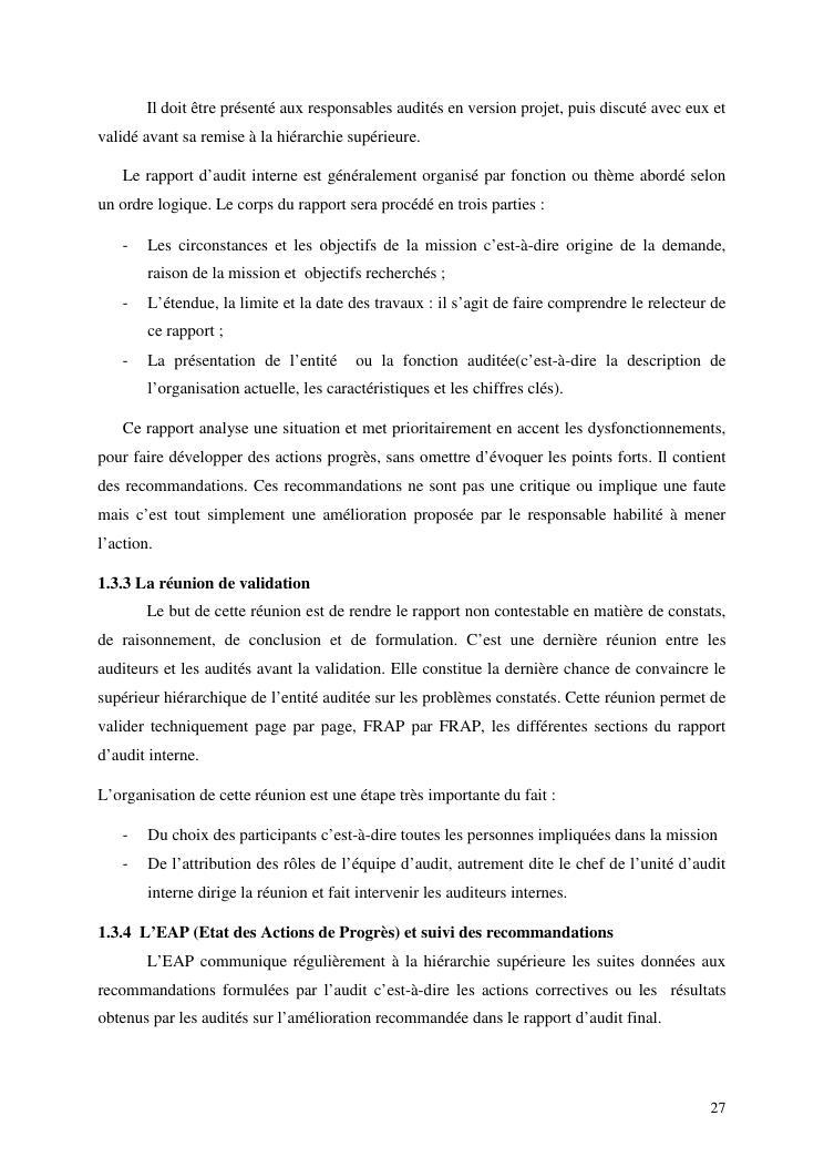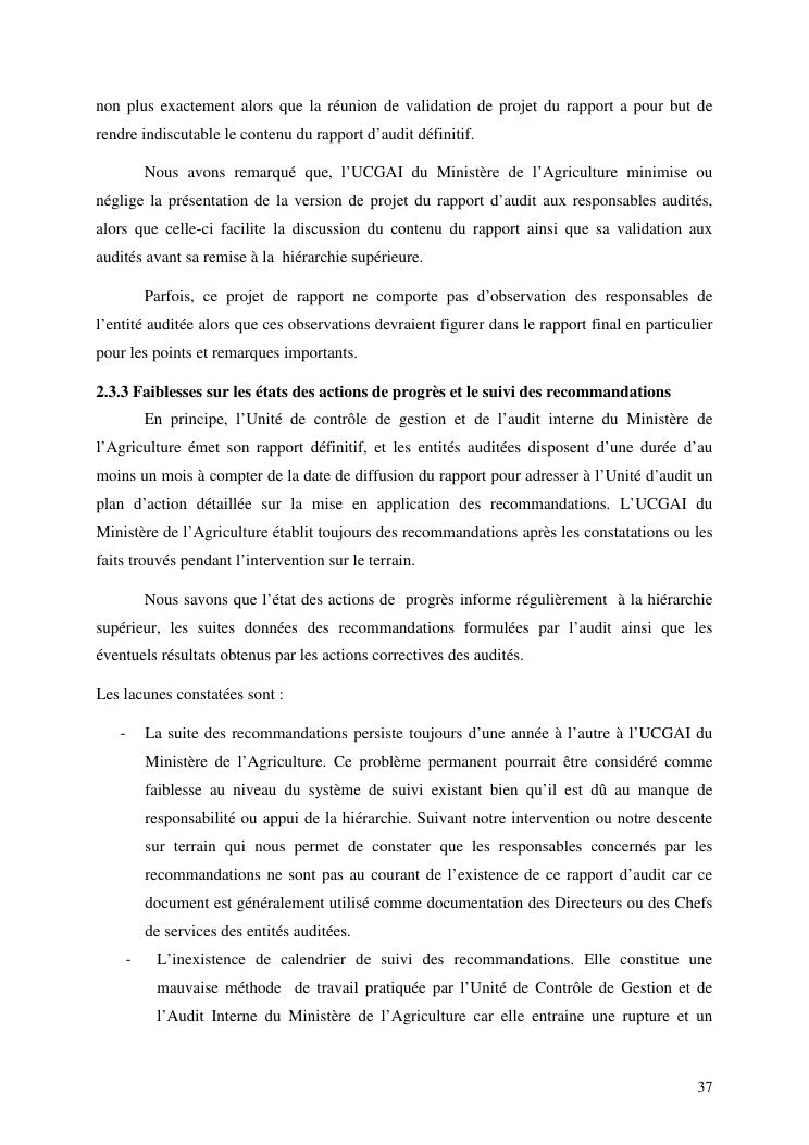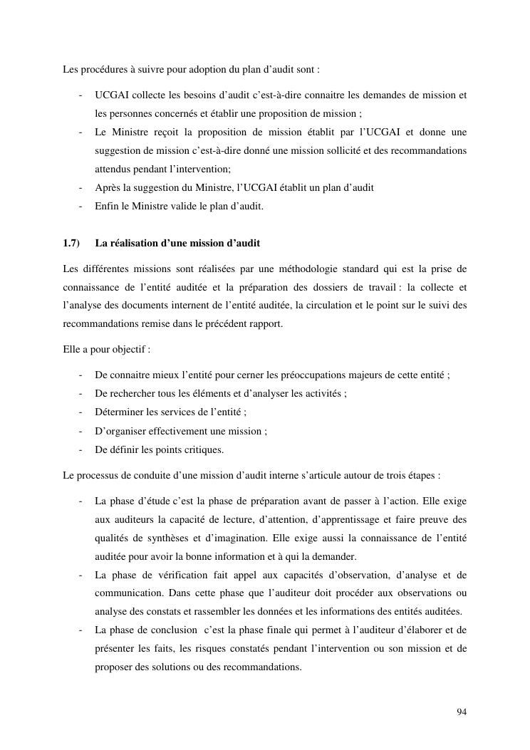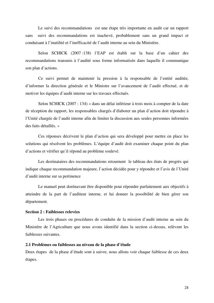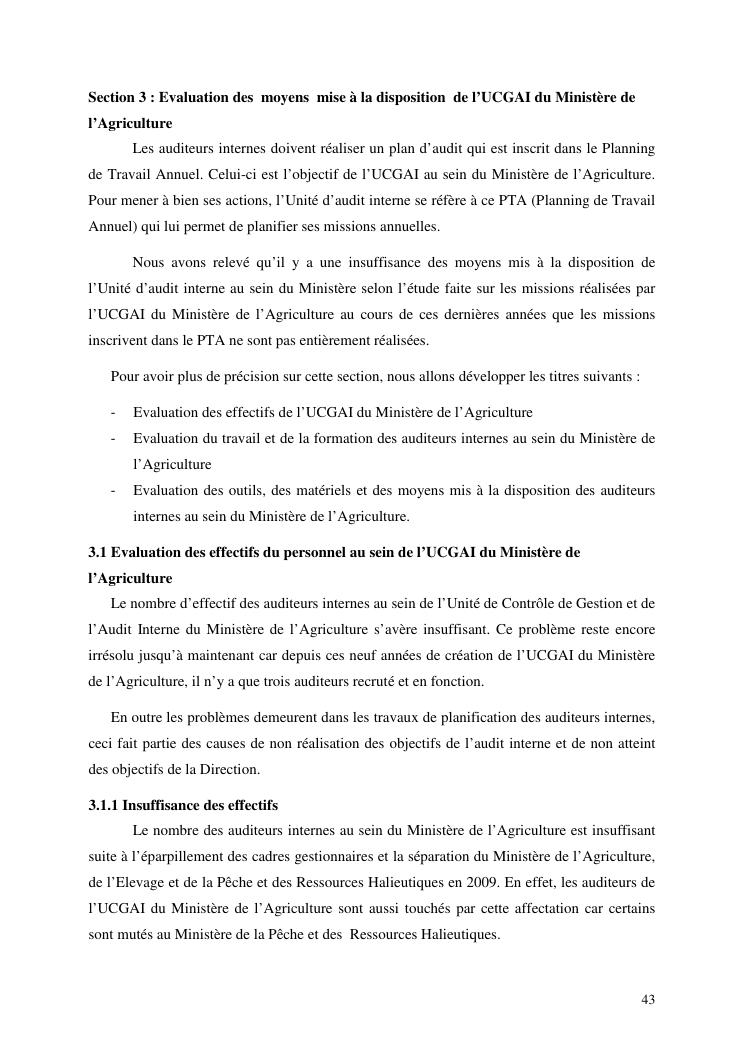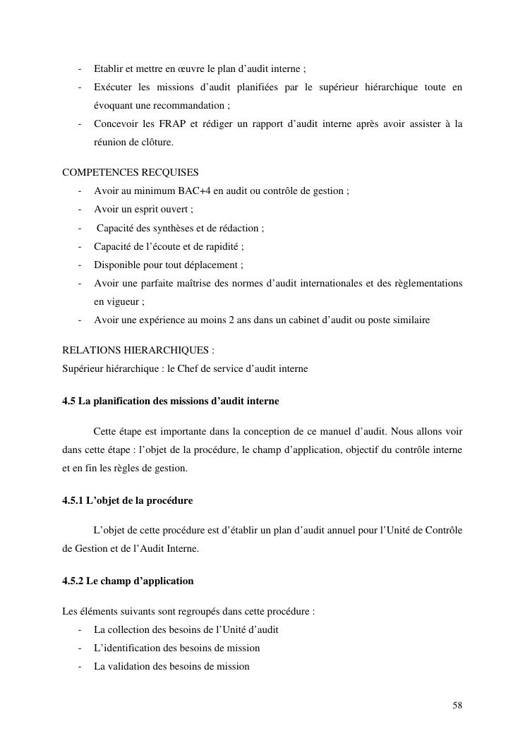 elaboration d'un manuel d'audit interne pour ameliorer les activites de l'unite controle de gestion et de l'audit interne au sein du ministere de l'agriculture
