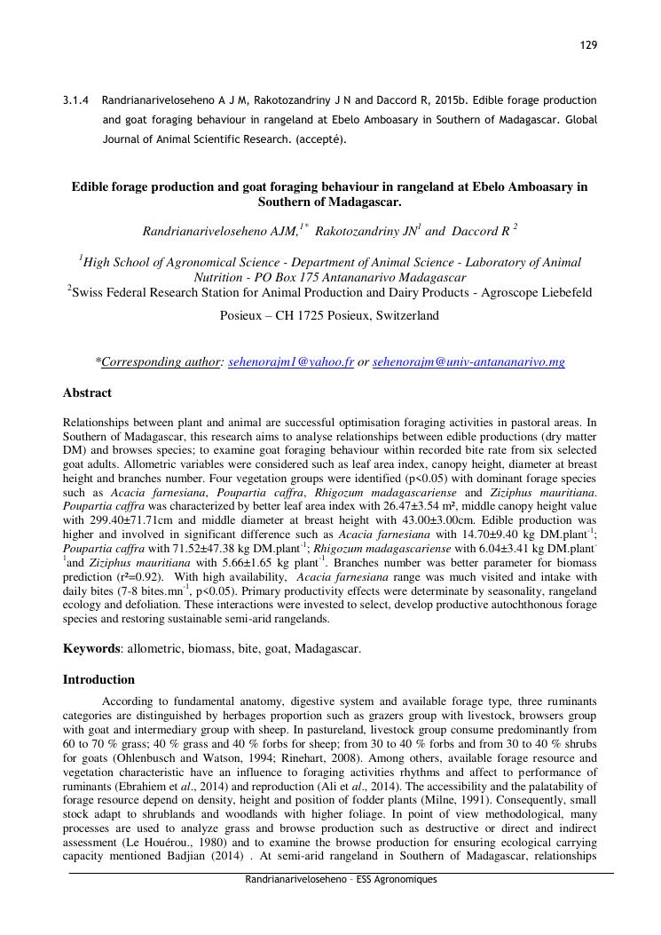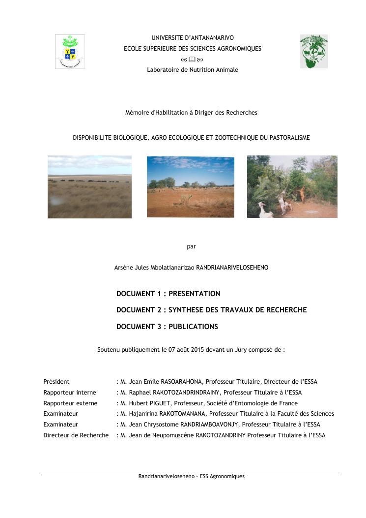 disponibilite biologique, agro ecologique et zootechnique du pastoralisme